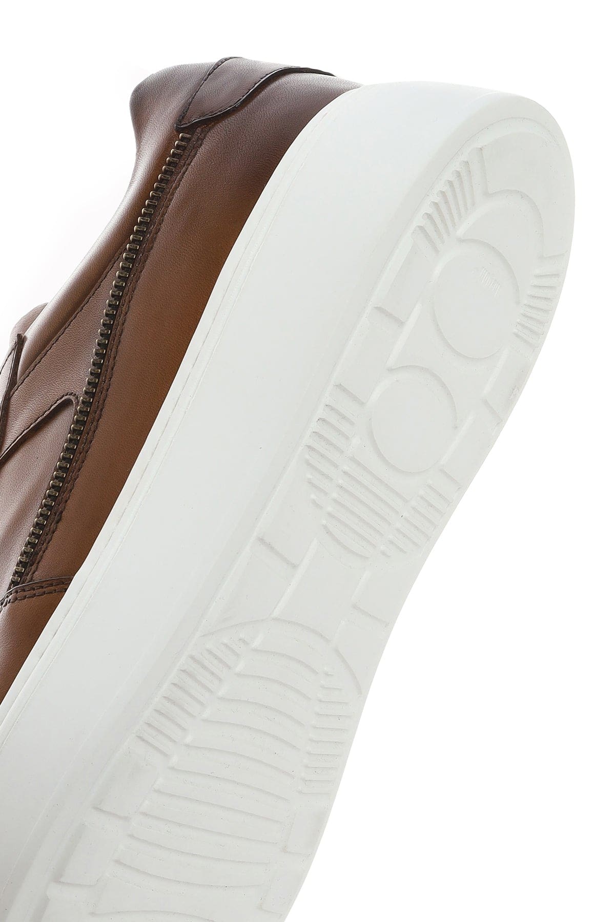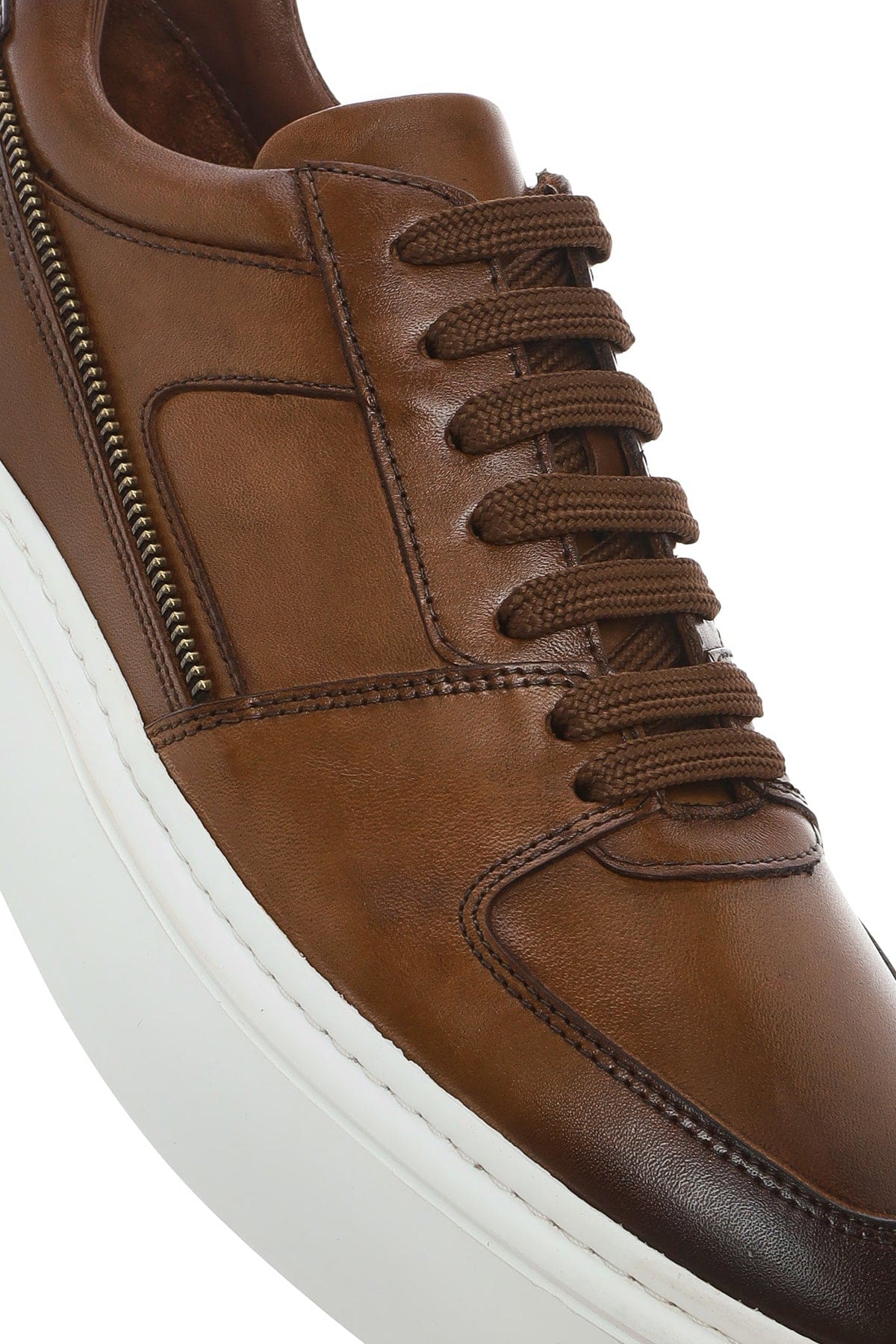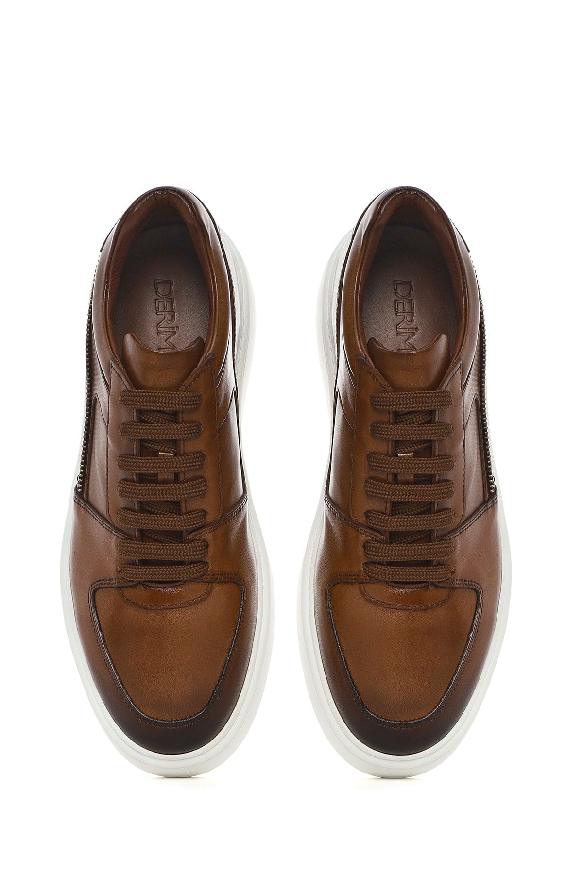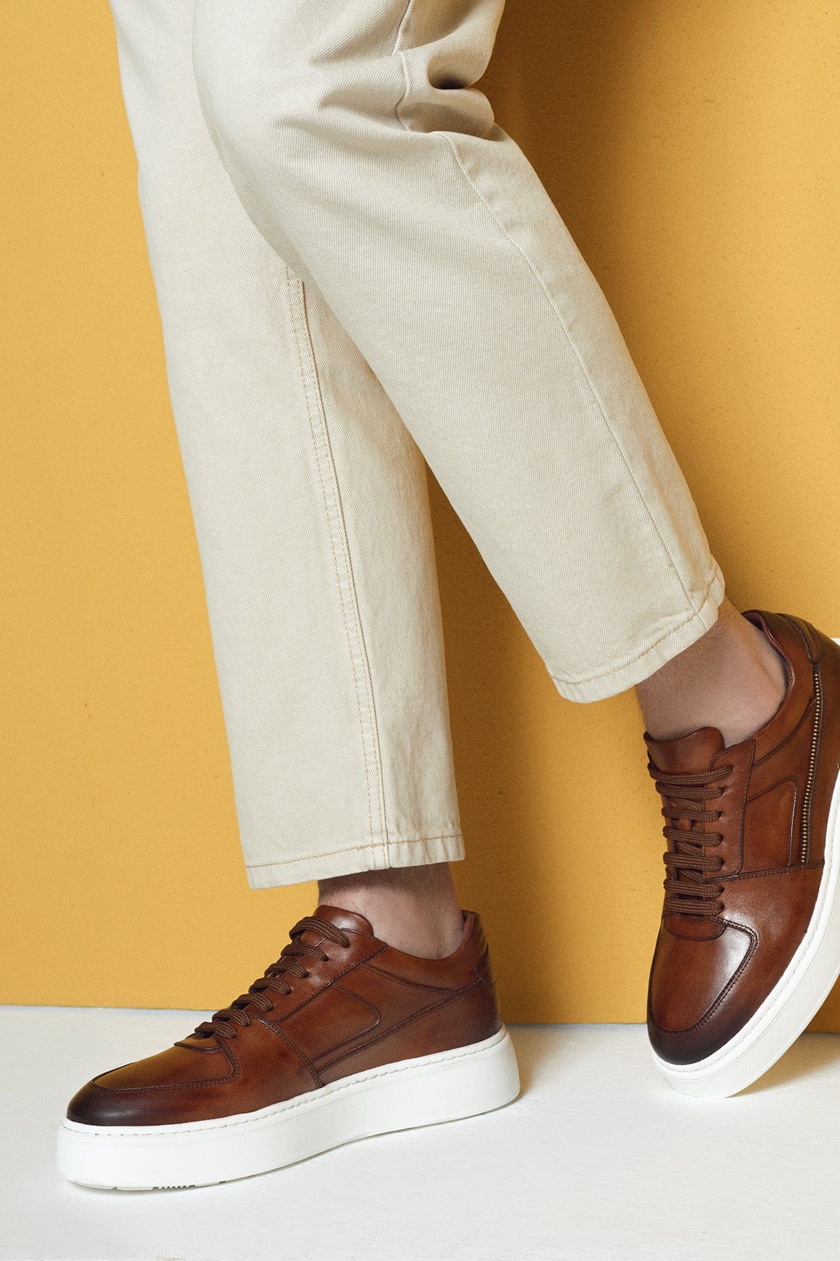 Erkek Taba Bağcıklı Kalın Tabanlı Deri Sneaker
