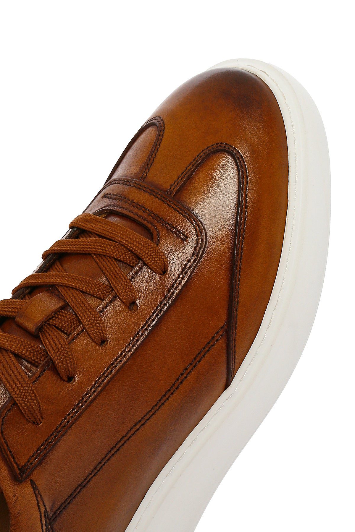 Erkek Taba Kalın Tabanlı Bağcıklı Deri Sneaker