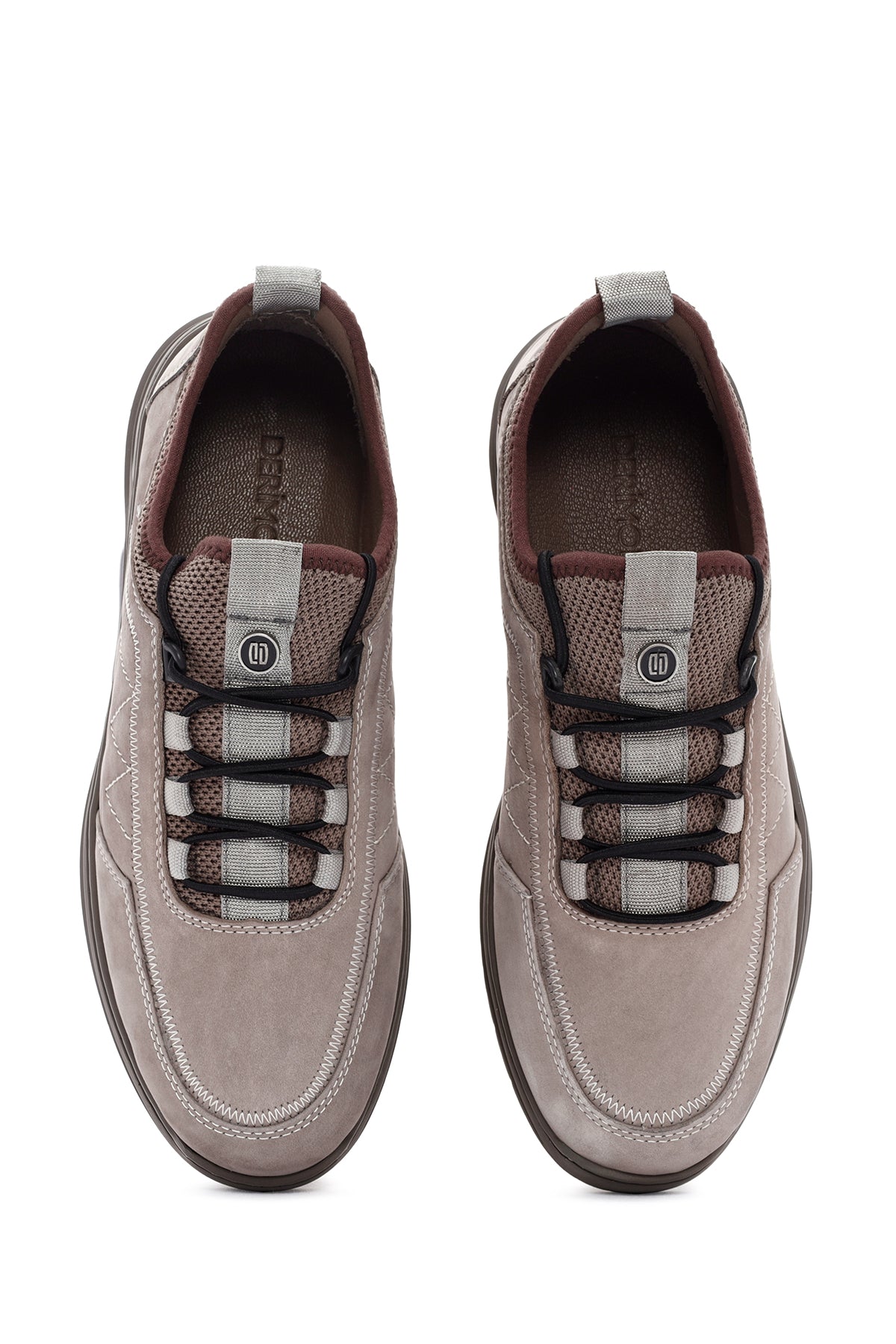 Erkek Vizon Bağcıklı Nubuk Deri Casual Sneaker