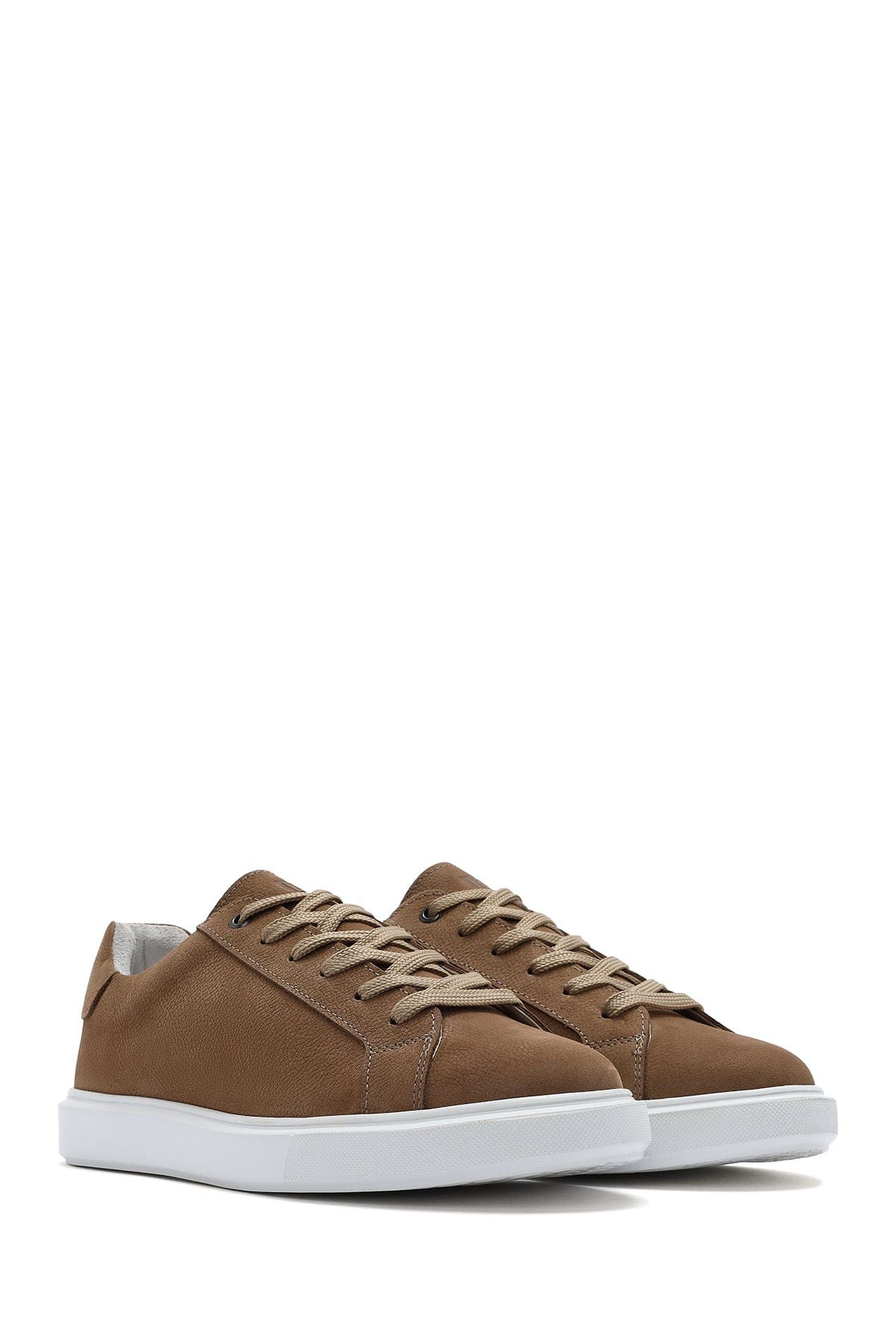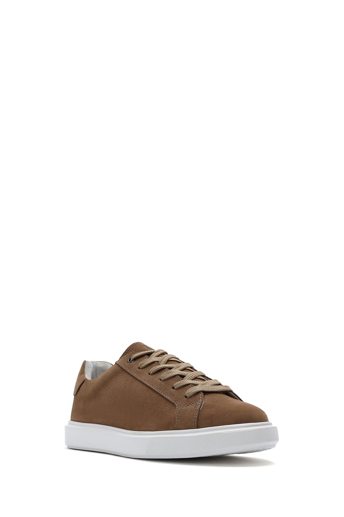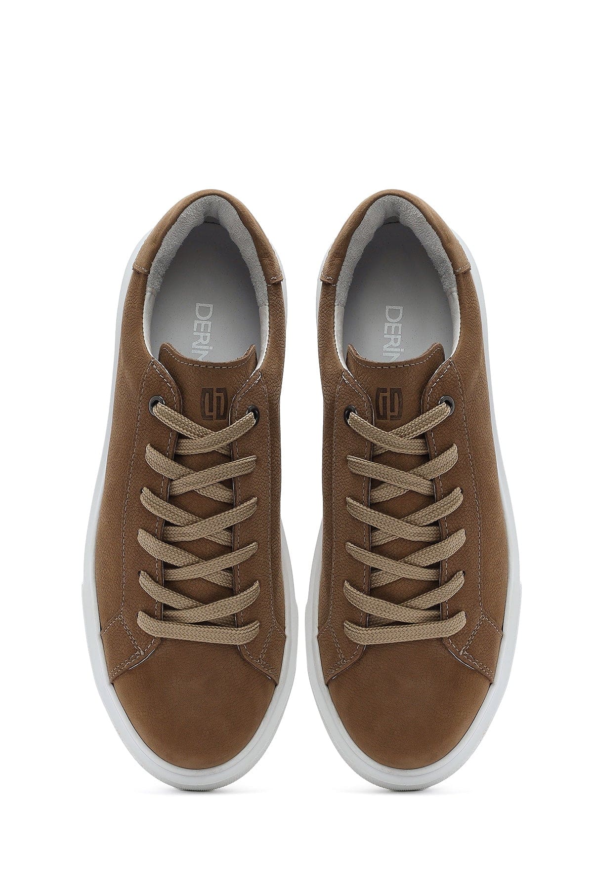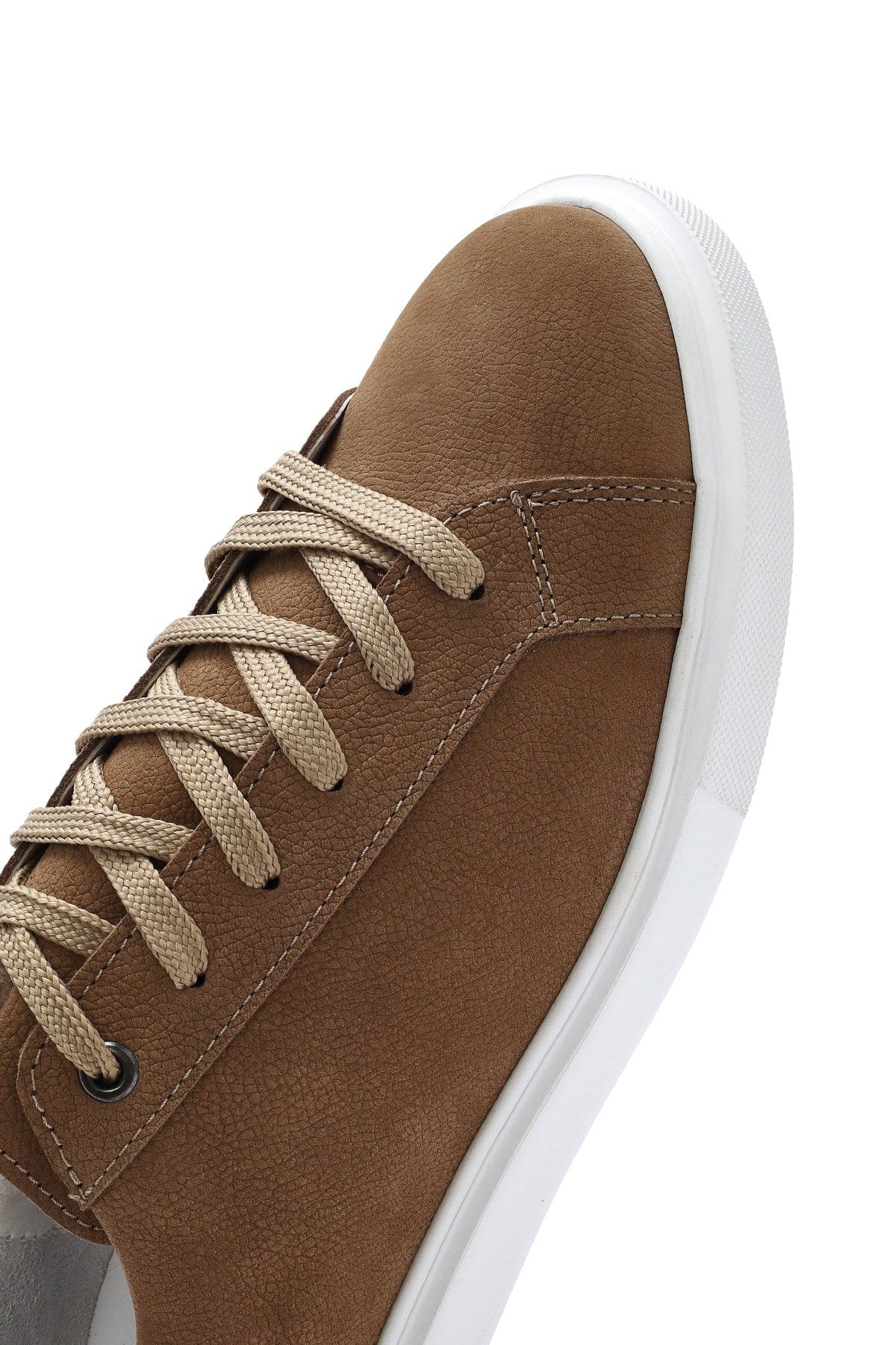 Erkek Vizon Bağcıklı Nubuk Deri Sneaker
