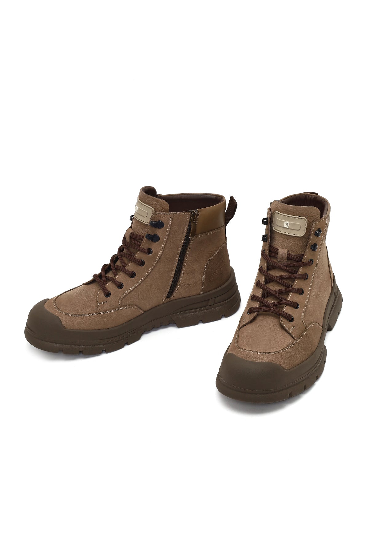 Erkek Vizon Bağcıklı Fermuarlı Nubuk Deri Casual Bot