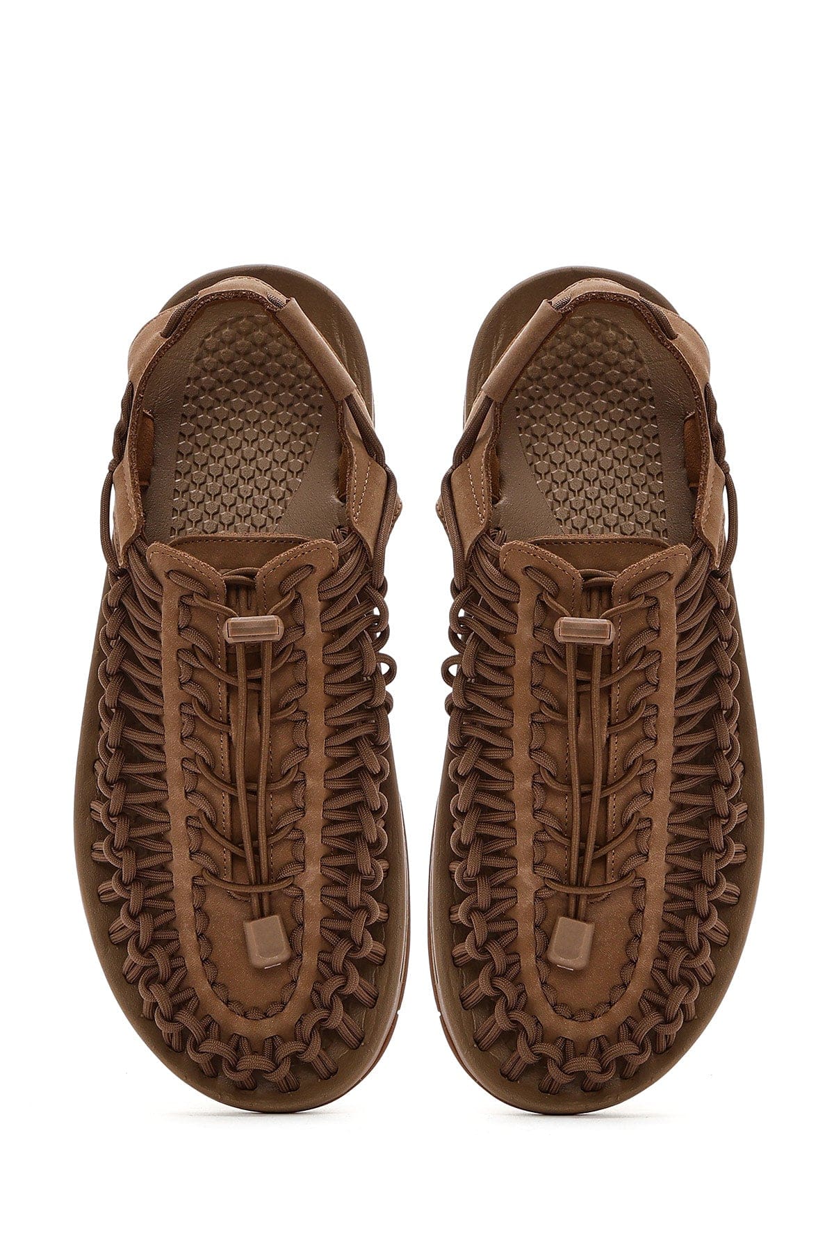 Erkek Vizon Örgülü Deri Sandalet