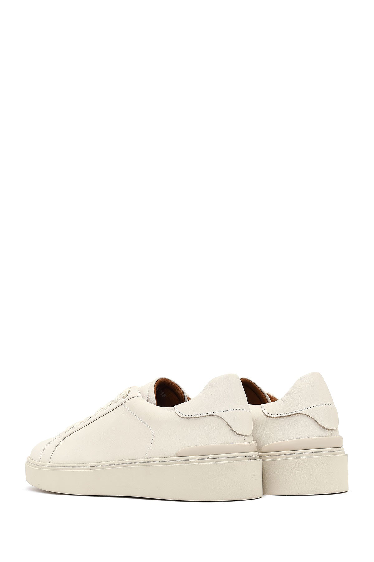 Erkek Beyaz Bağcıklı Deri Sneaker