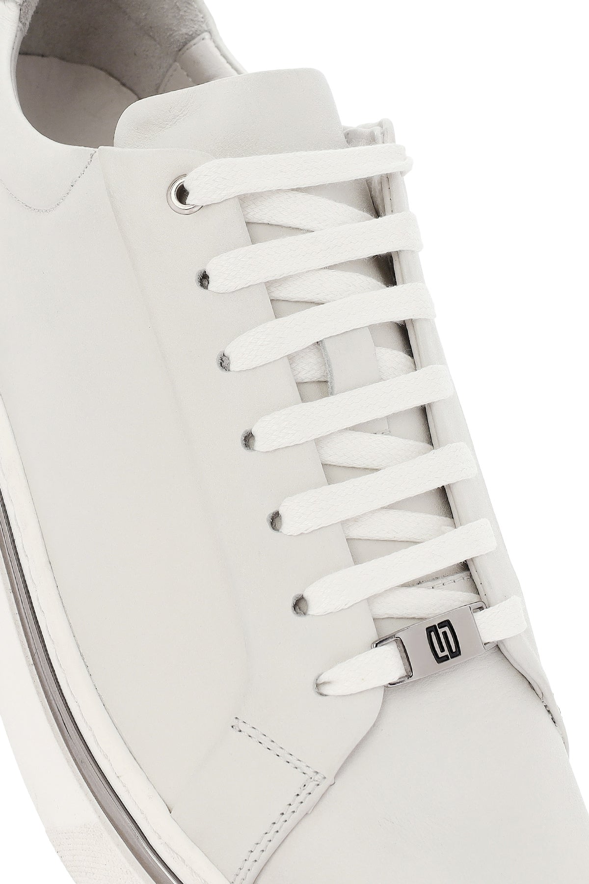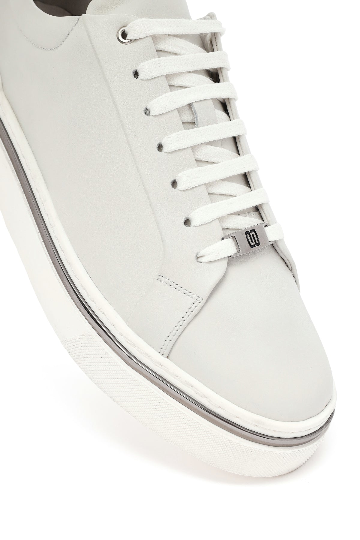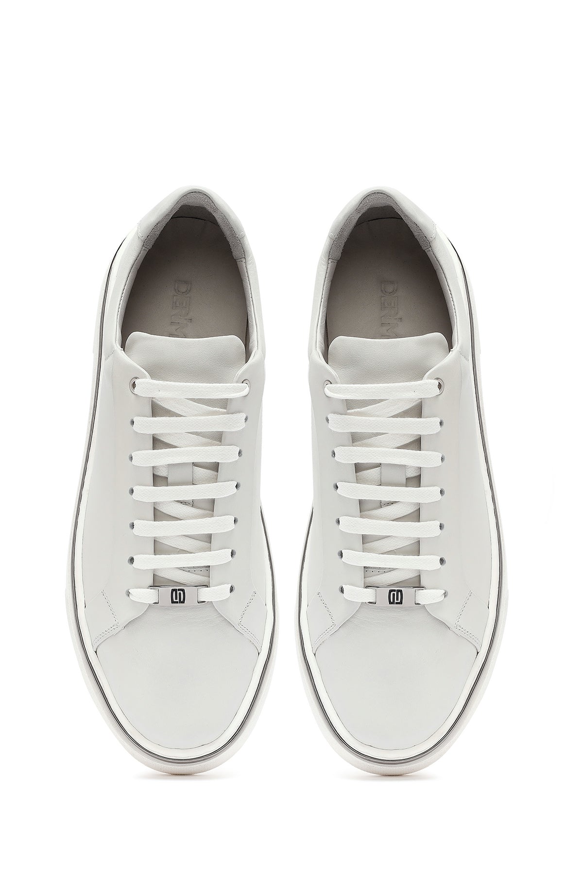 Erkek Beyaz Bağcıklı Deri Sneaker