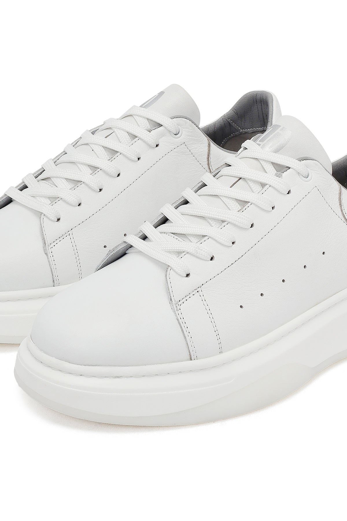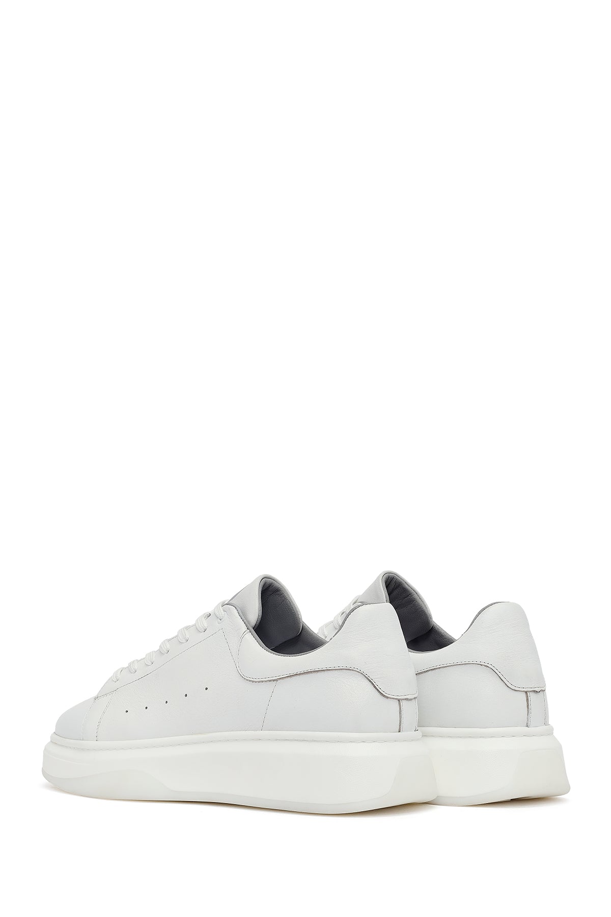 Erkek Beyaz Bağcıklı Kalın Tabanlı Deri Sneaker