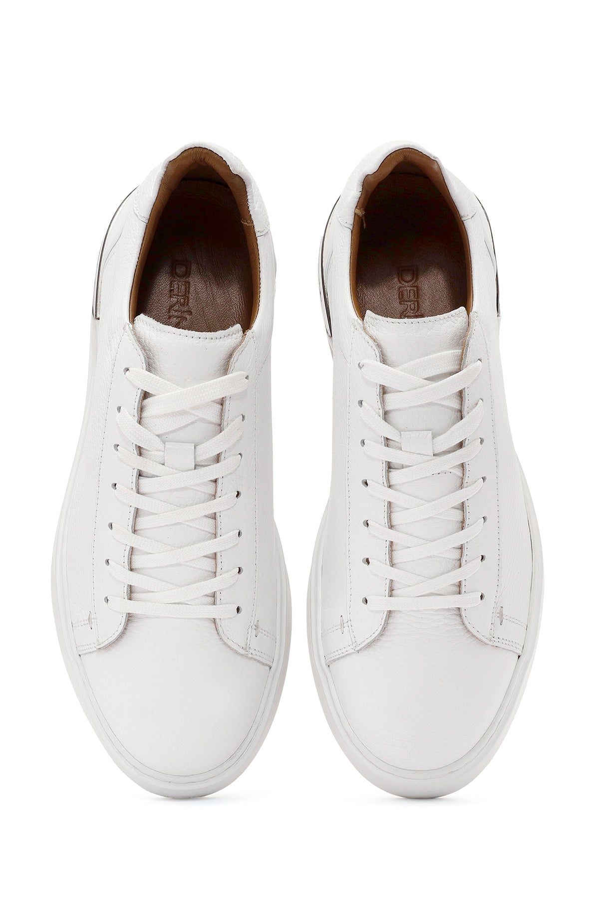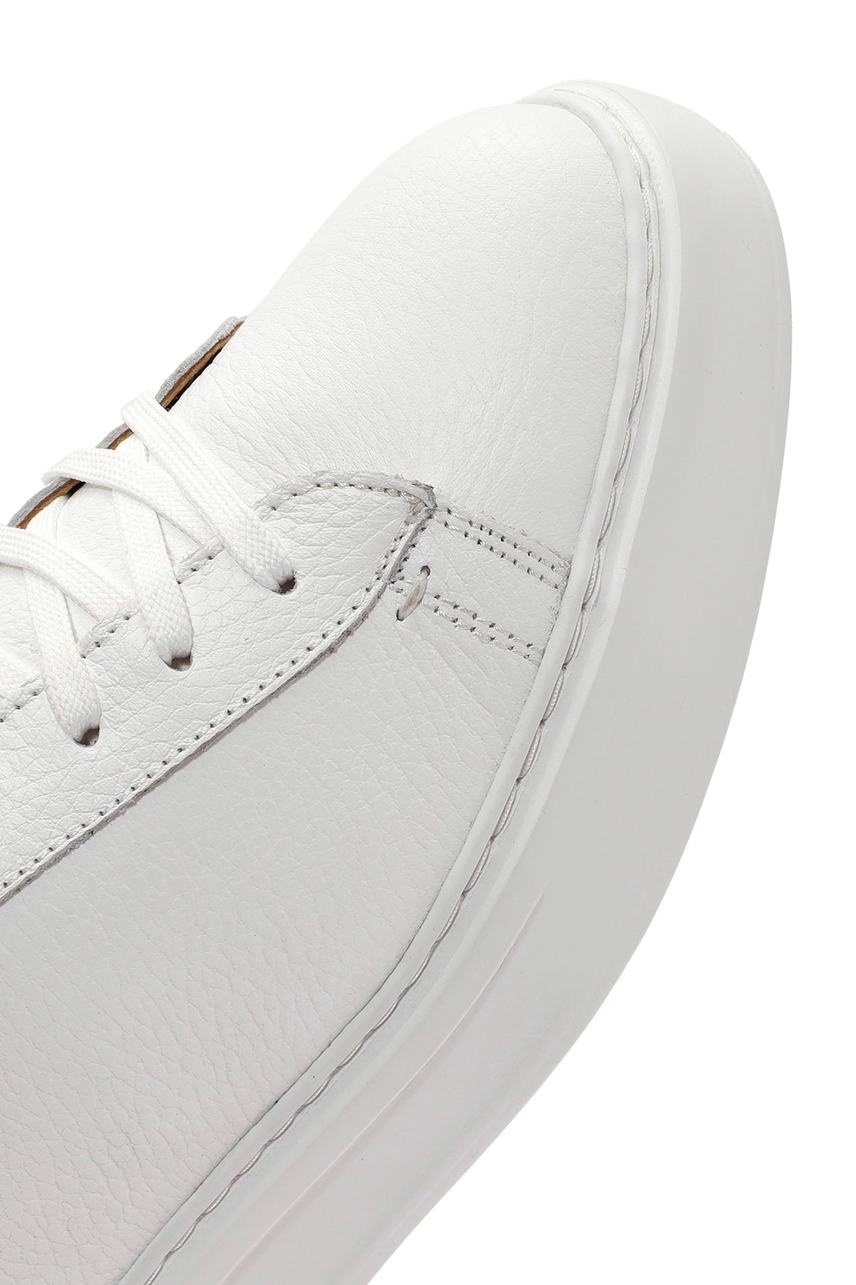 Erkek Beyaz Bağcıklı Kalın Tabanlı Deri Sneaker