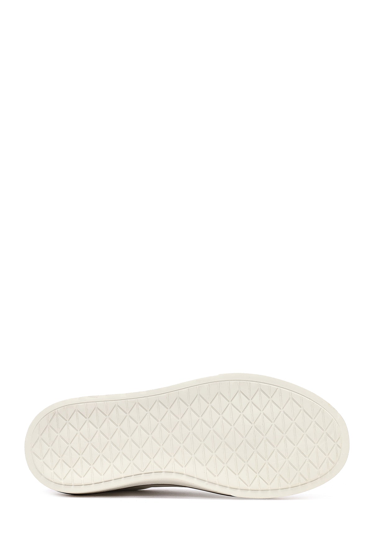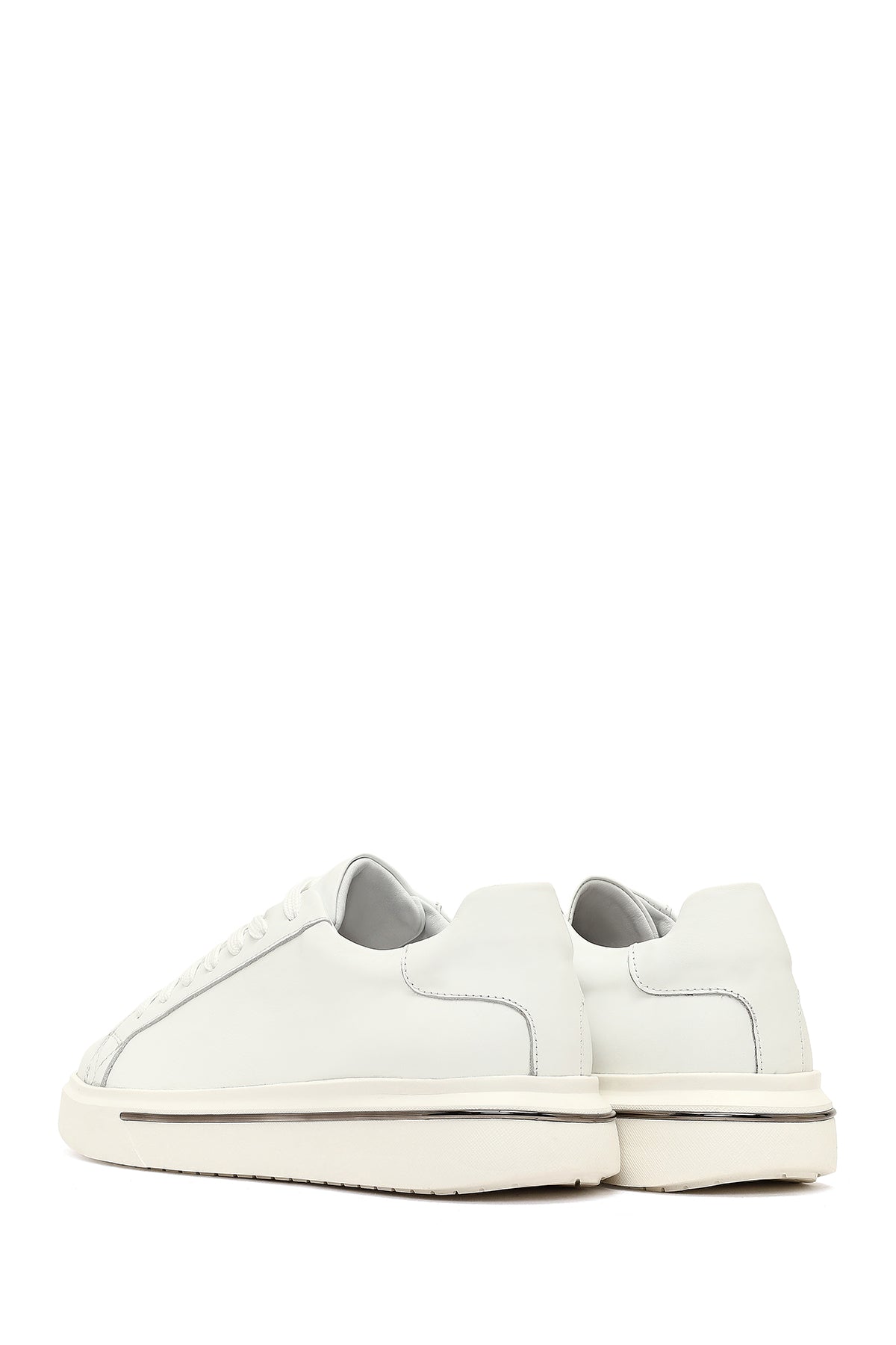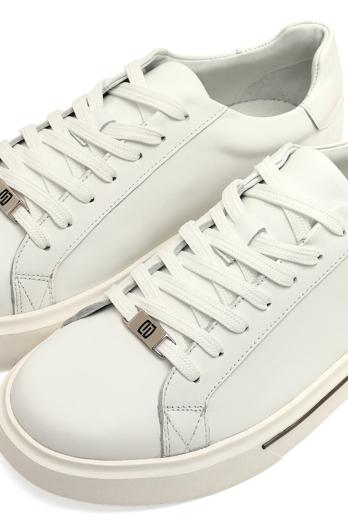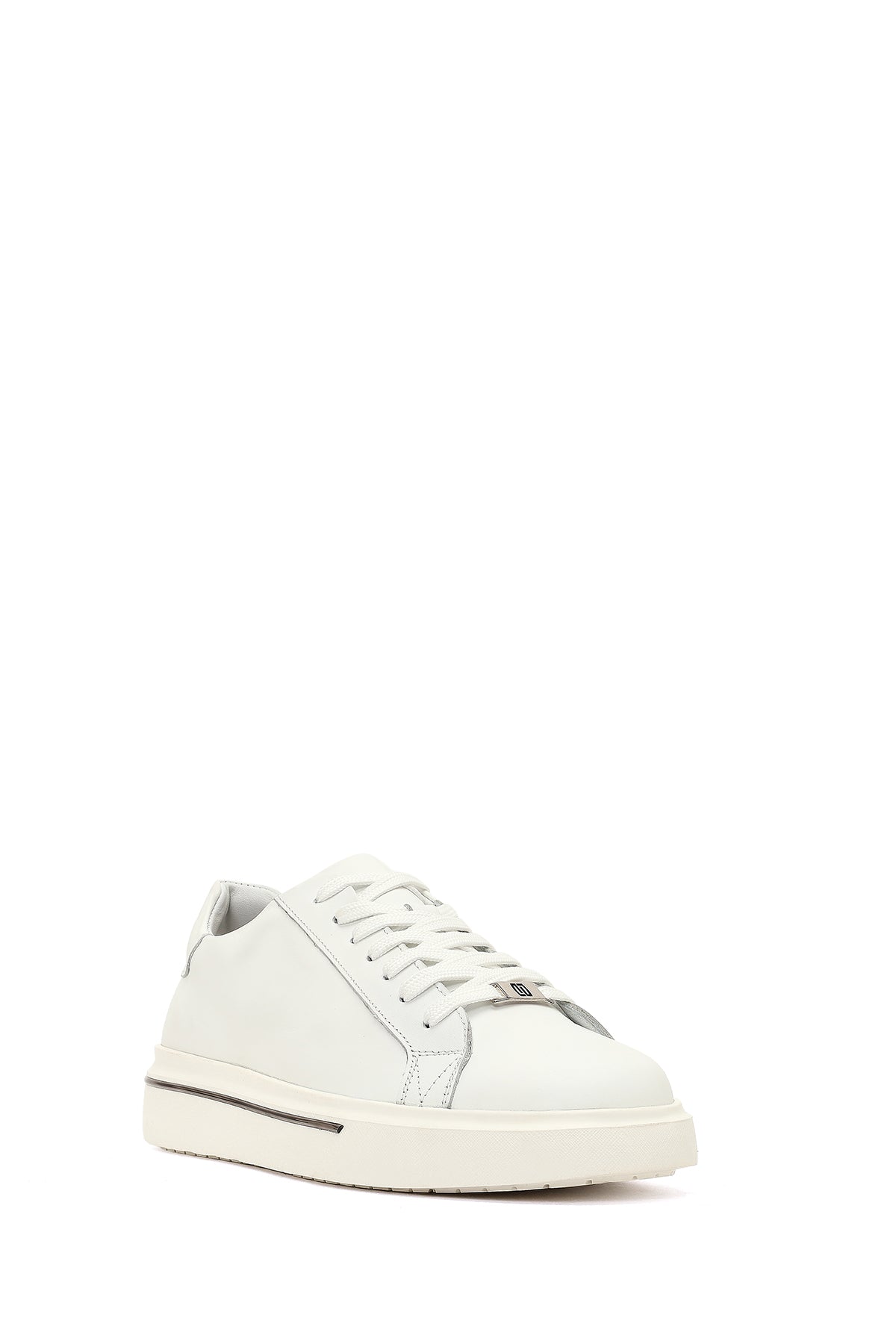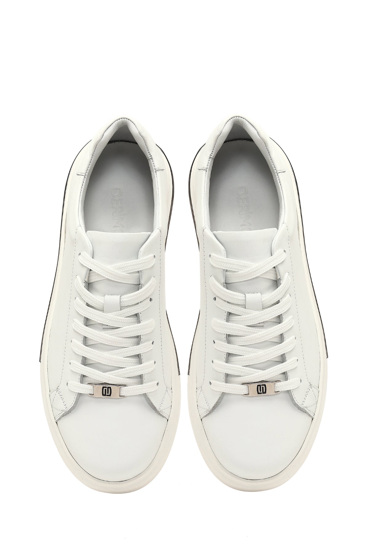 Erkek Beyaz Bağcıklı Kalın Tabanlı Deri Sneaker