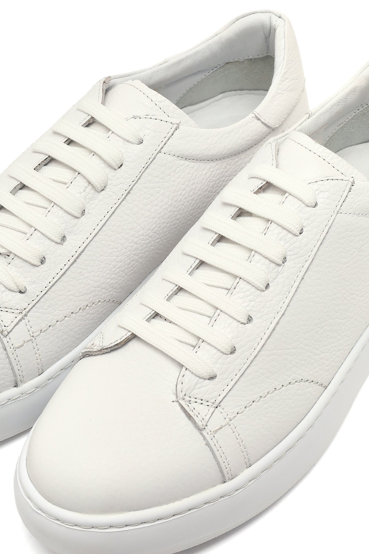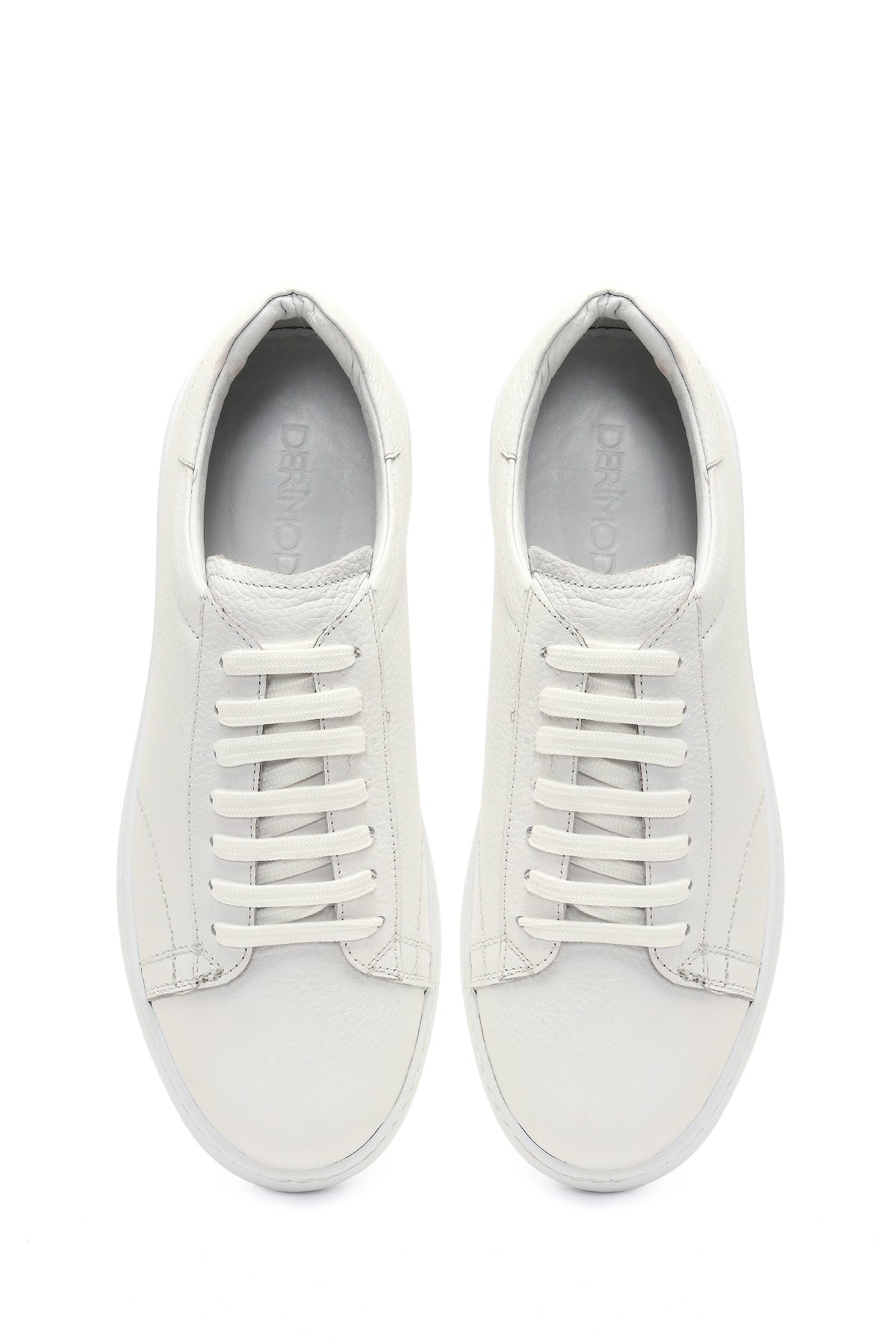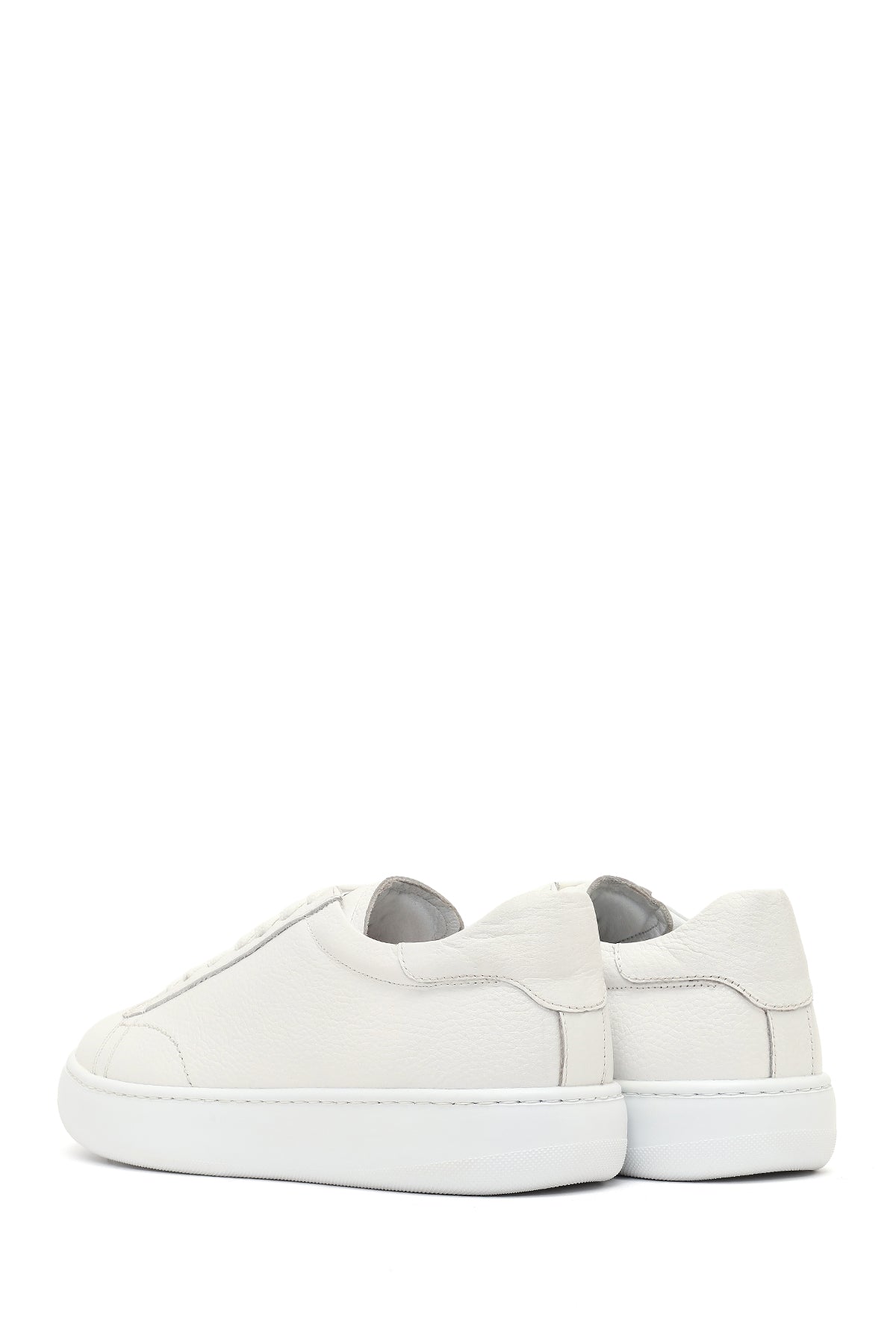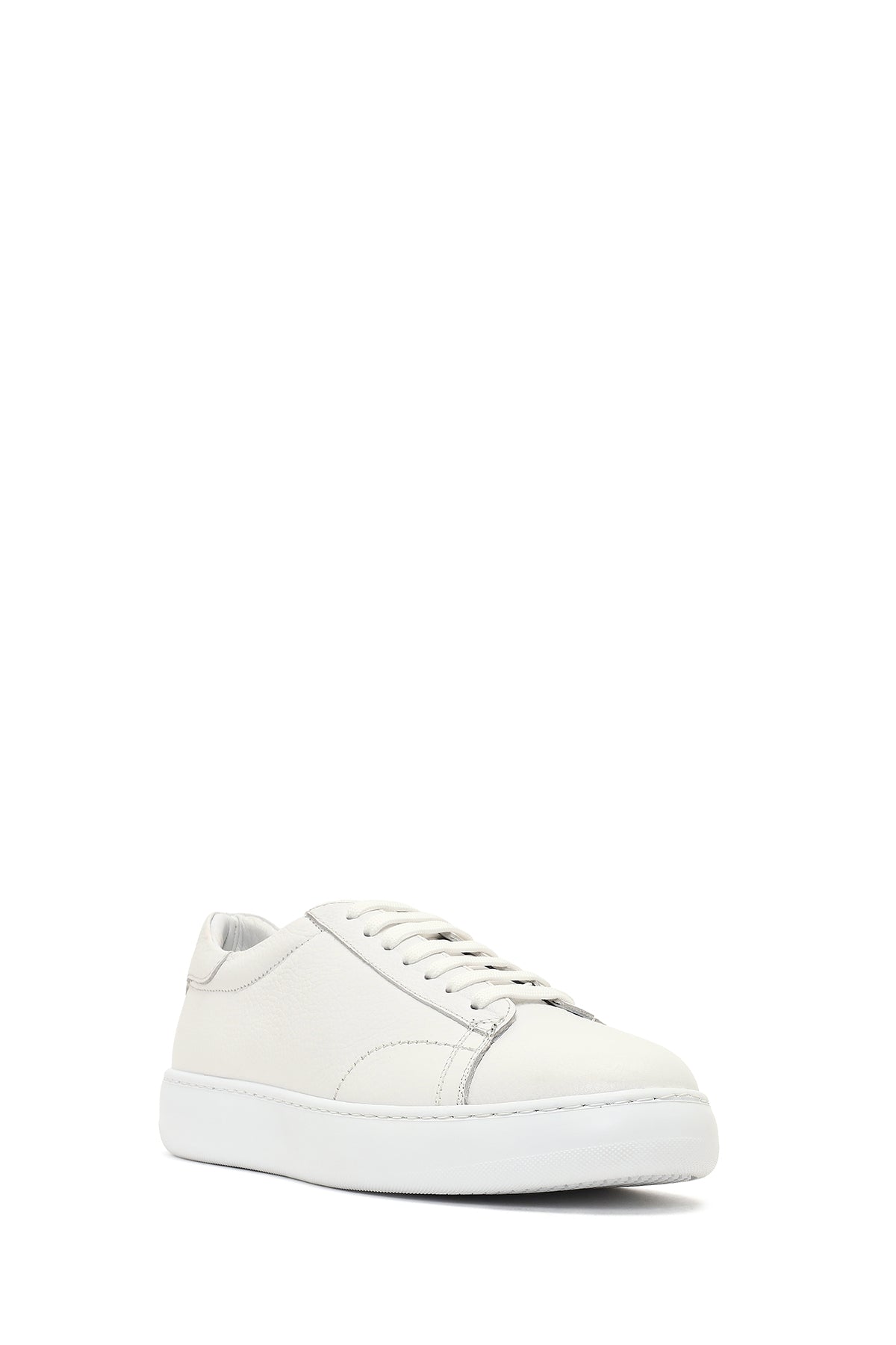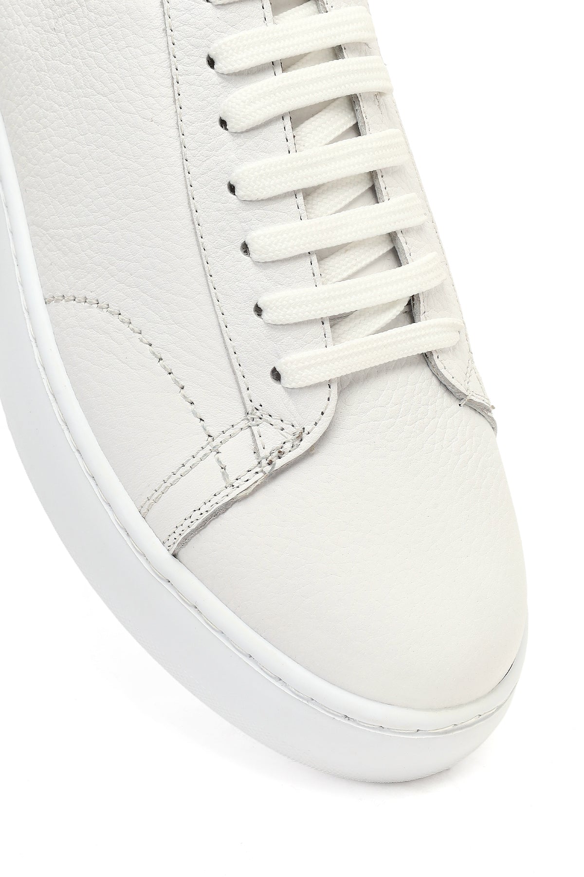 Erkek Beyaz Bağcıklı Kalın Tabanlı Deri Sneaker