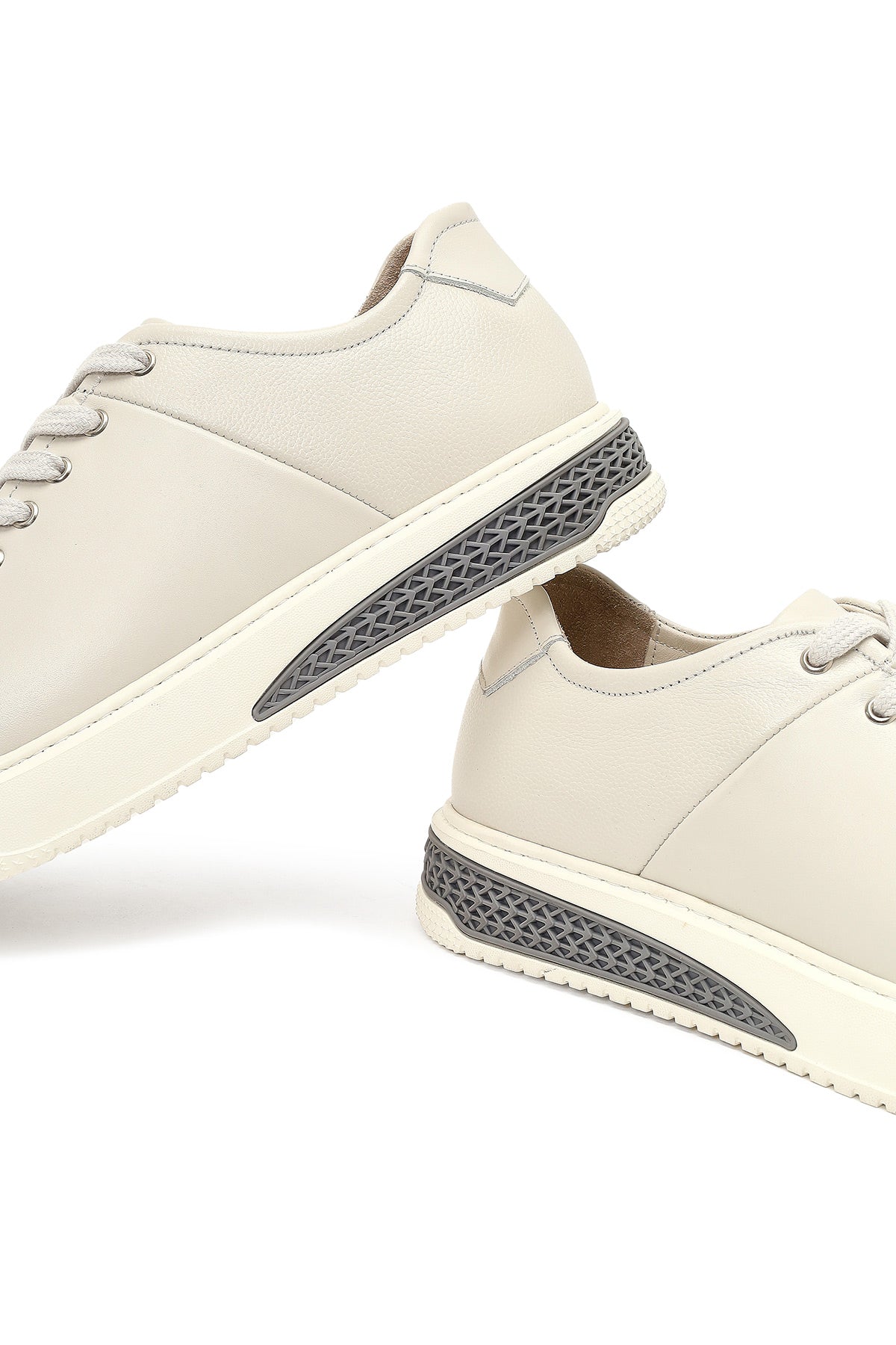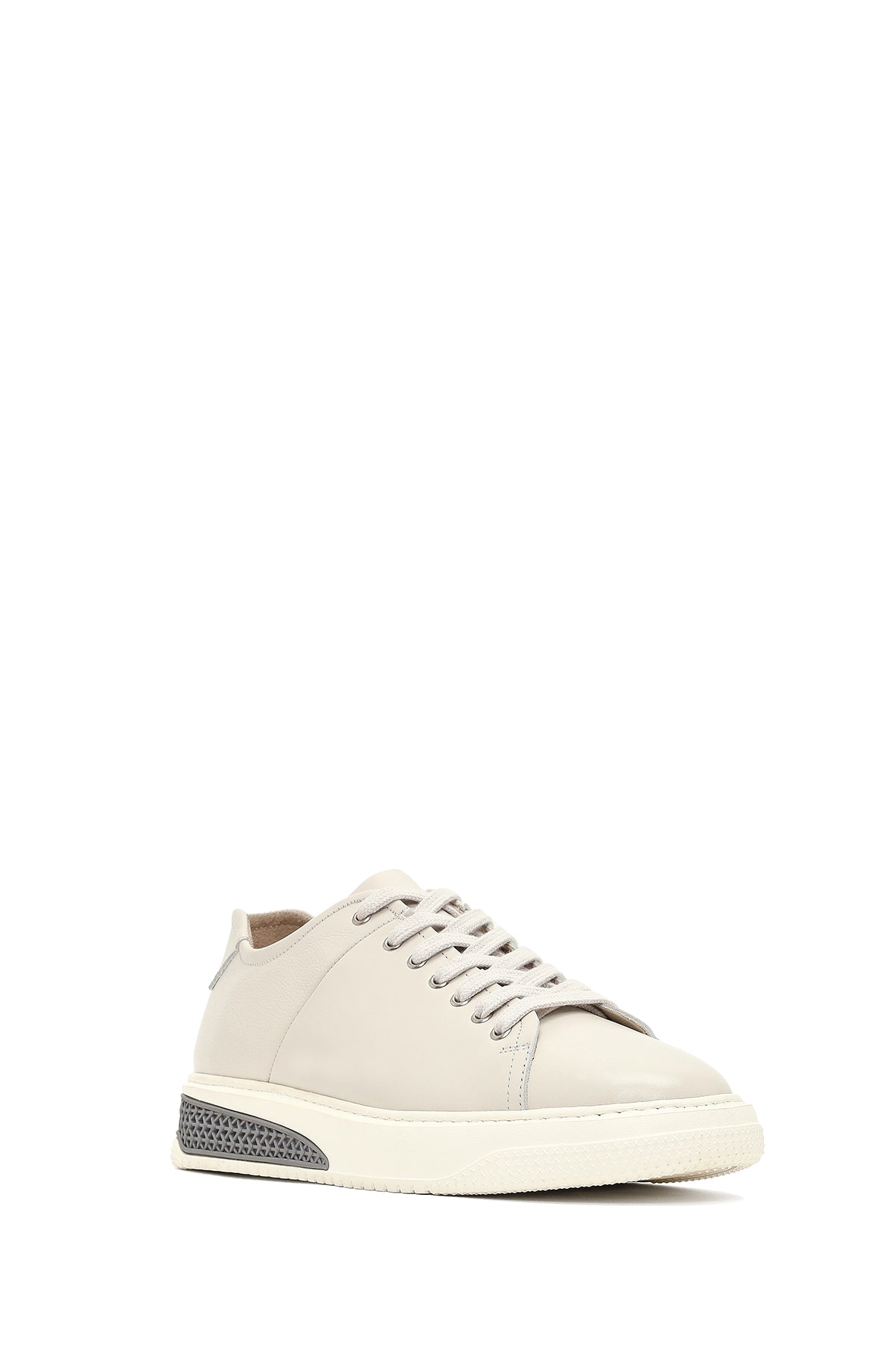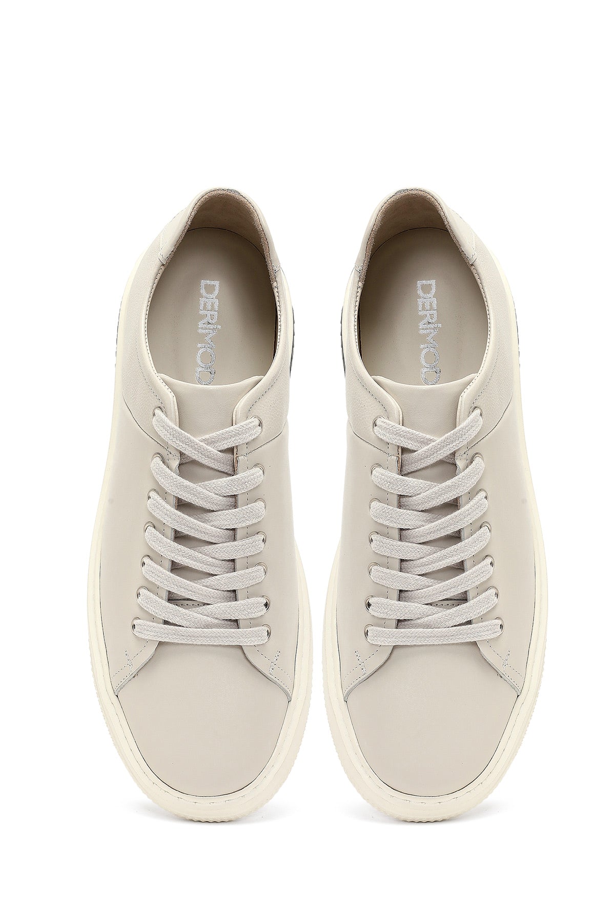 Erkek Beyaz Bağcıklı Kalın Tabanlı Deri Sneaker