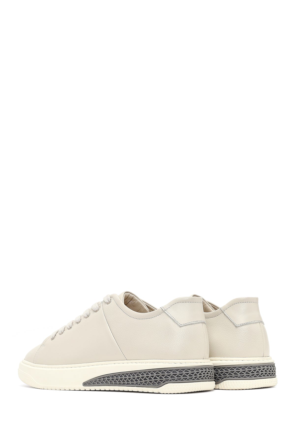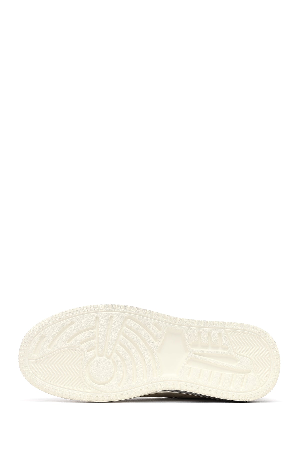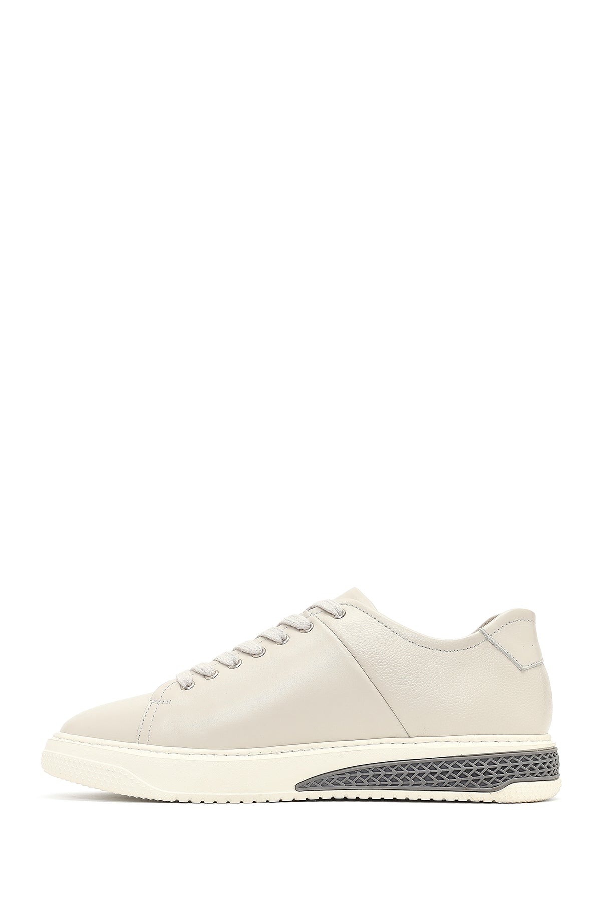 Erkek Beyaz Bağcıklı Kalın Tabanlı Deri Sneaker