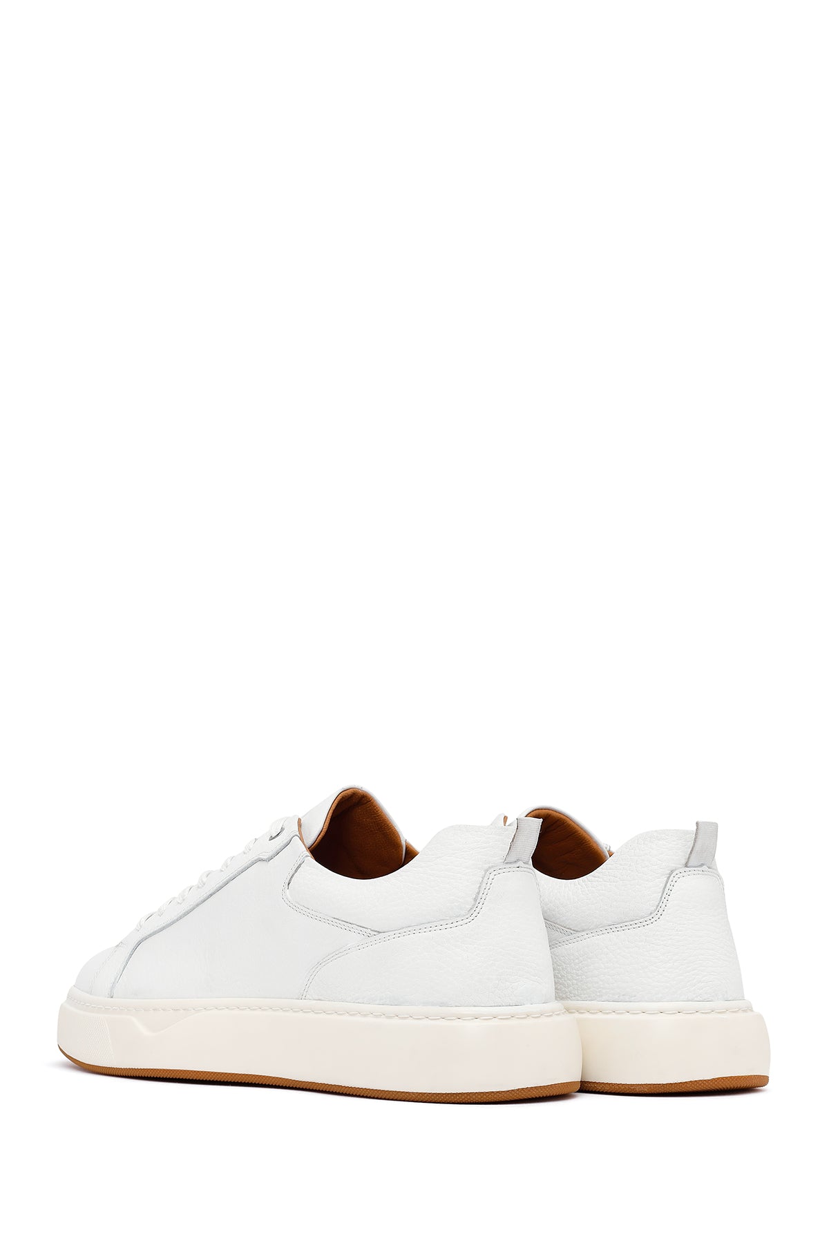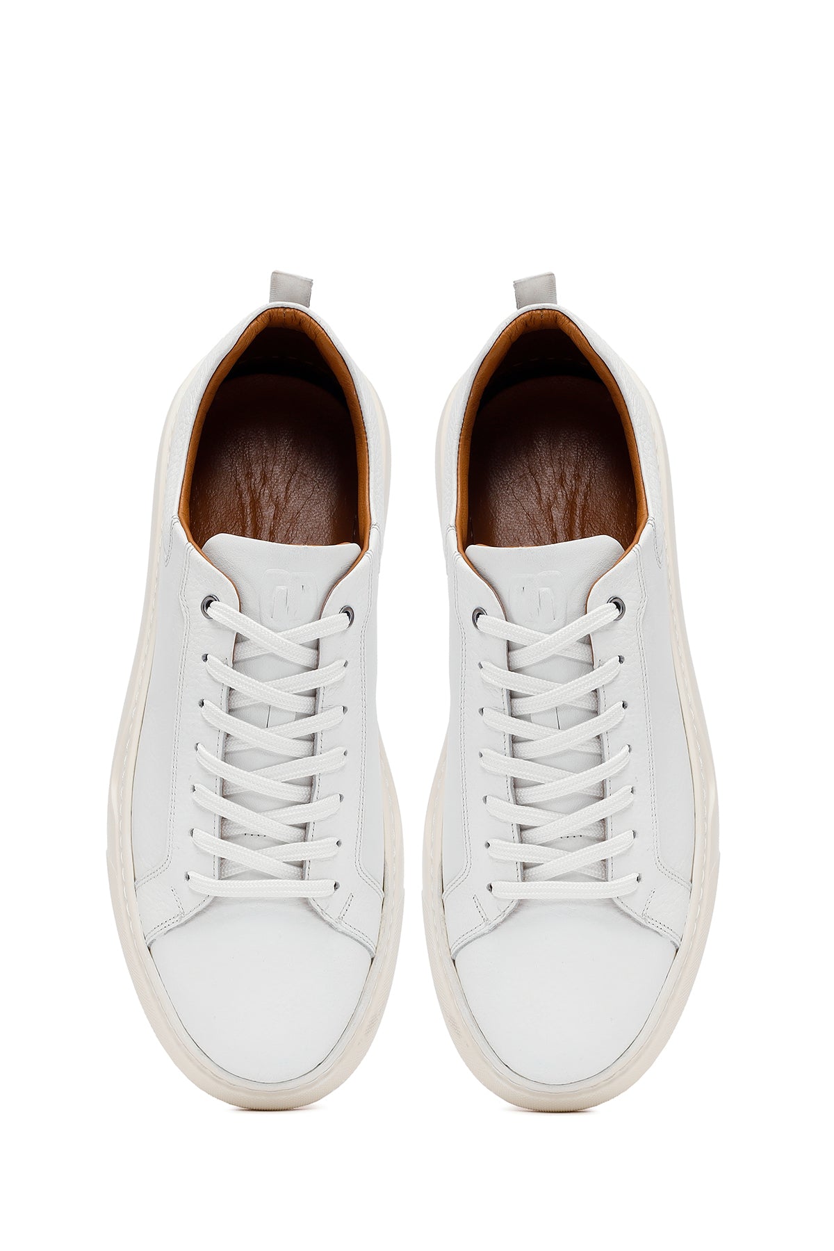 Erkek Beyaz Bağcıklı Kalın Tabanlı Deri Sneaker