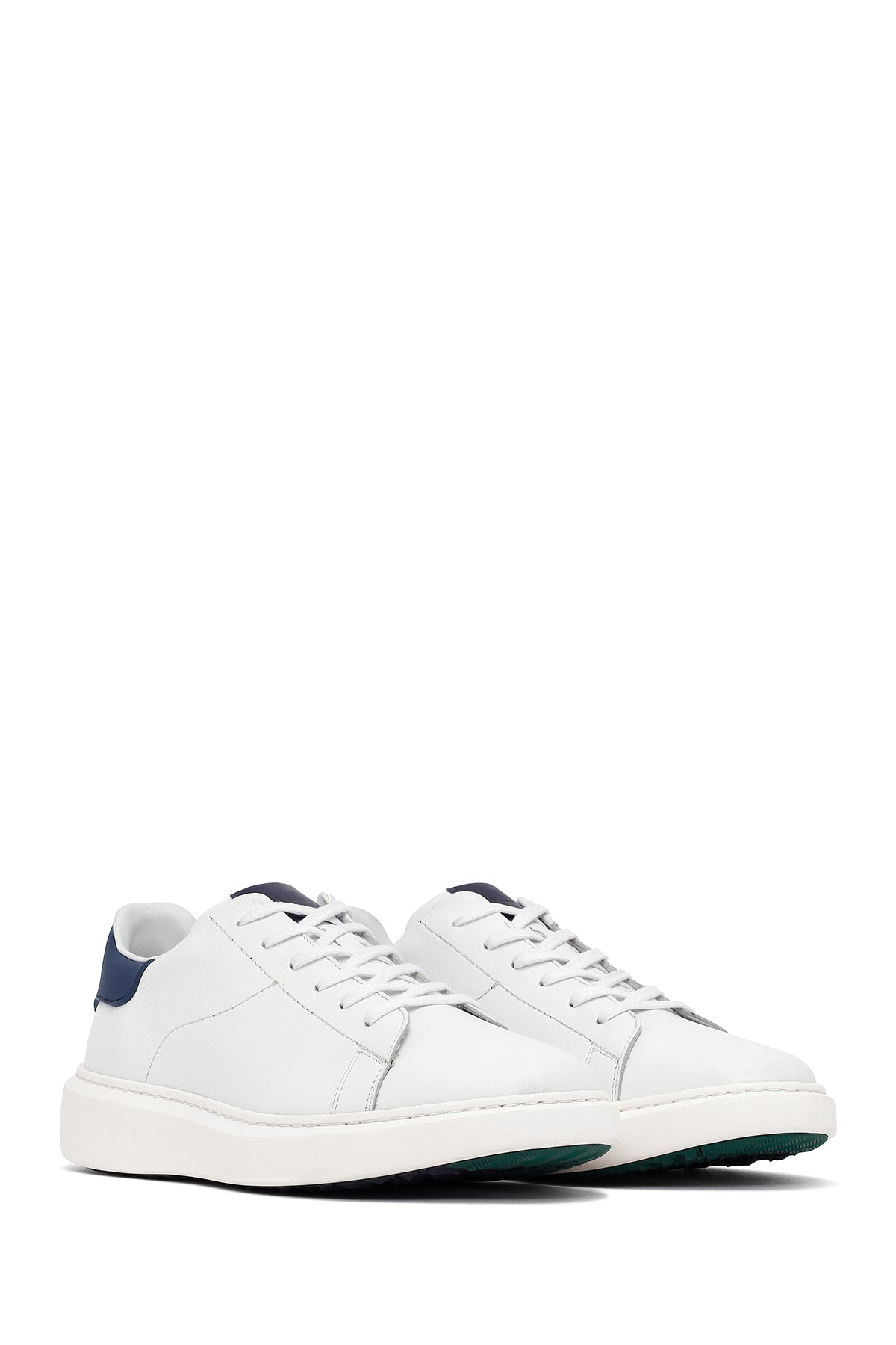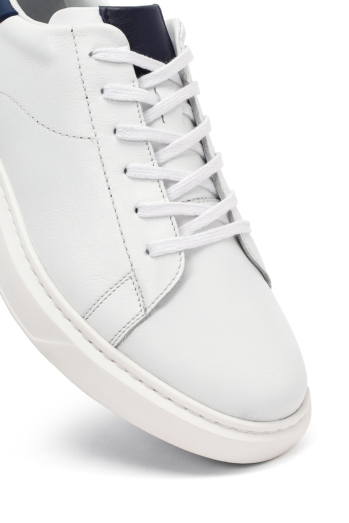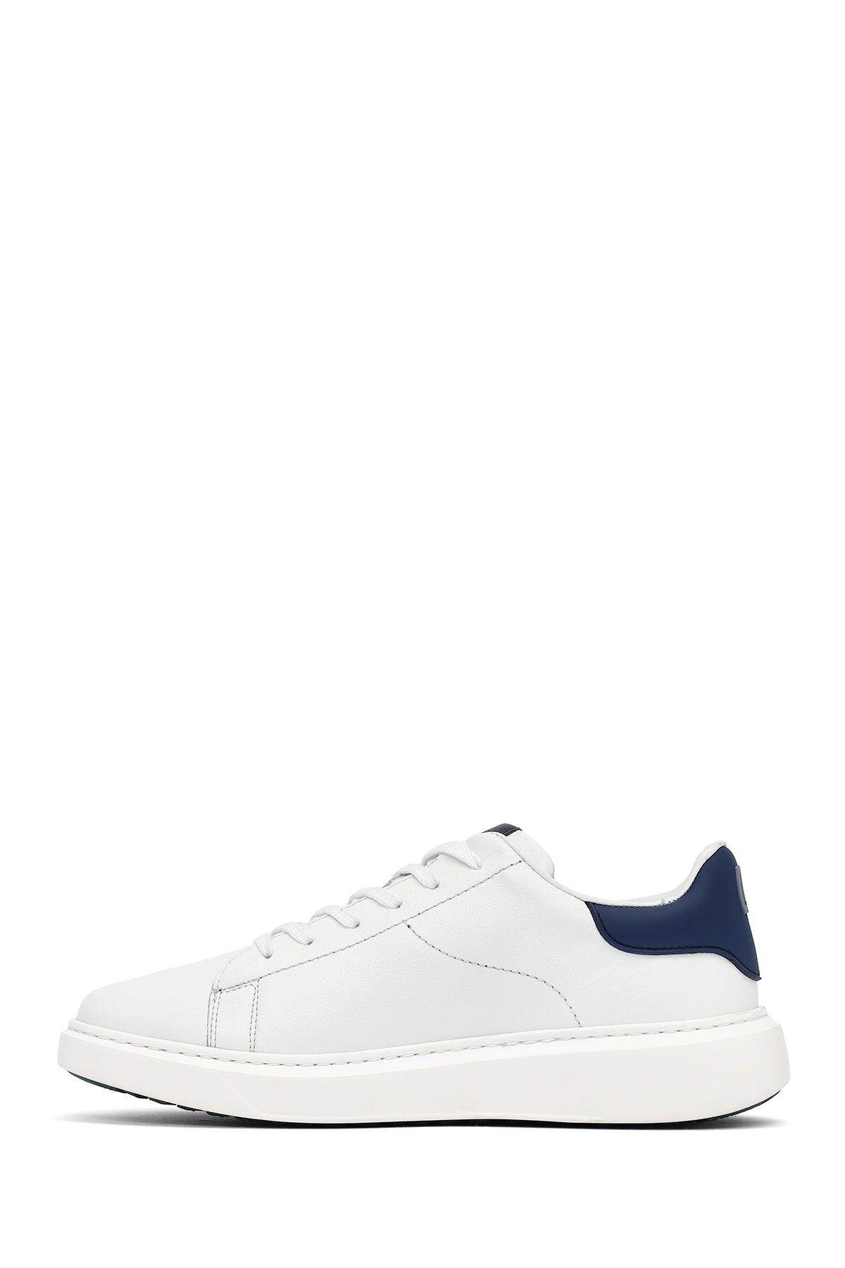 Erkek Beyaz Bağcıklı Kalın Tabanlı Deri Sneaker
