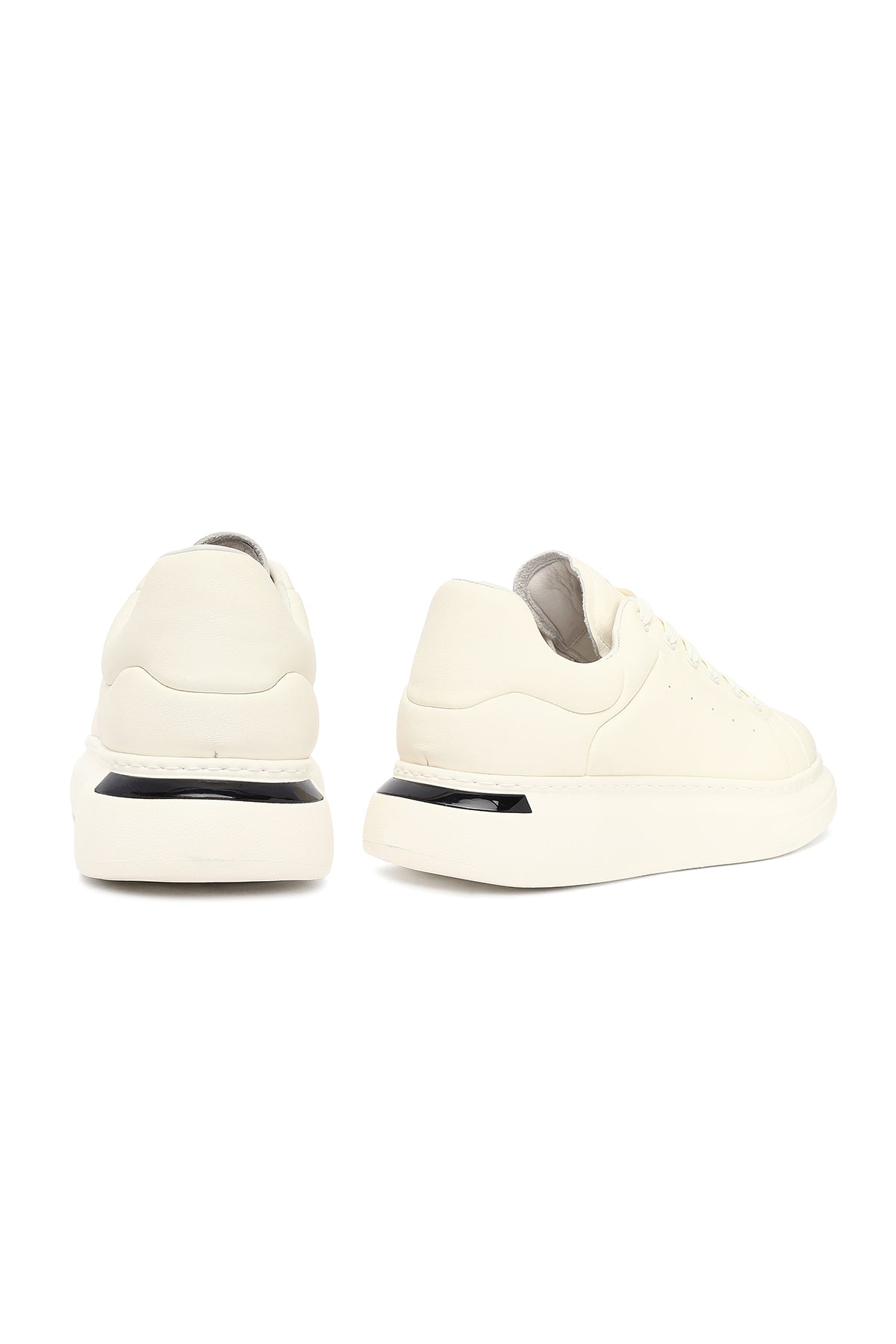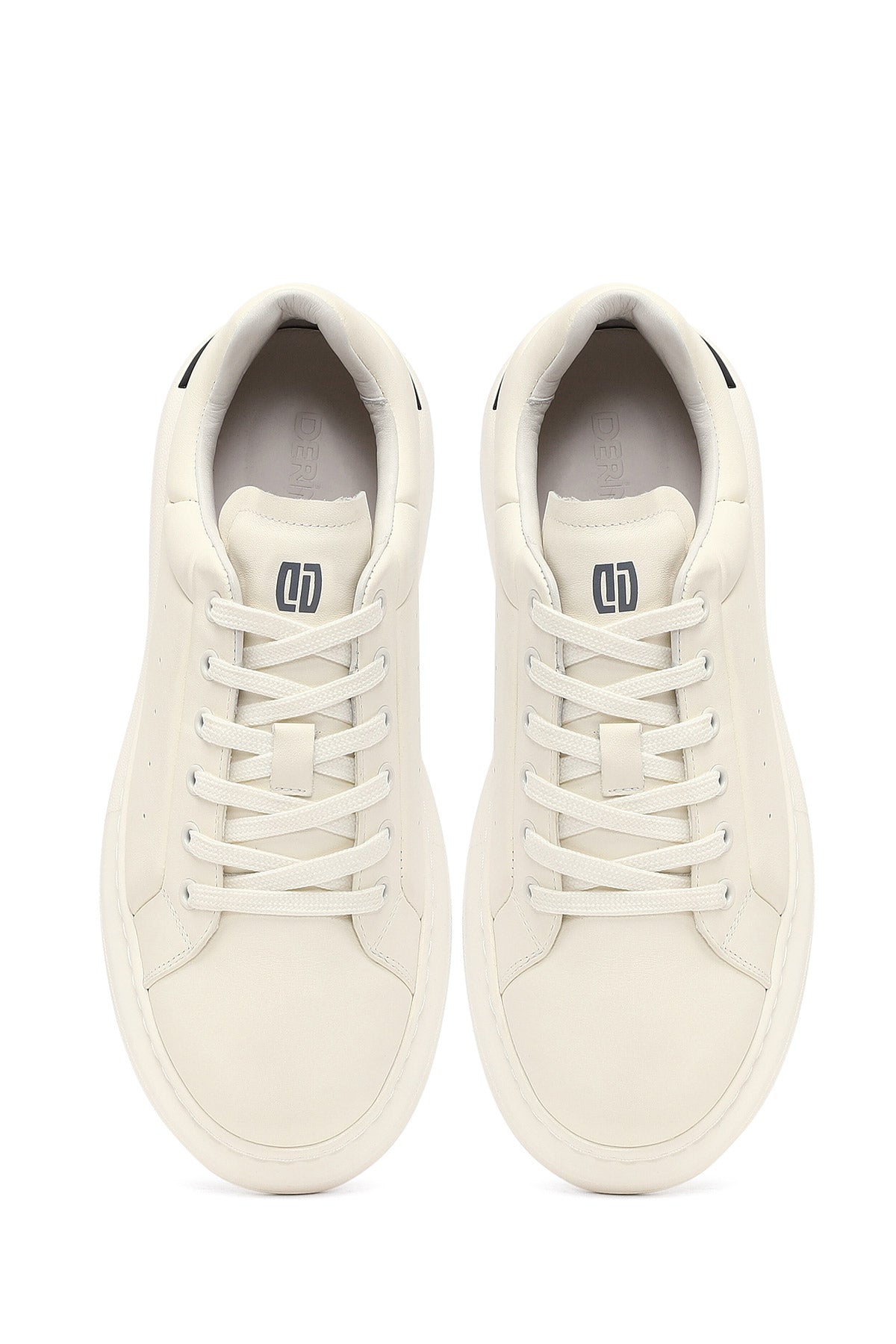 Erkek Beyaz Bağcıklı Kalın Tabanlı Deri Sneaker