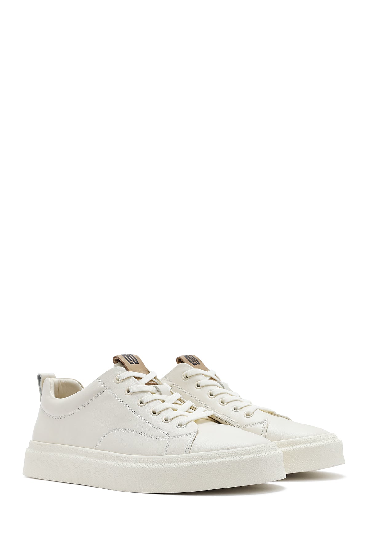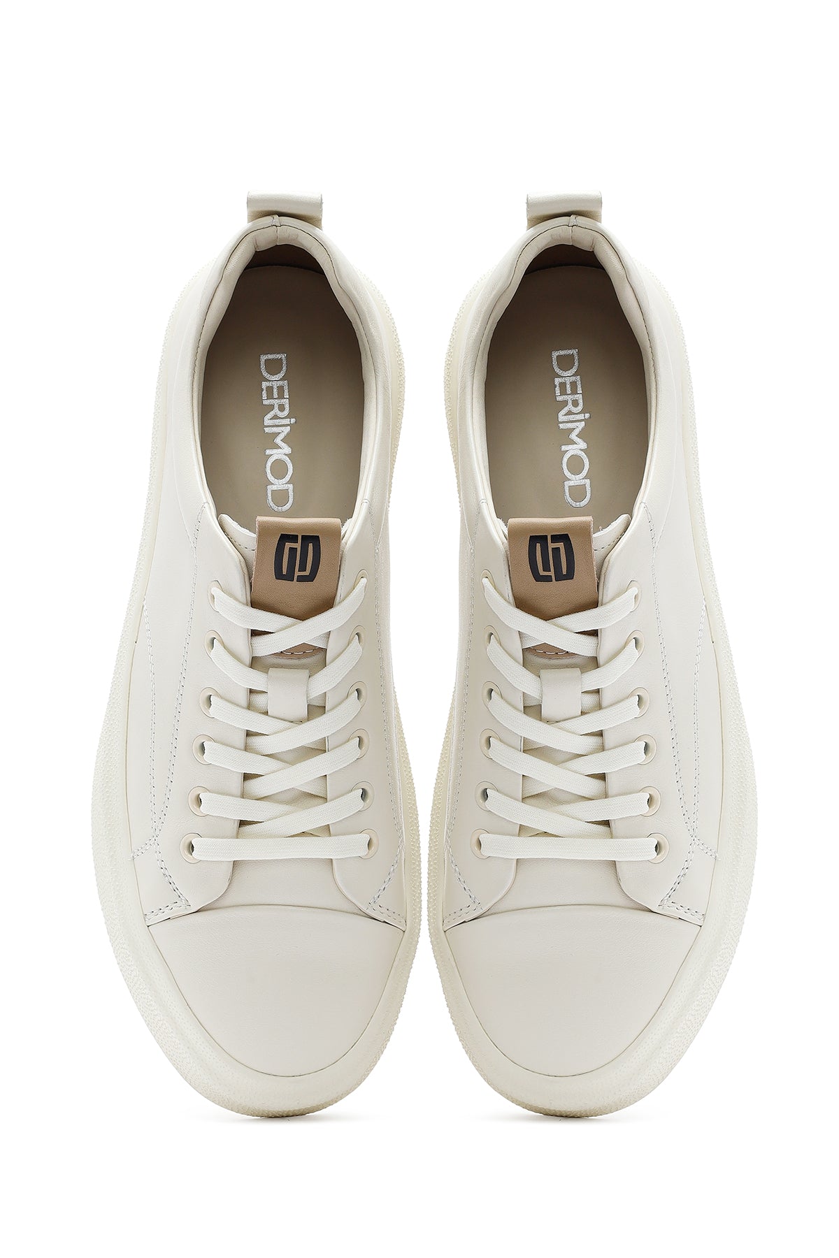 Erkek Beyaz Bağcıklı Deri Sneaker