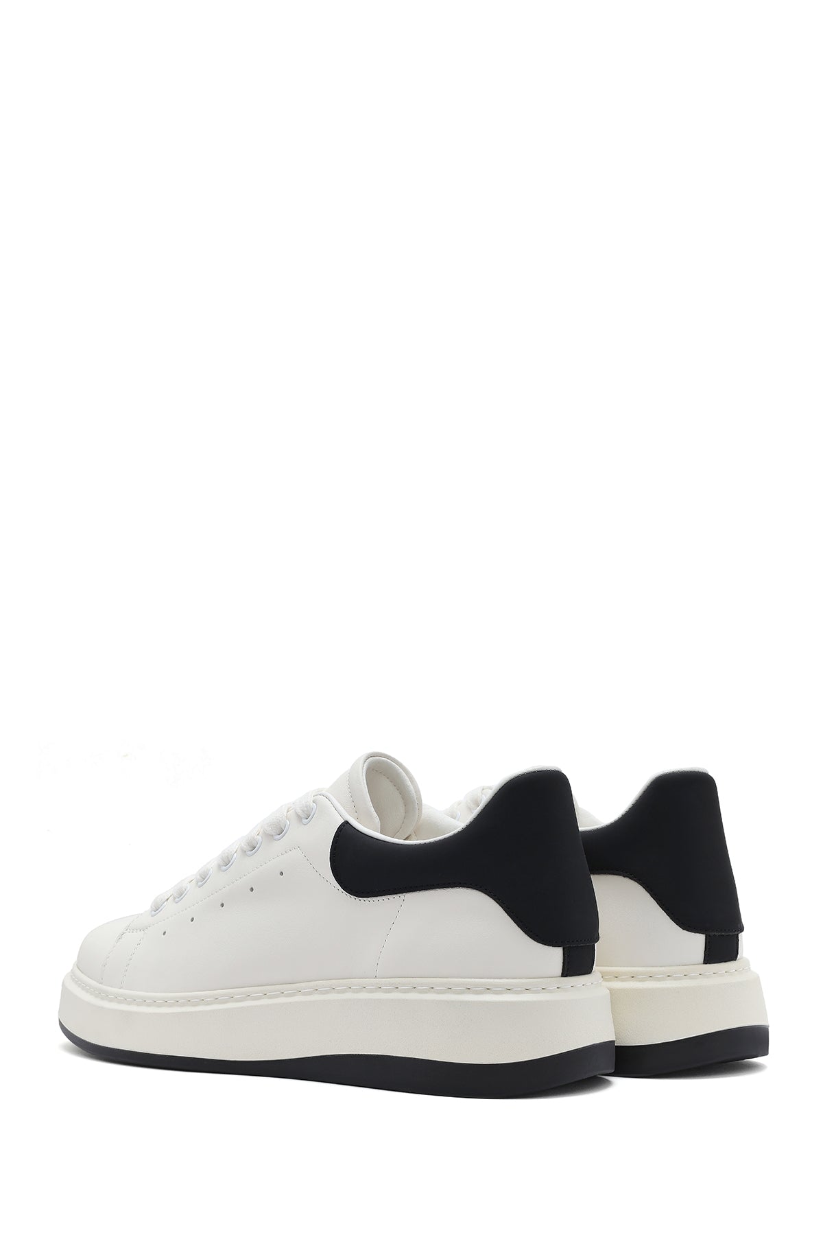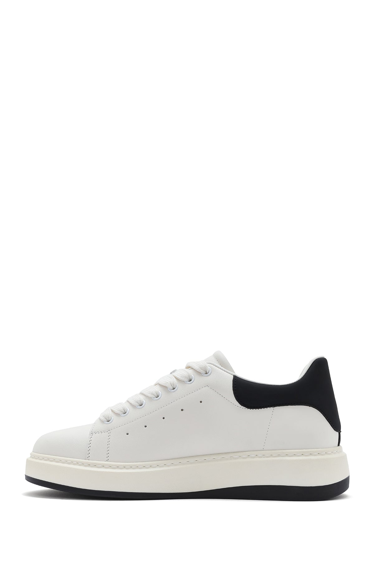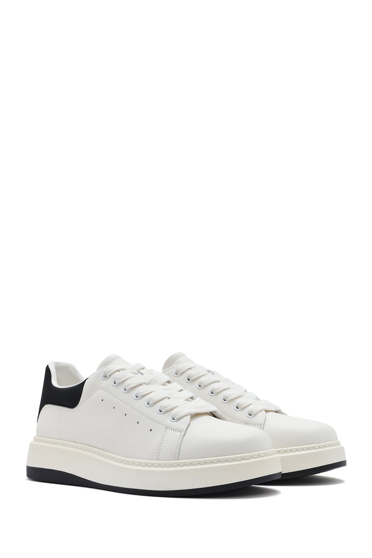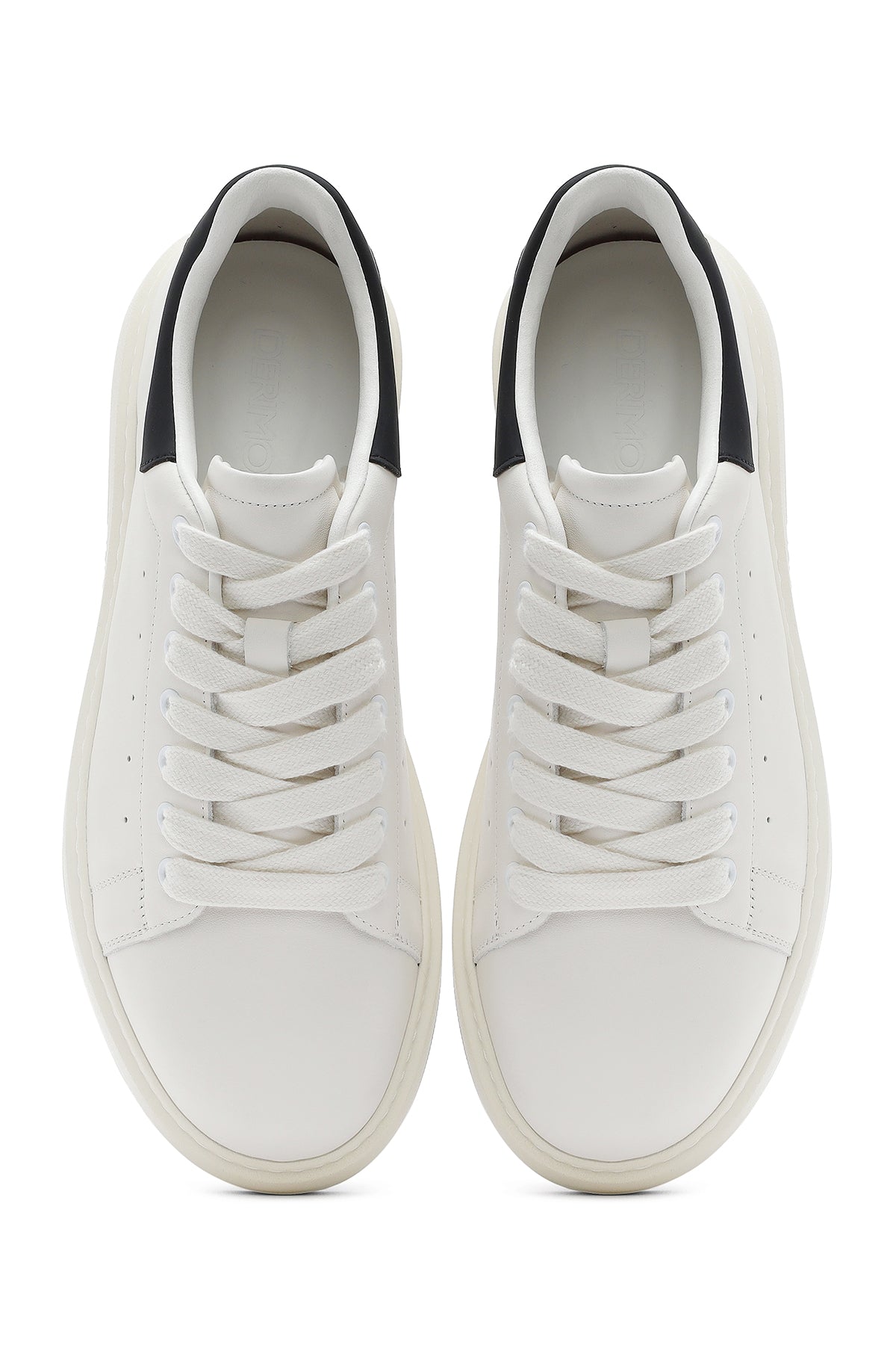 Erkek Beyaz Bağcıklı Deri Sneaker
