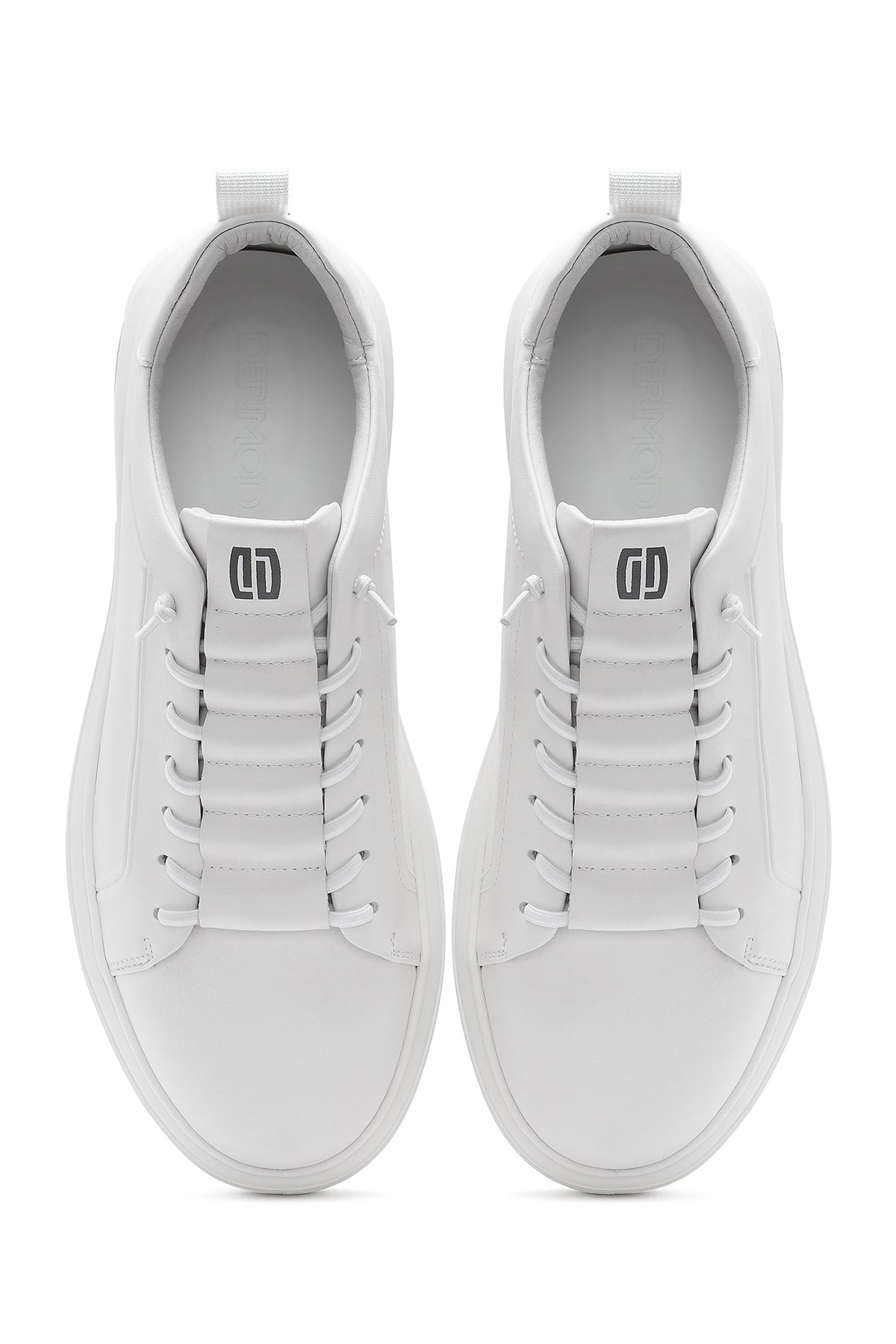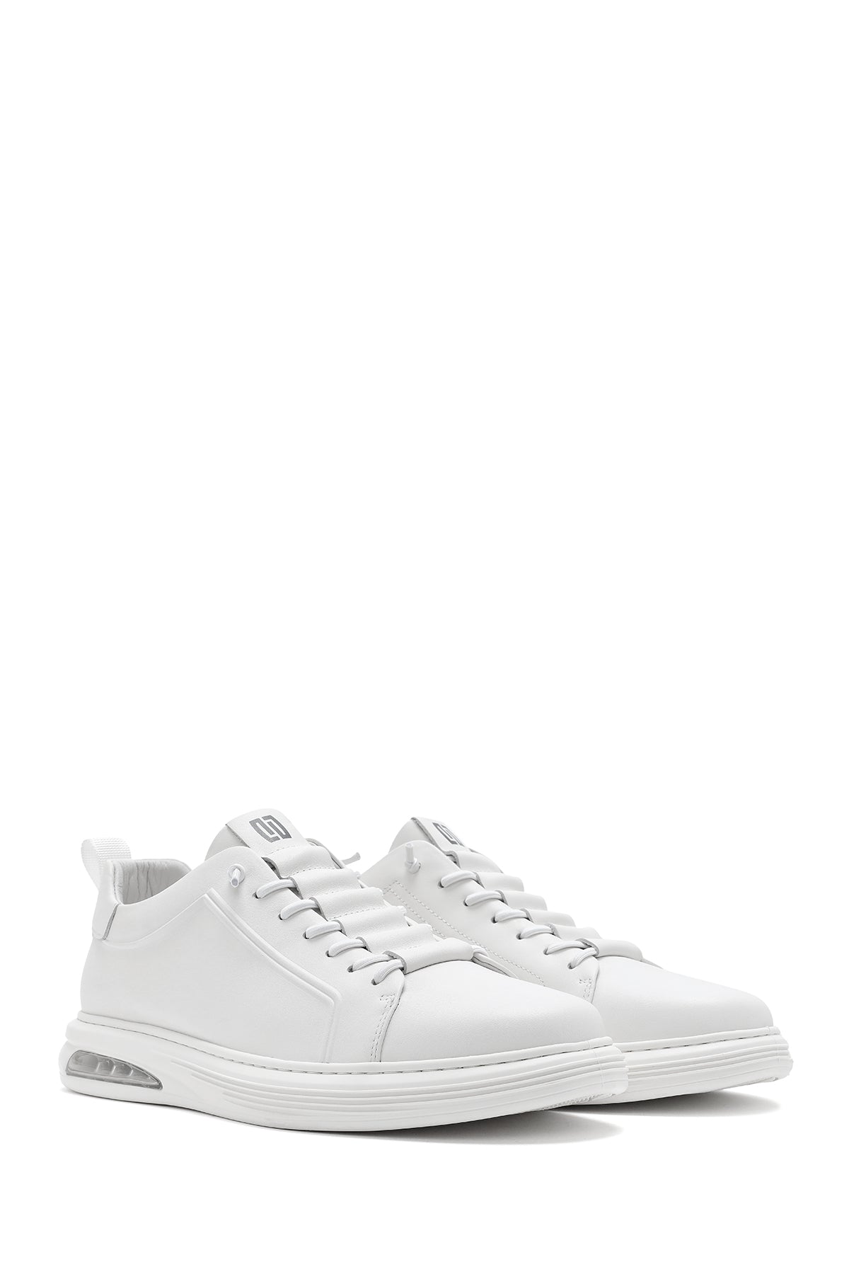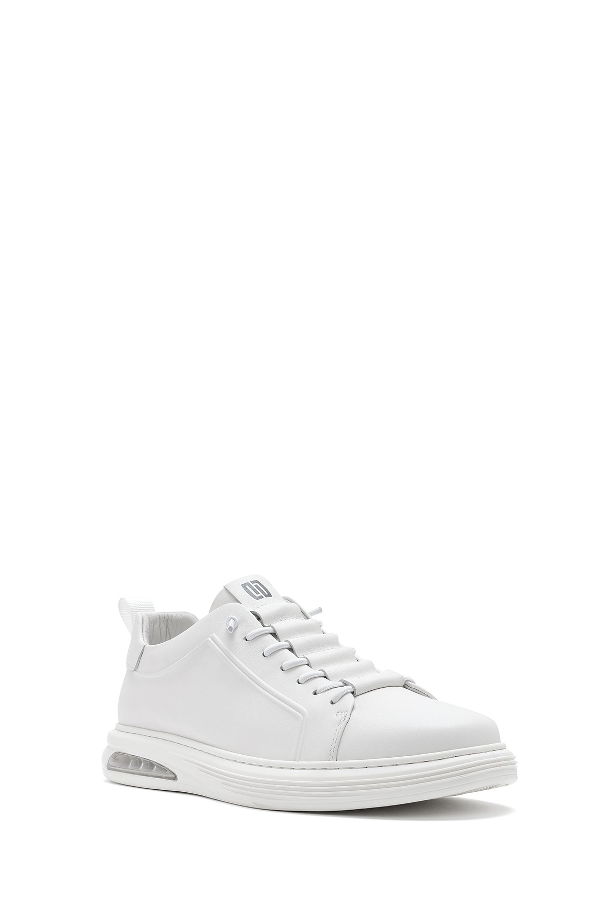 Erkek Beyaz Bağcıklı Deri Sneaker