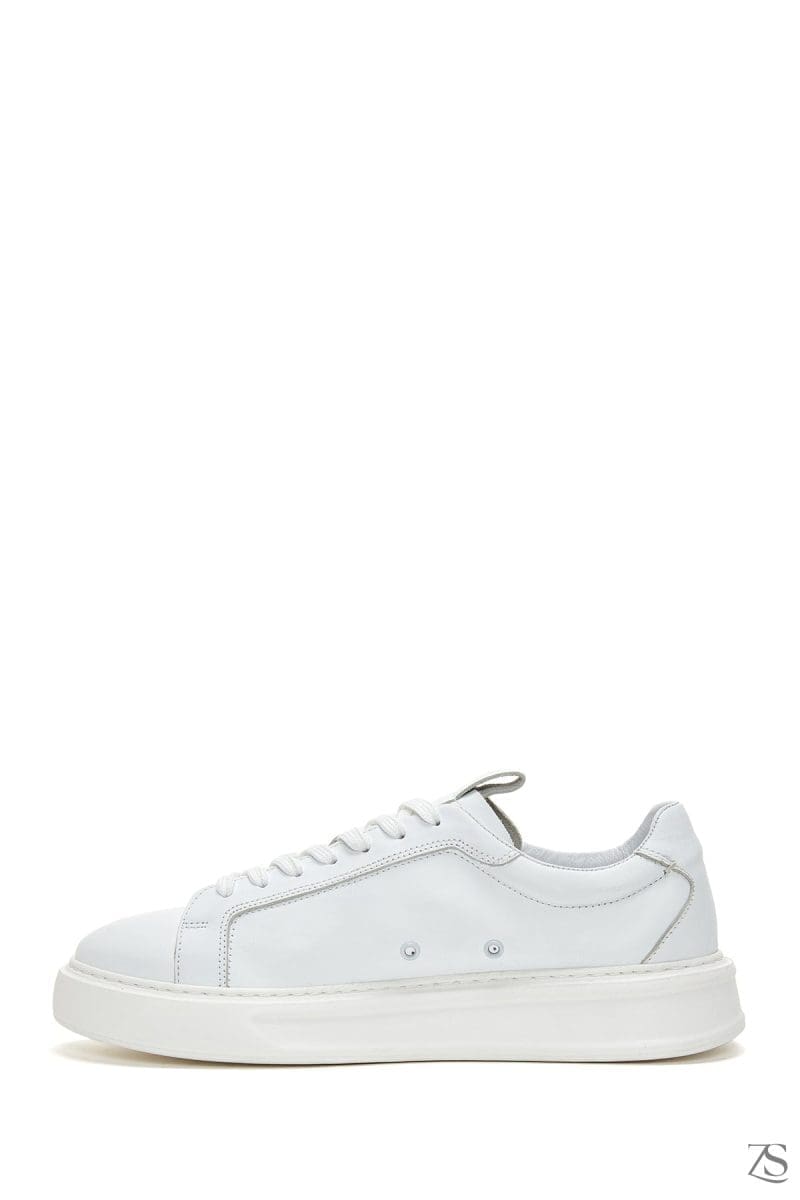 Erkek Beyaz Bağcıklı Deri Sneaker