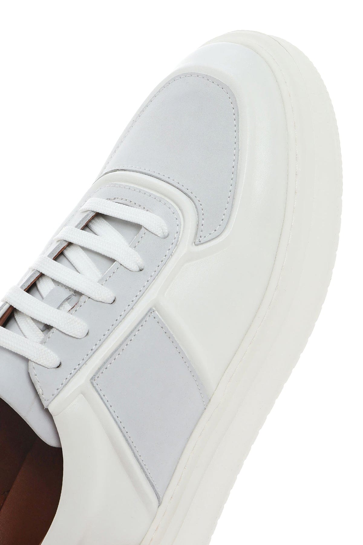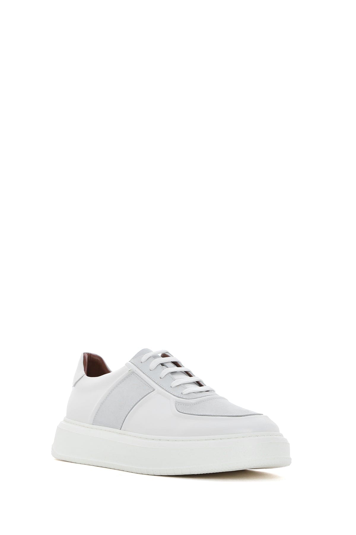 Erkek Beyaz Bağcıklı Deri Sneaker