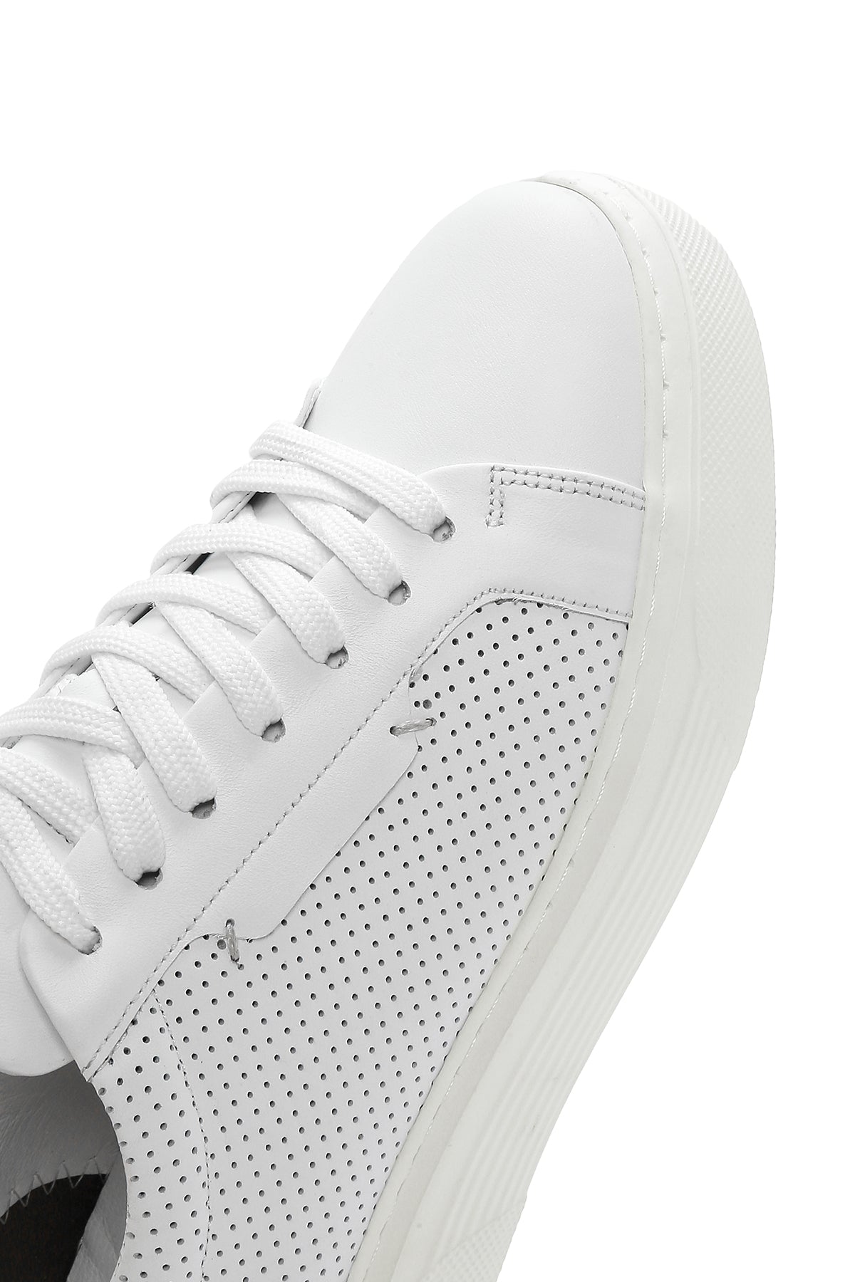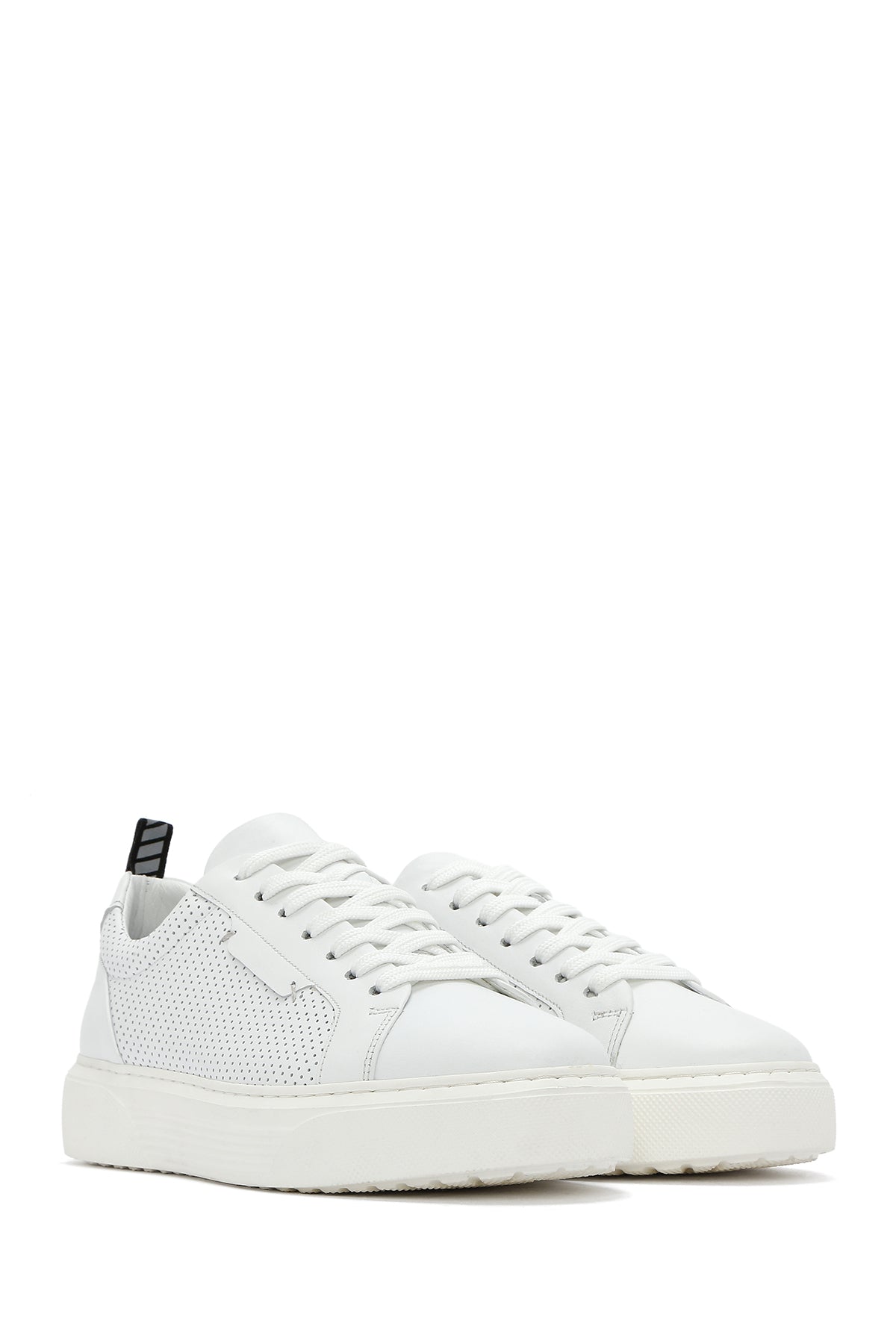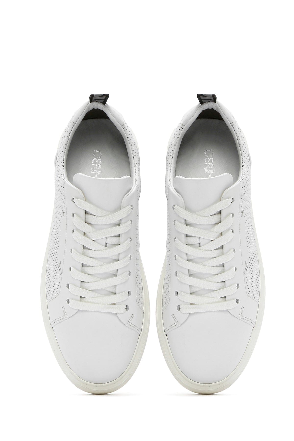 Erkek Beyaz Bağcıklı Deri Sneaker