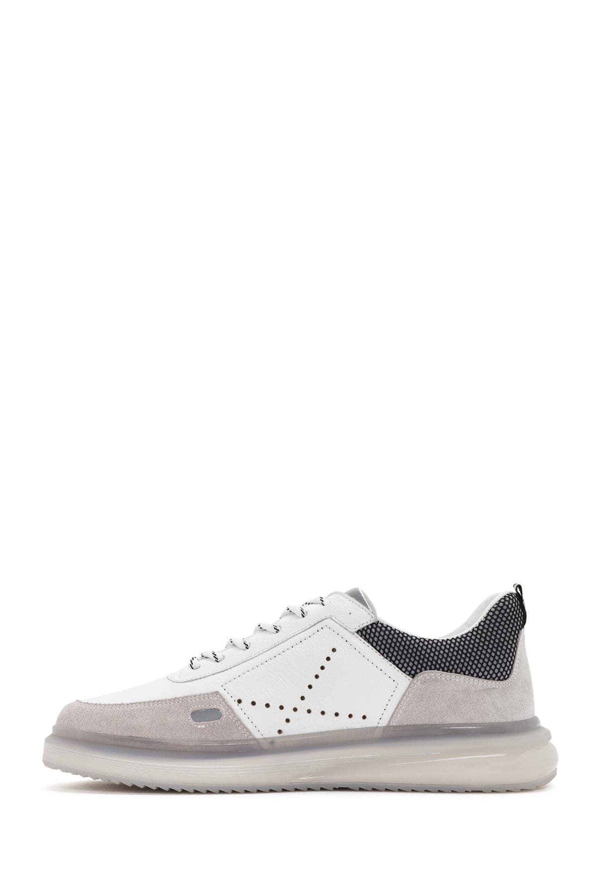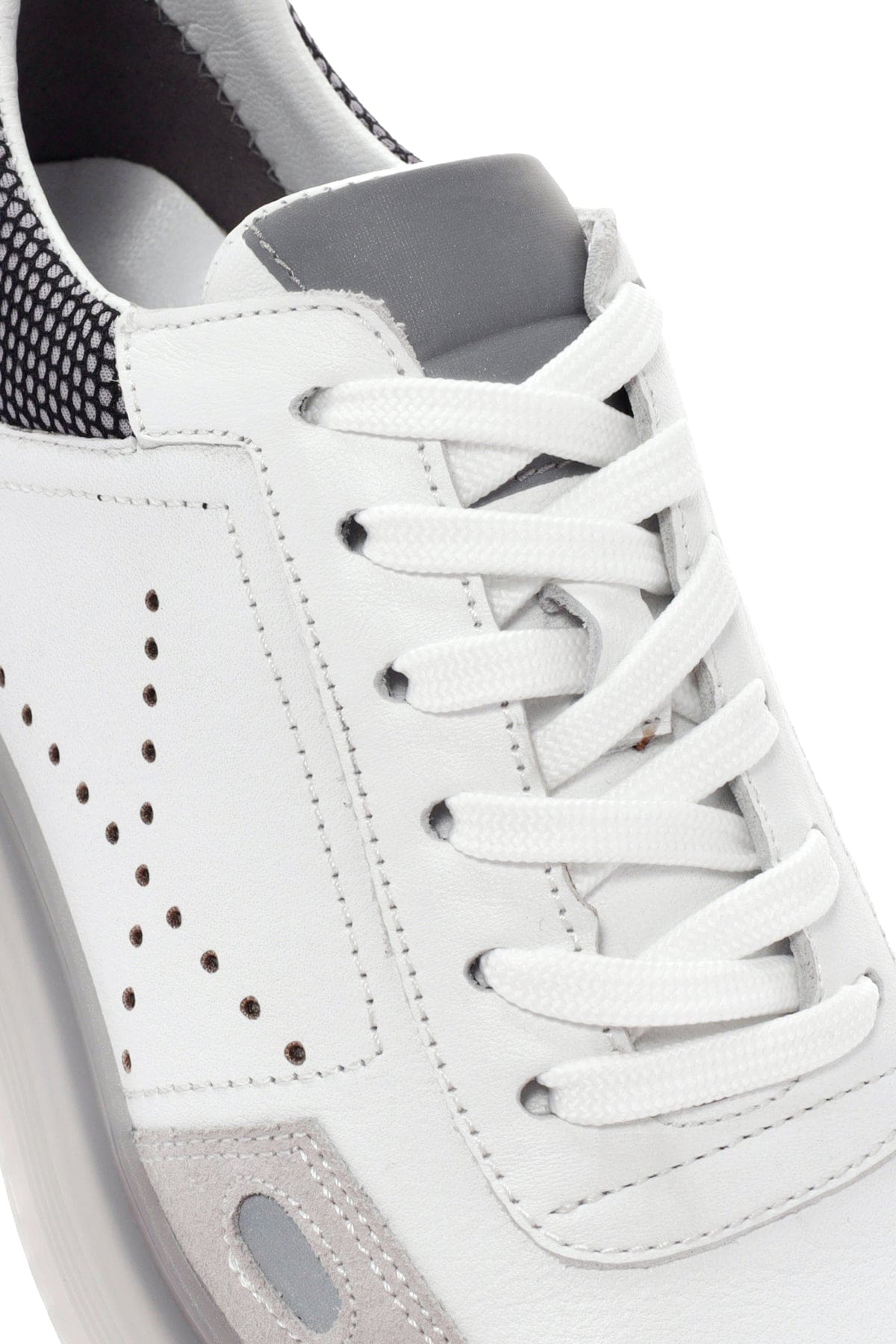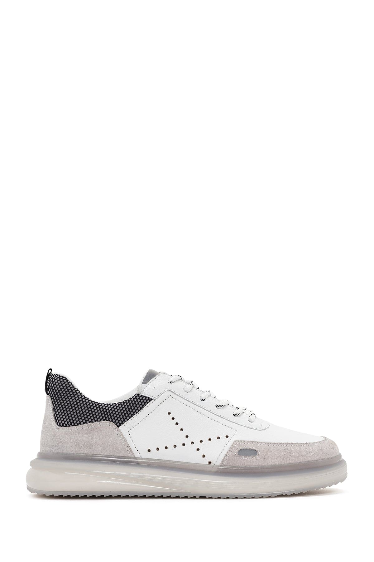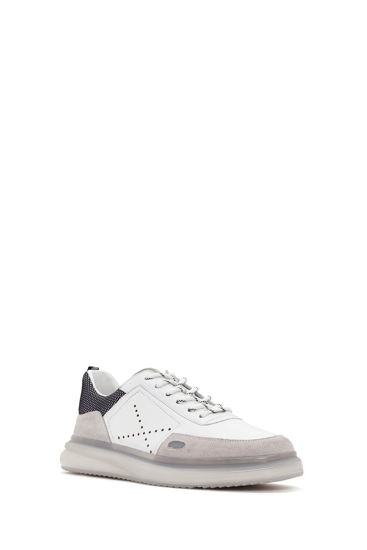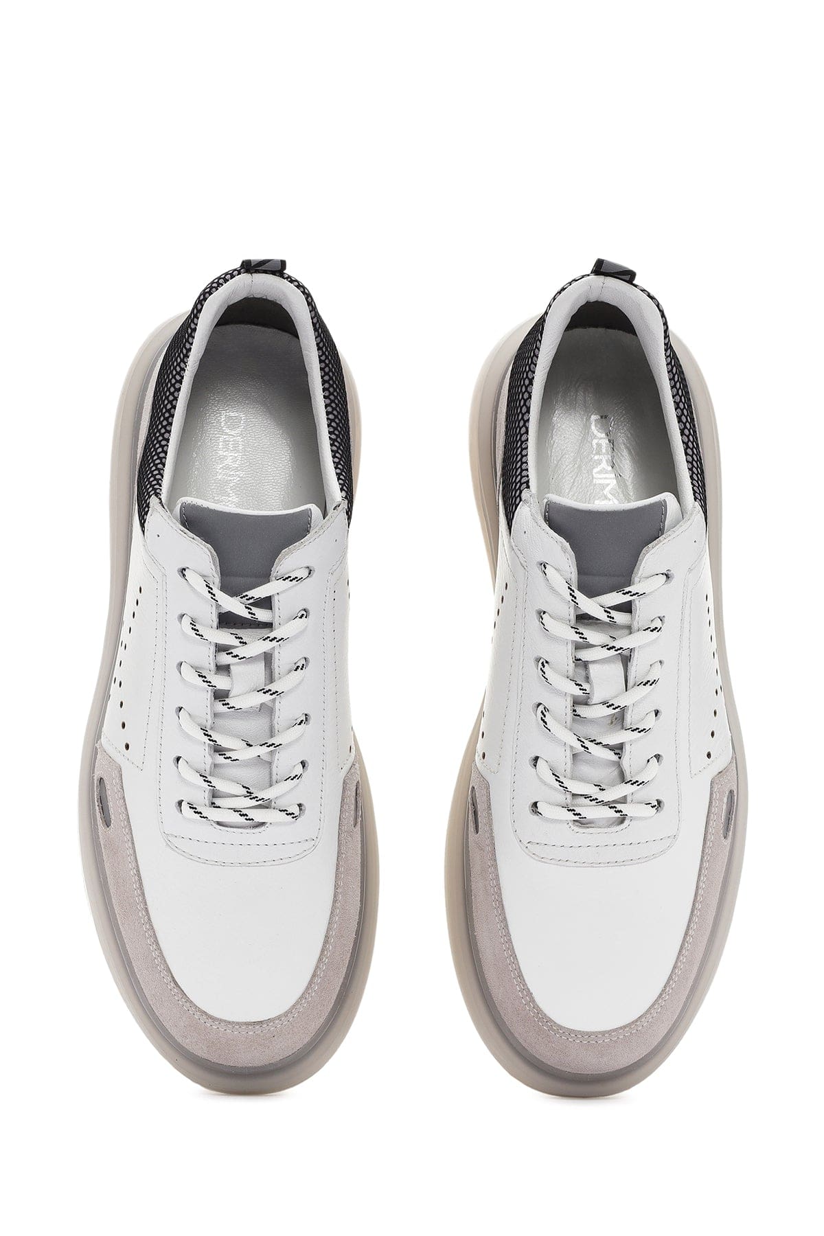 Erkek Beyaz Bağcıklı Deri Sneaker