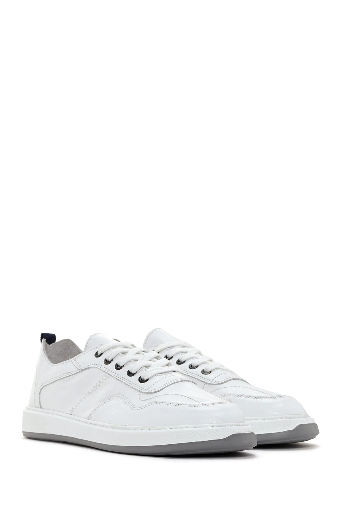 Erkek Beyaz Bağcıklı Deri Sneaker