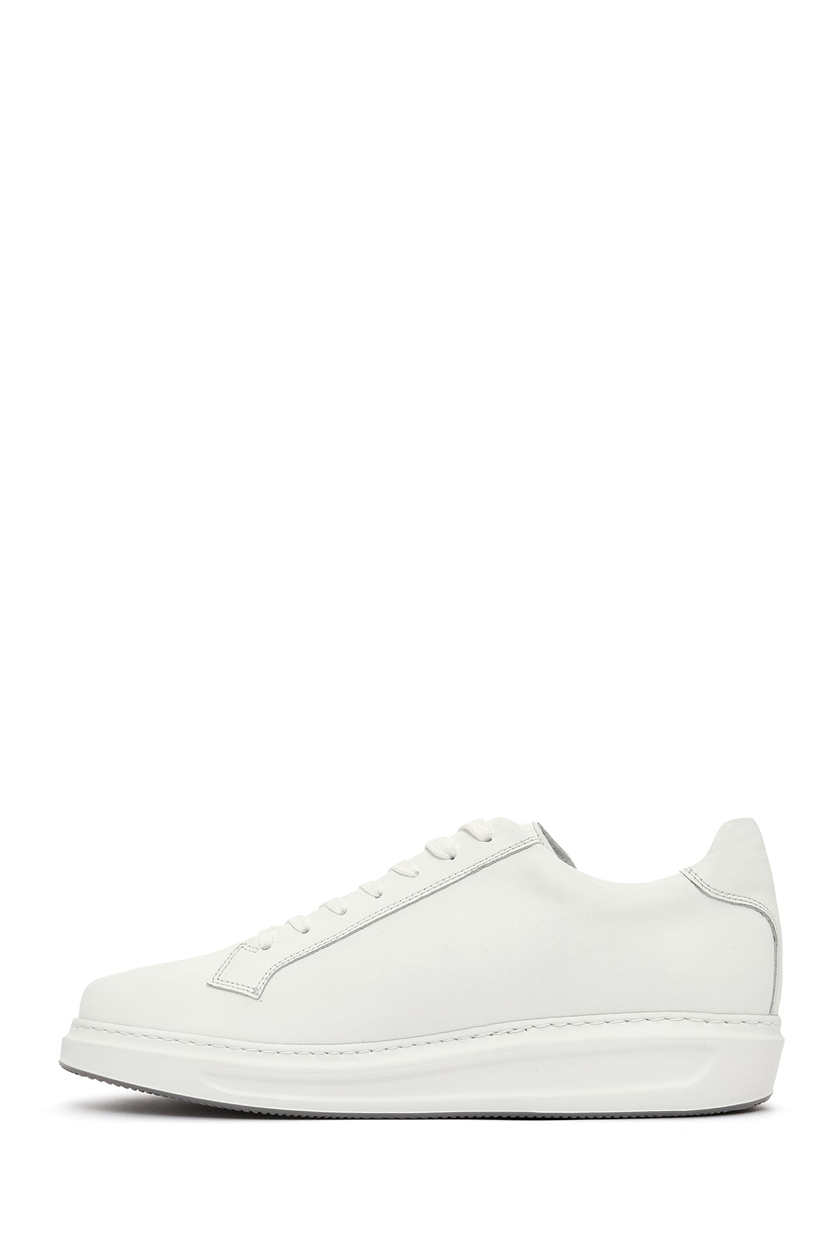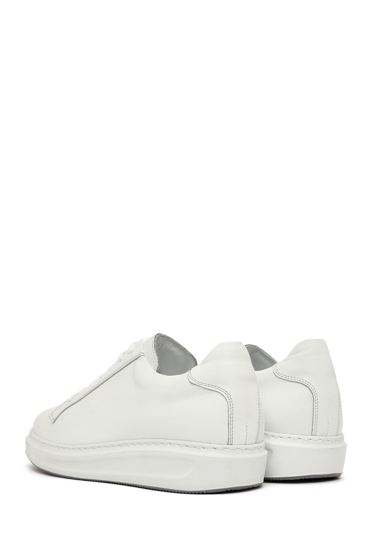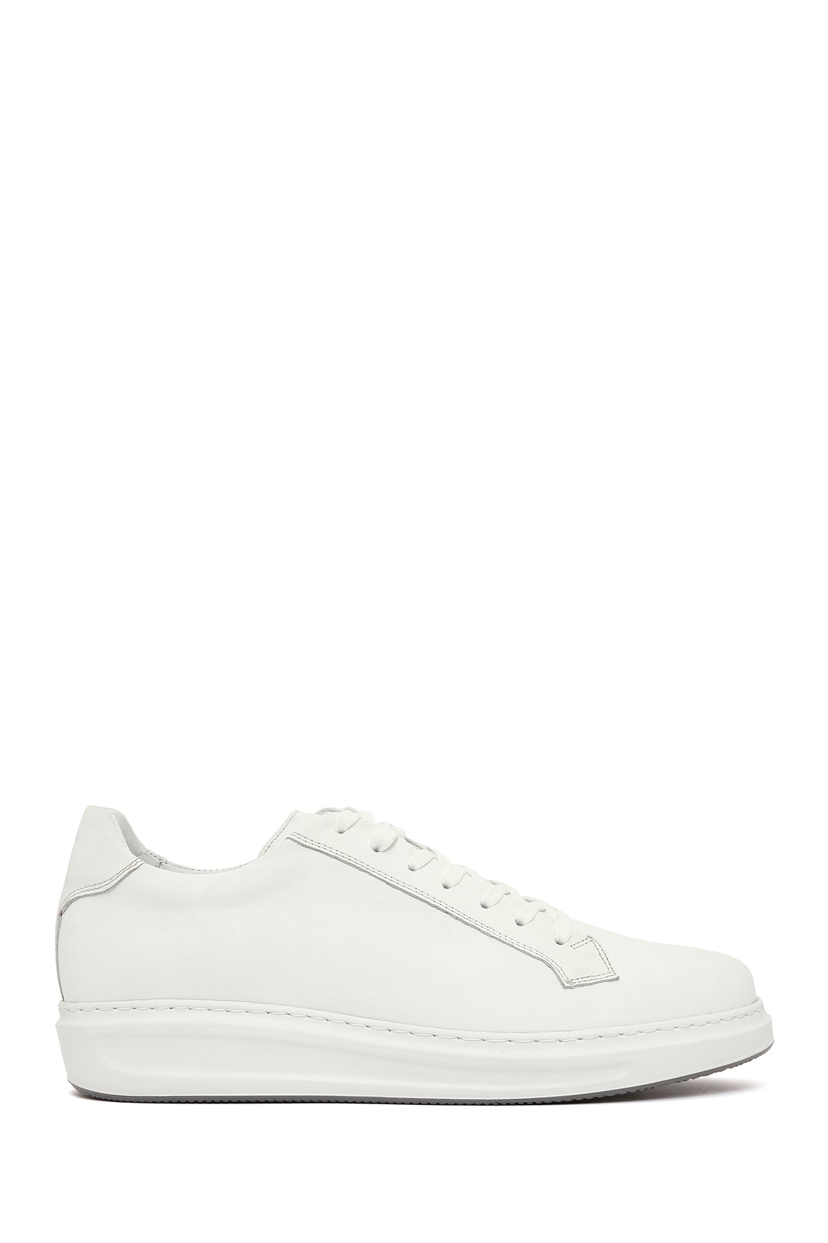Erkek Beyaz Bağcıklı Deri Sneaker