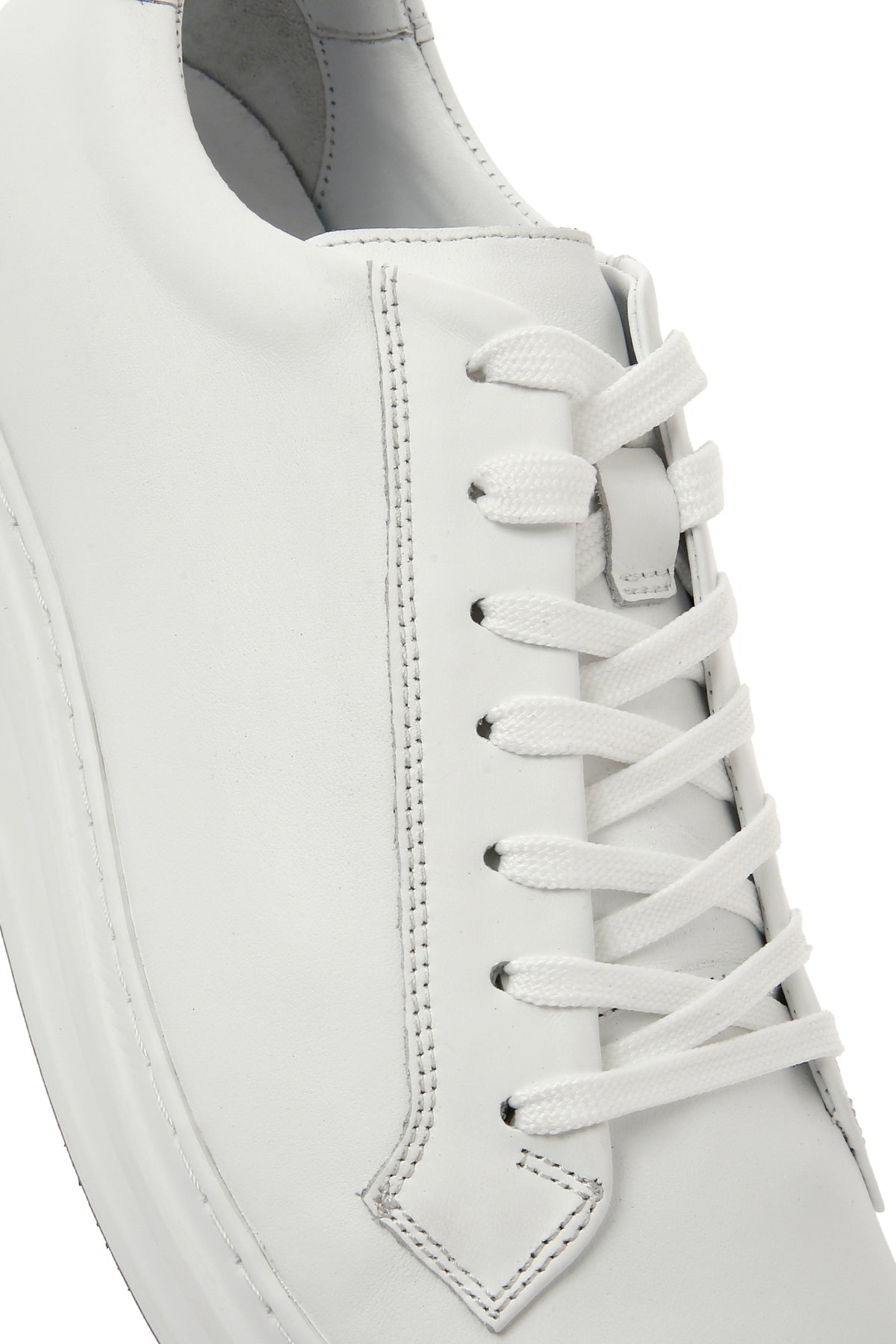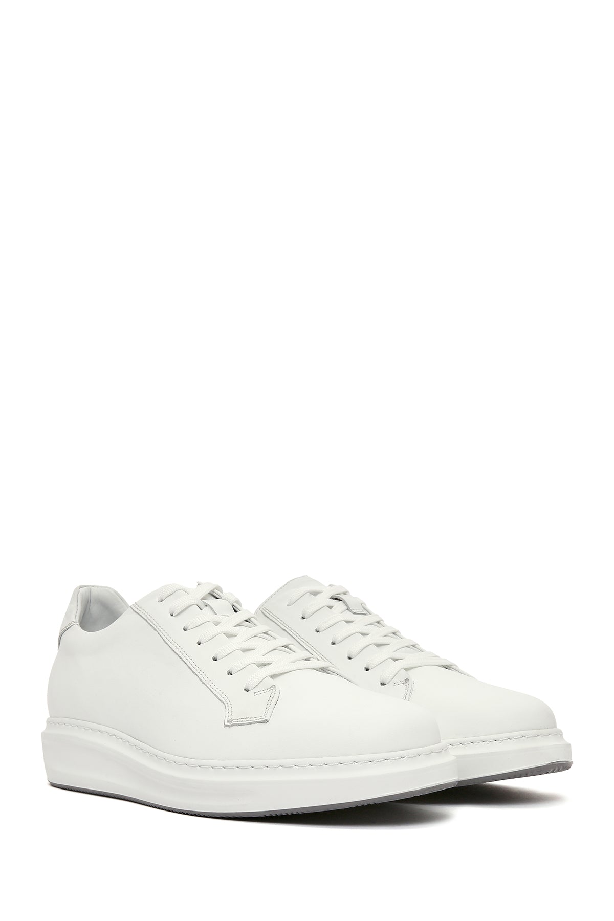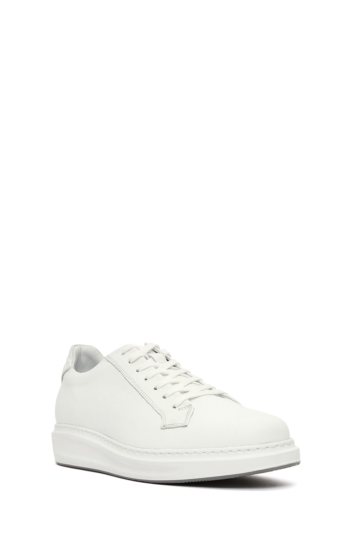 Erkek Beyaz Bağcıklı Deri Sneaker