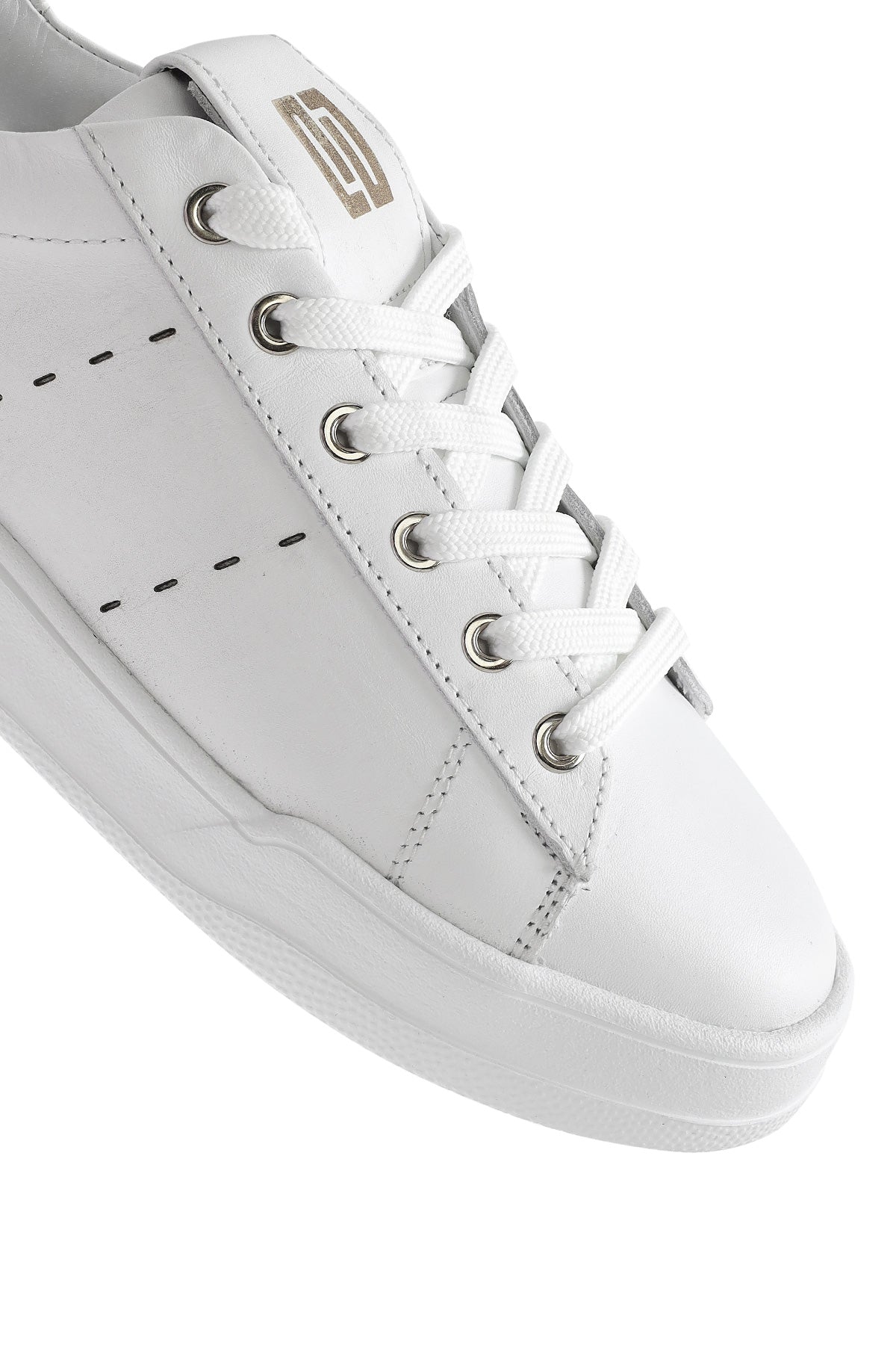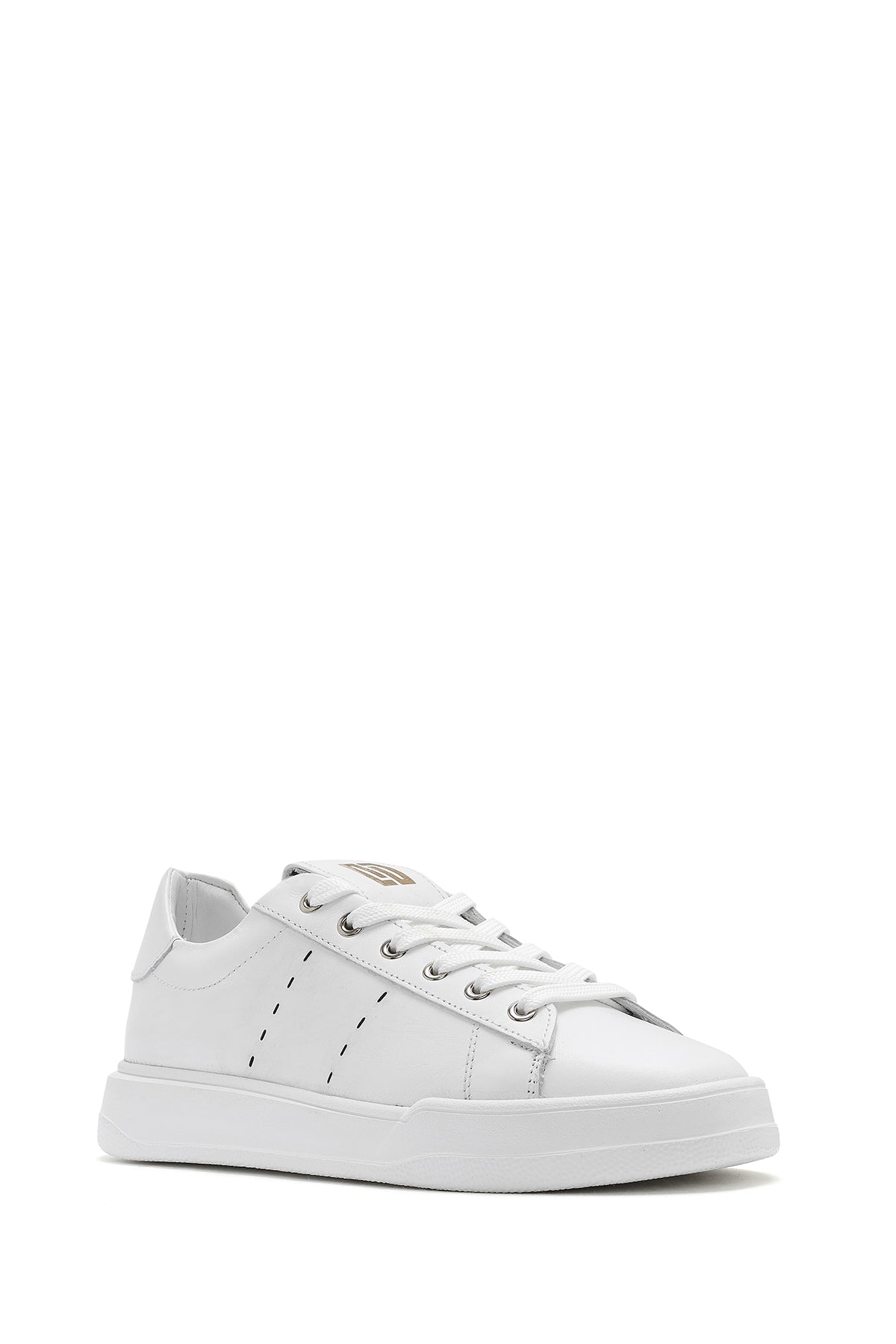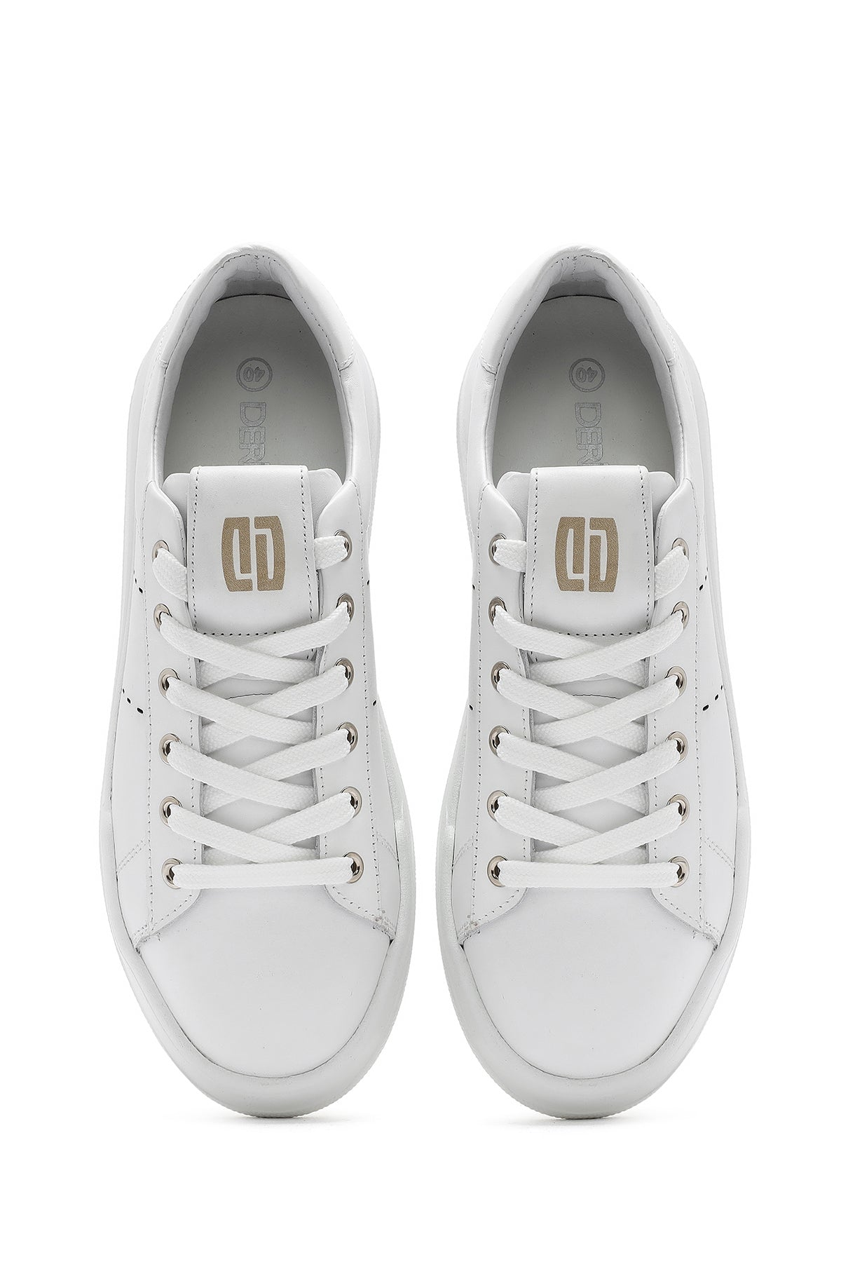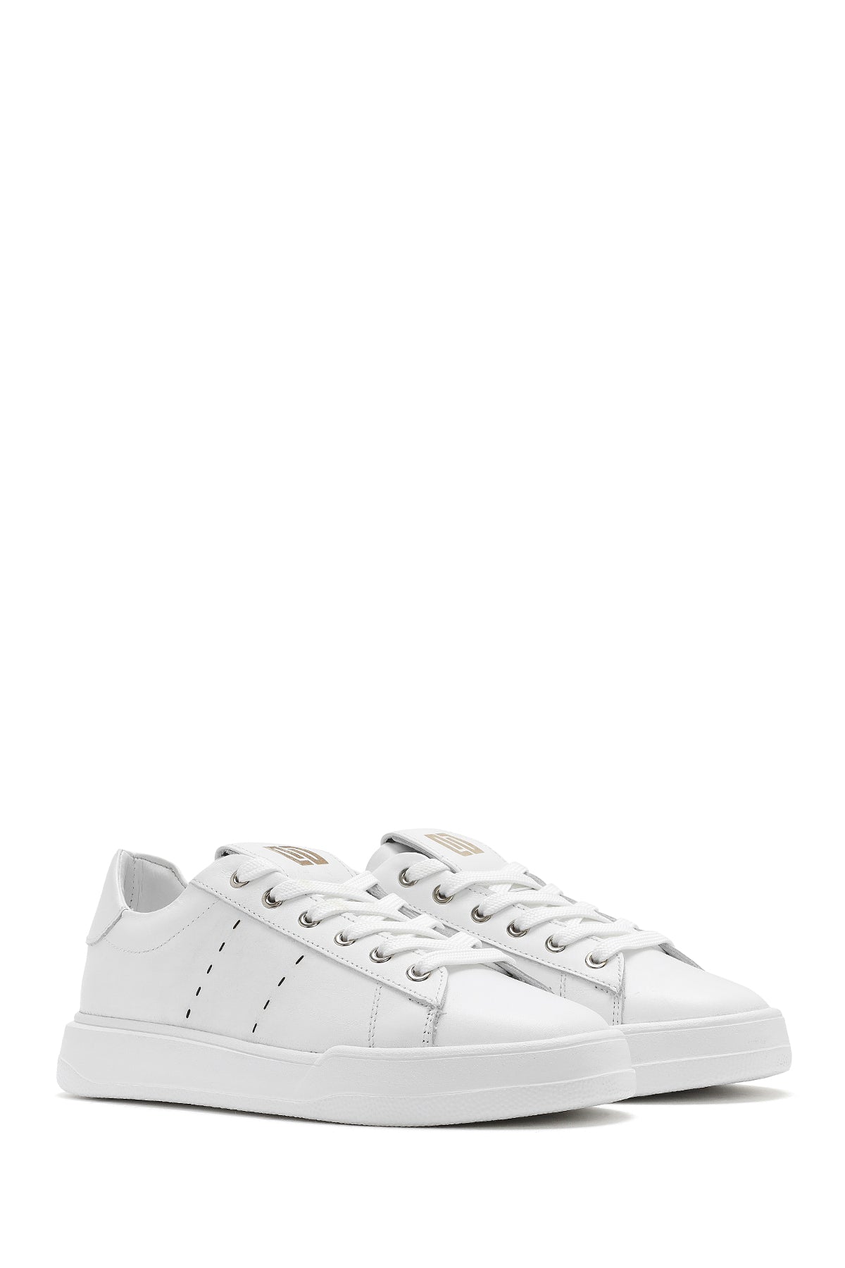 Erkek Beyaz Bağcıklı Deri Sneaker