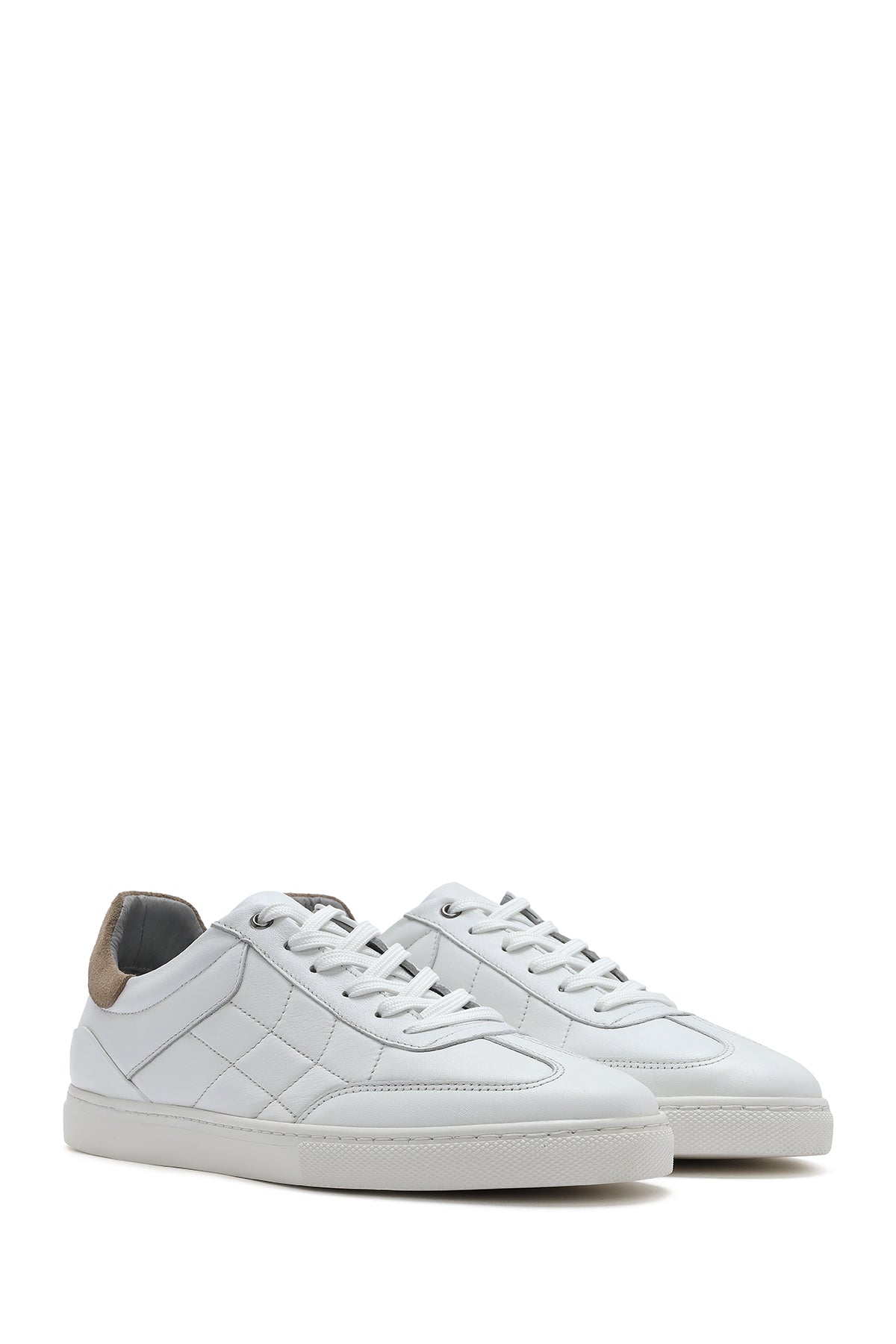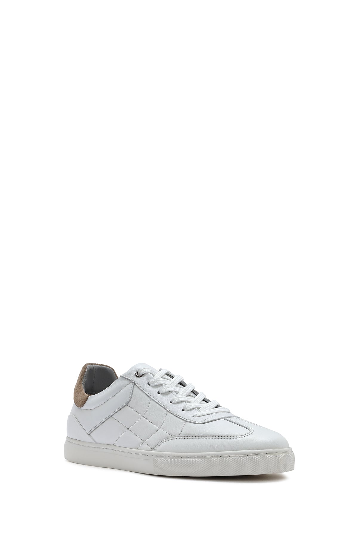 Erkek Beyaz Bağcıklı Deri Sneaker