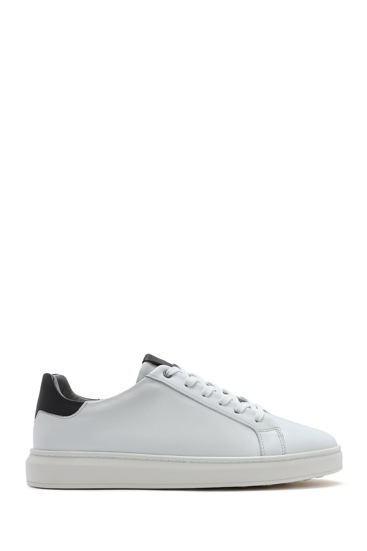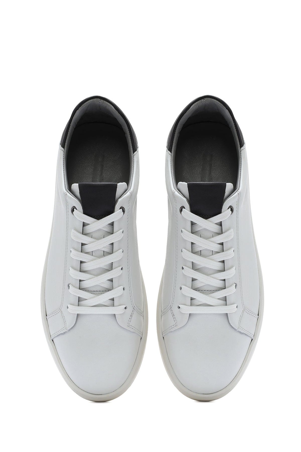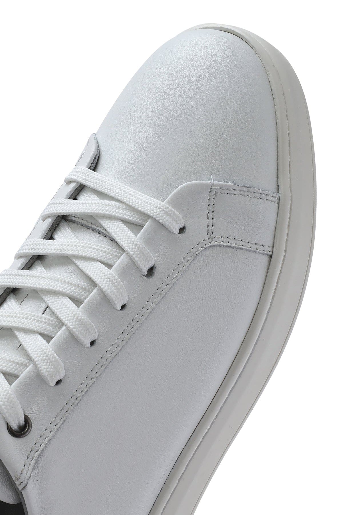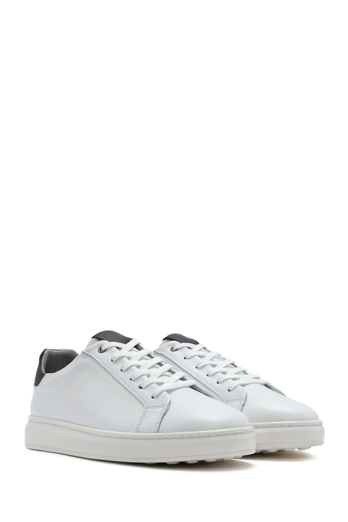 Erkek Beyaz Bağcıklı Deri Sneaker