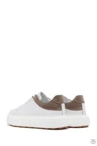 Erkek Beyaz Bağcıklı Kalın Tabanlı Deri Sneaker