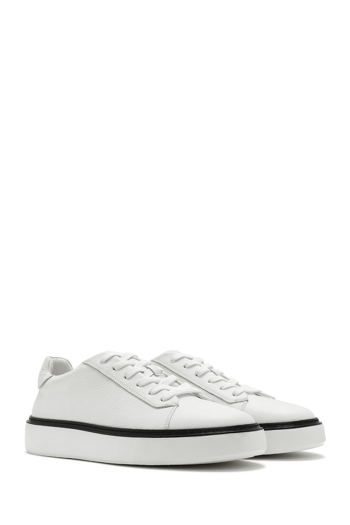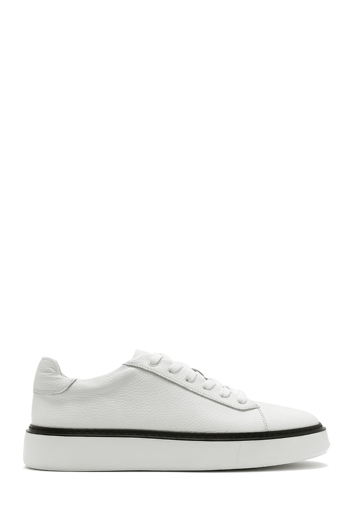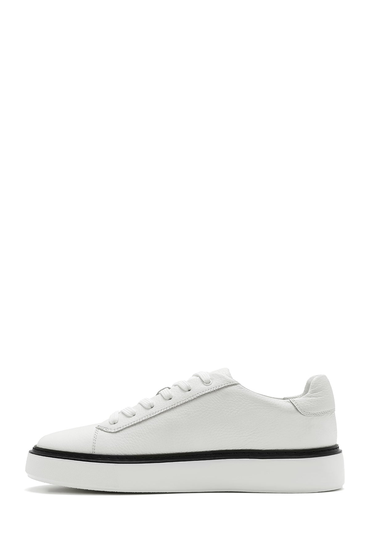 Erkek Beyaz Bağcıklı Kalın Tabanlı Deri Sneaker
