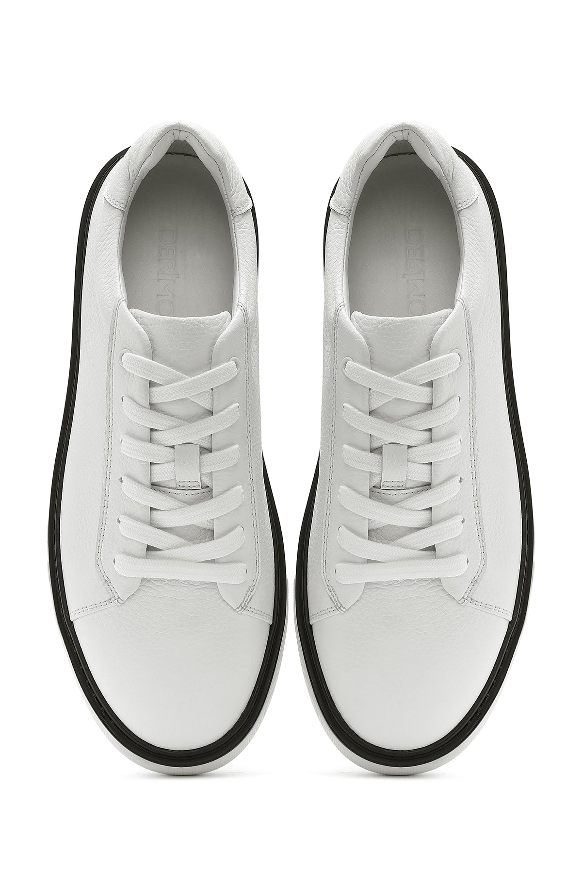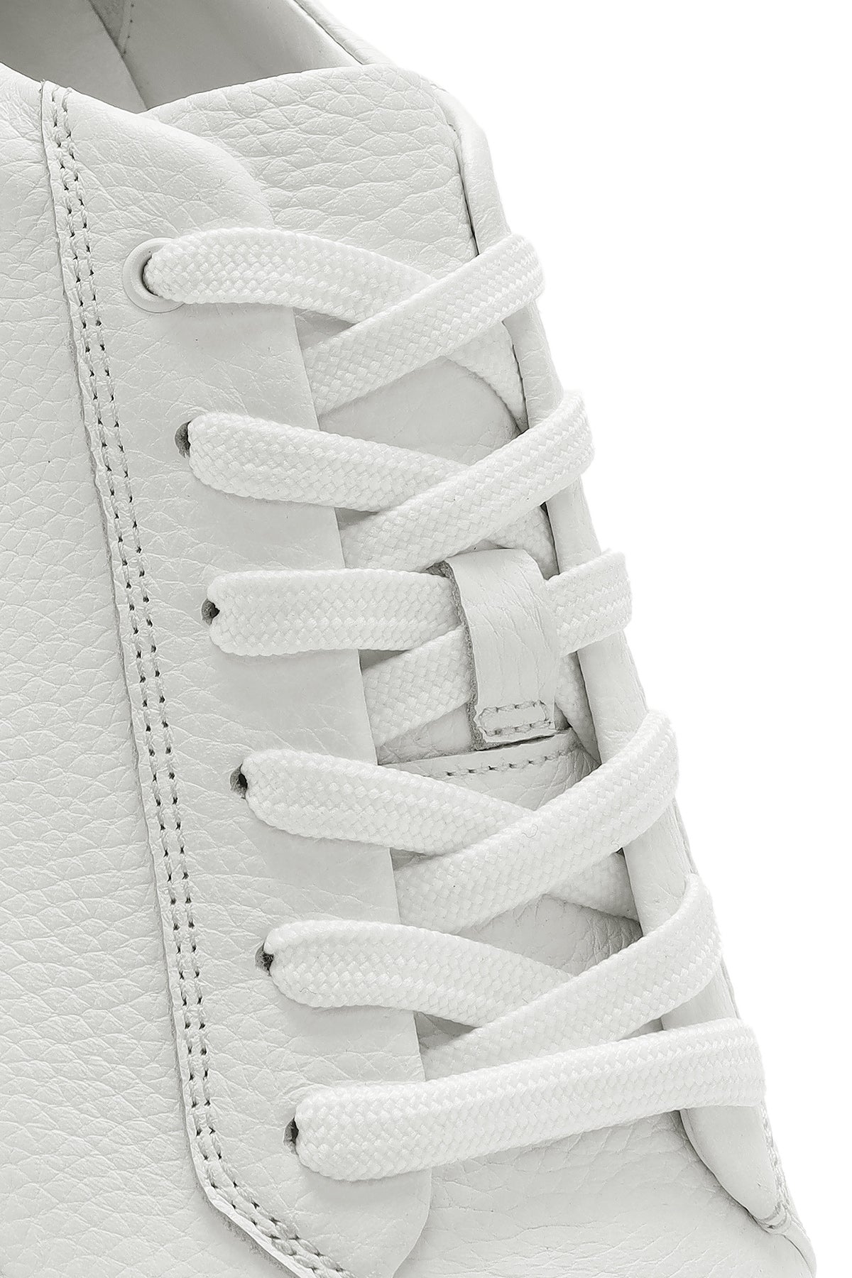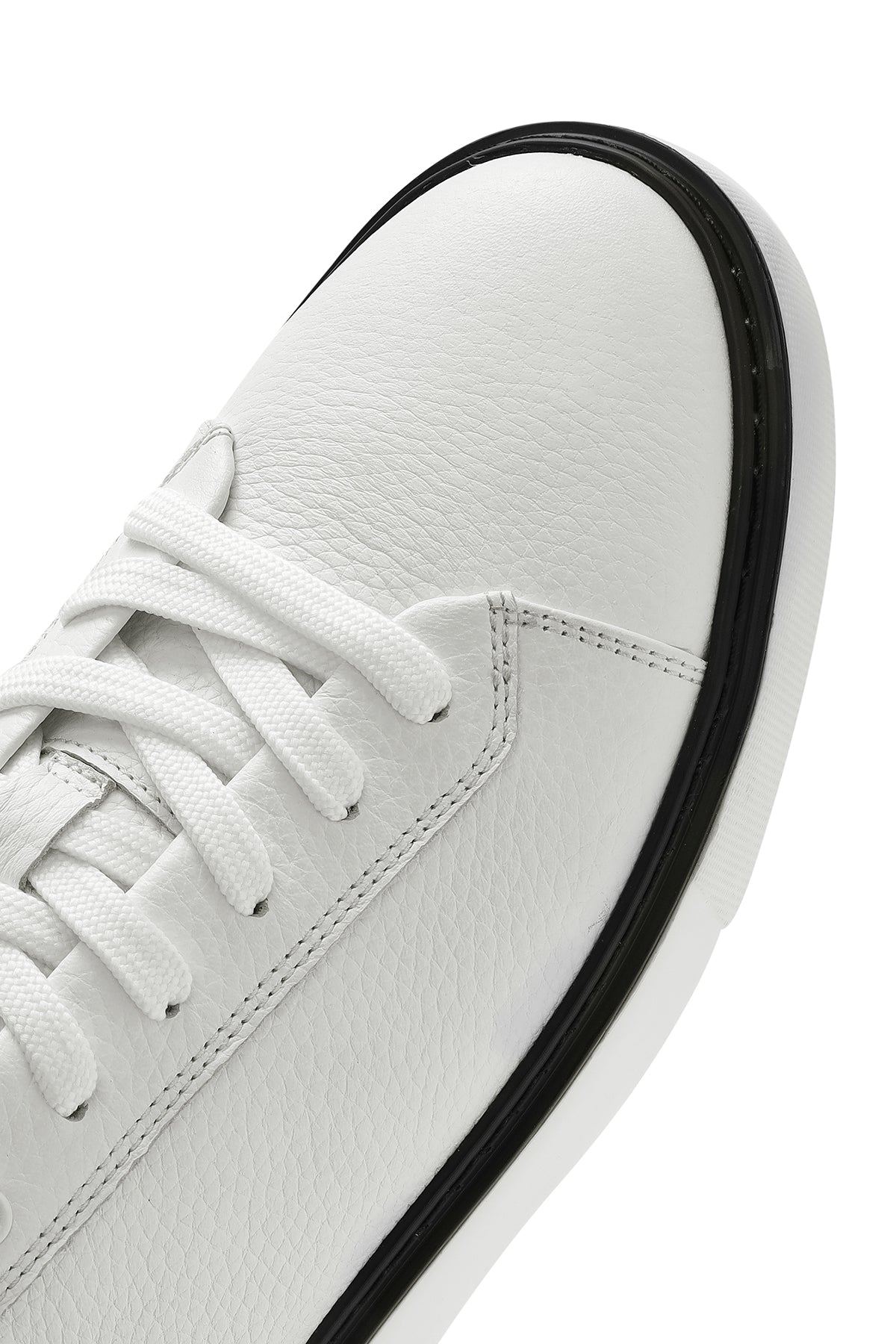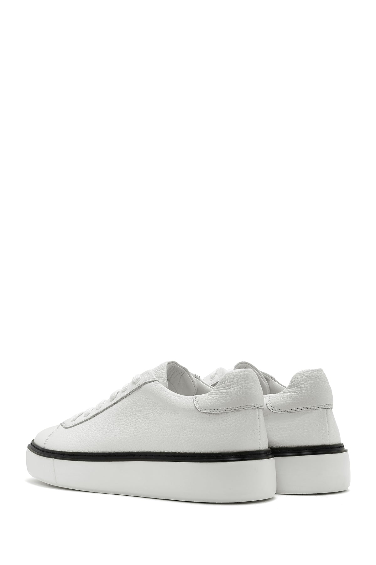 Erkek Beyaz Bağcıklı Kalın Tabanlı Deri Sneaker