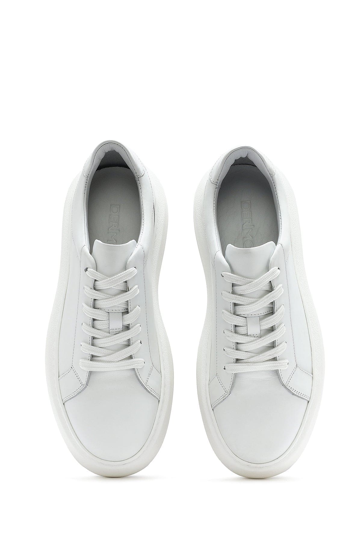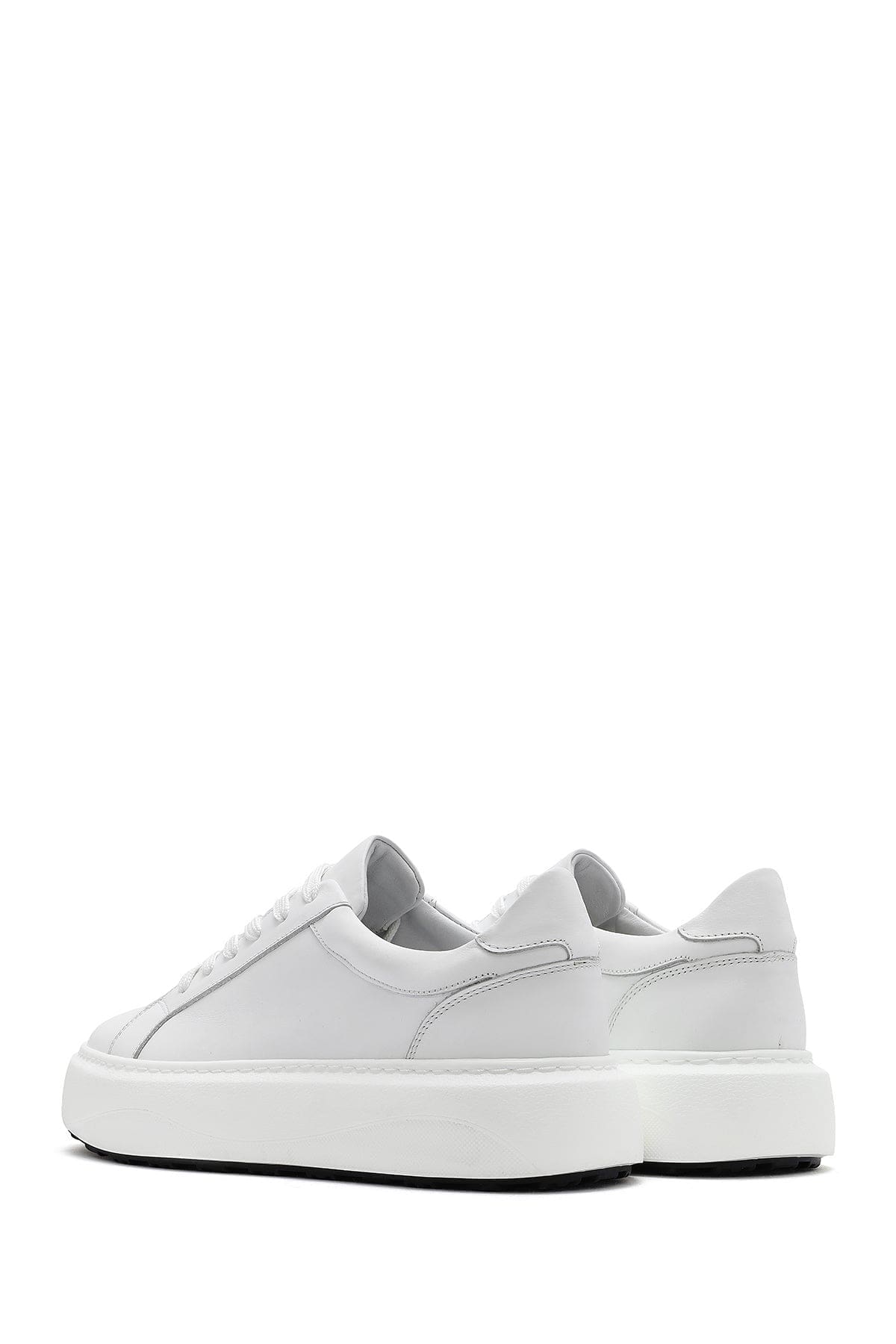 Erkek Beyaz Bağcıklı Kalın Tabanlı Deri Sneaker