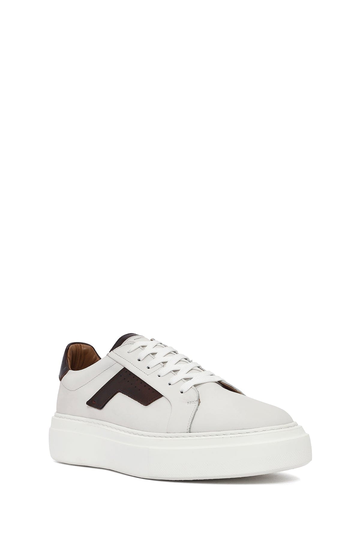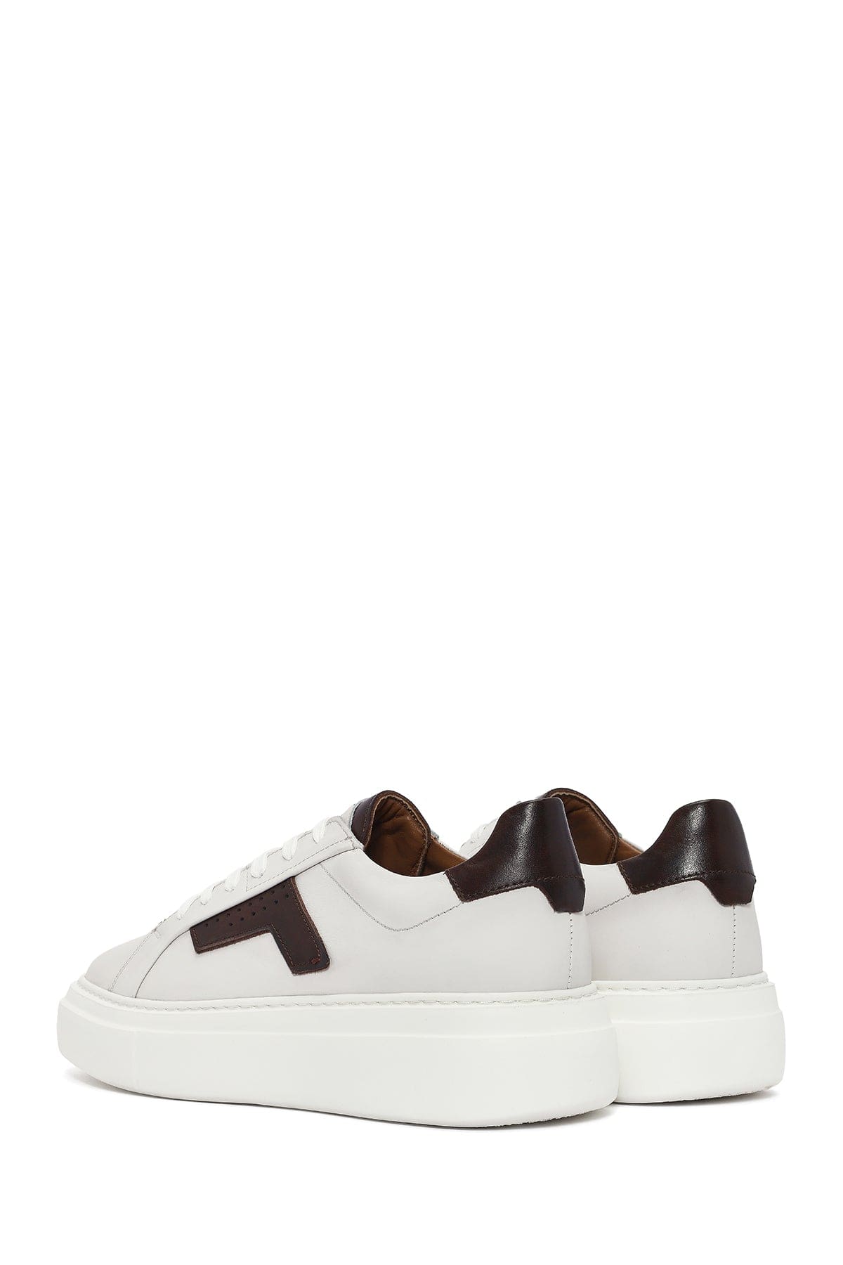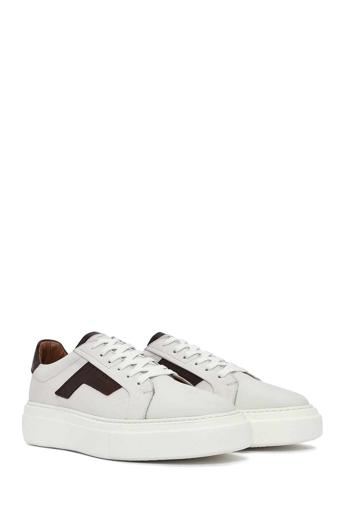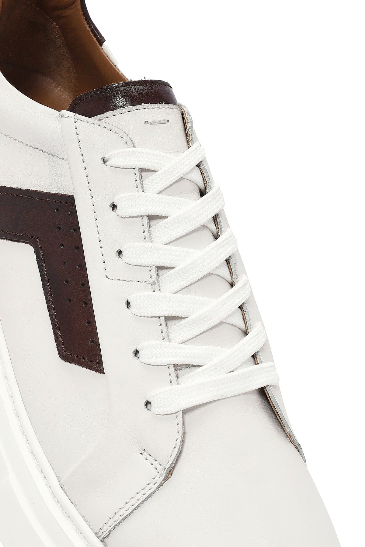 Erkek Beyaz Bağcıklı Kalın Tabanlı Deri Sneaker