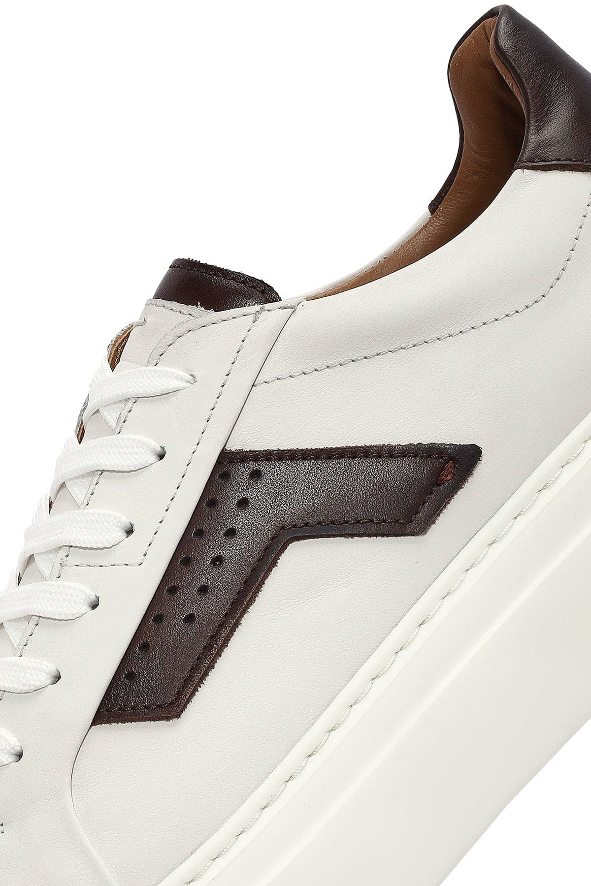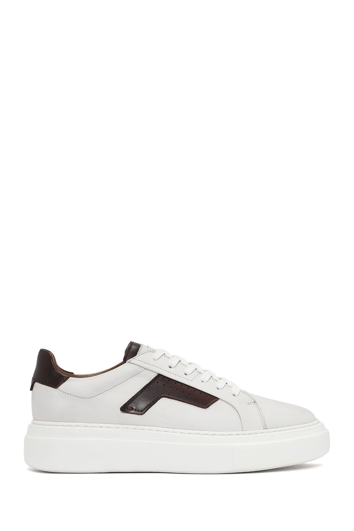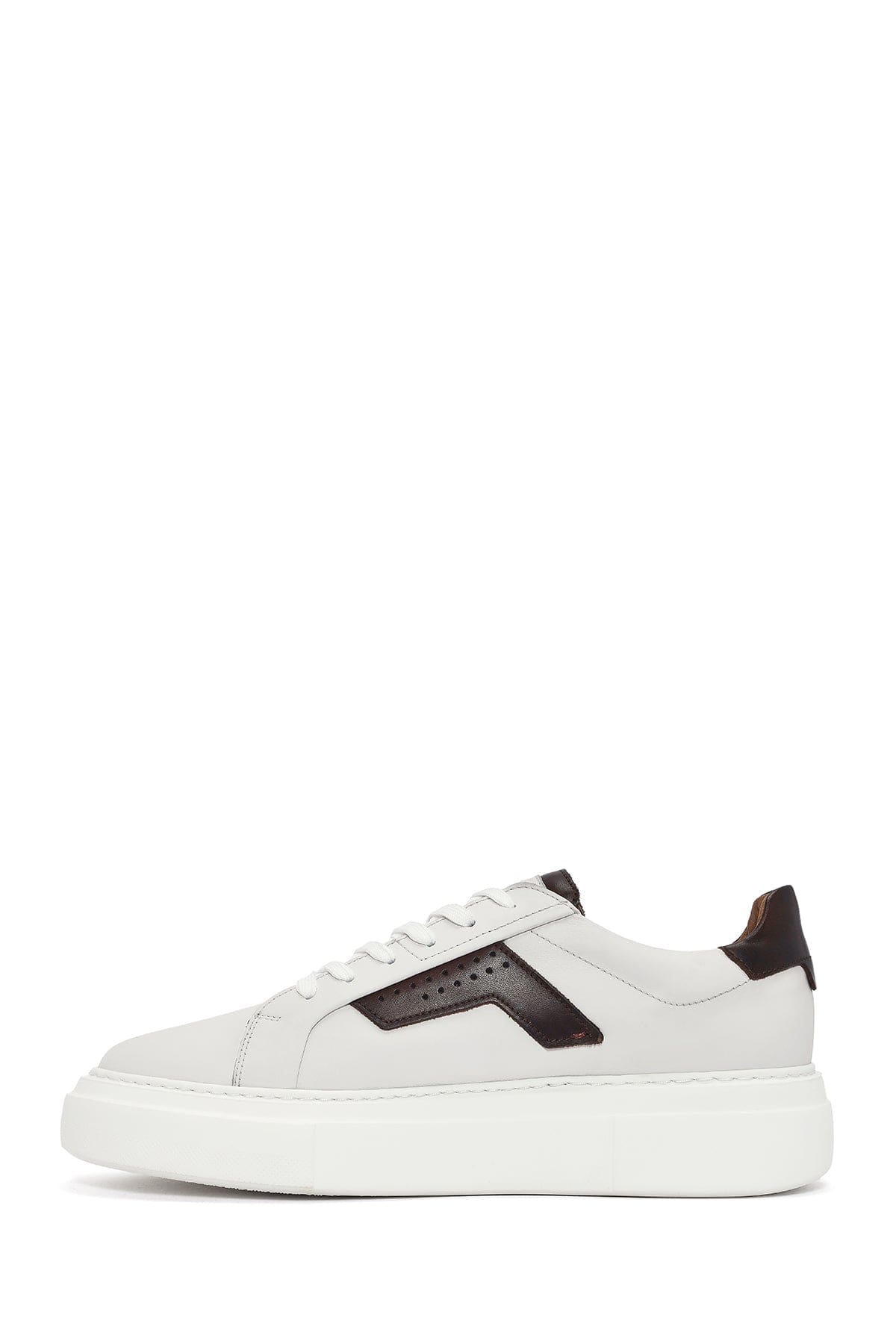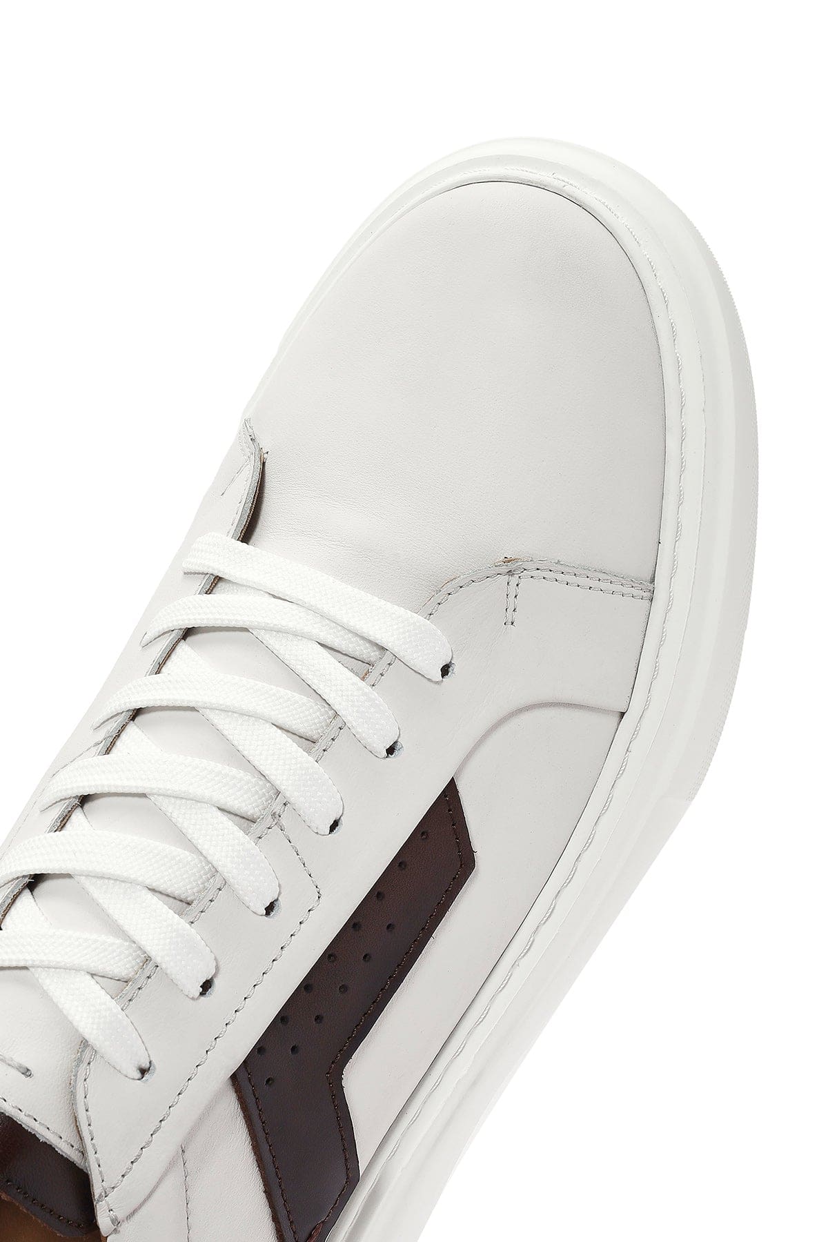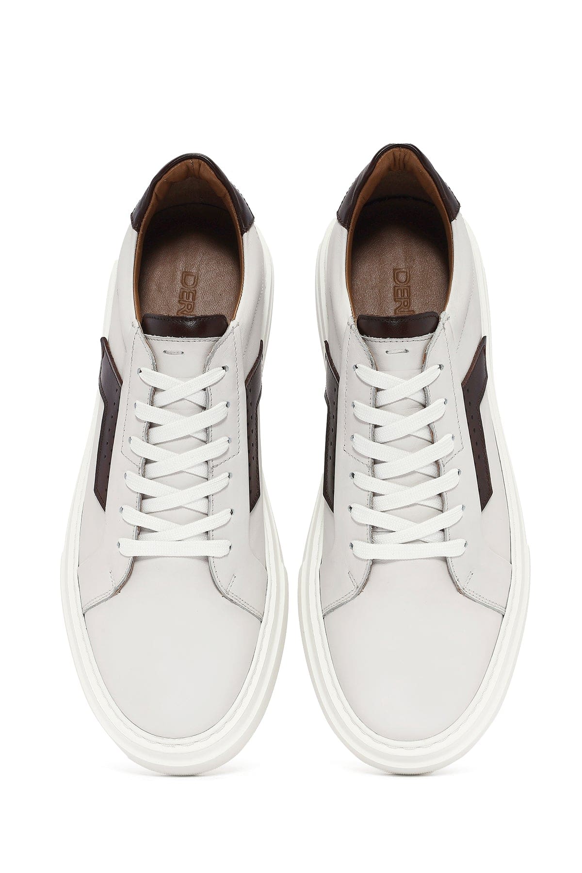Erkek Beyaz Bağcıklı Kalın Tabanlı Deri Sneaker