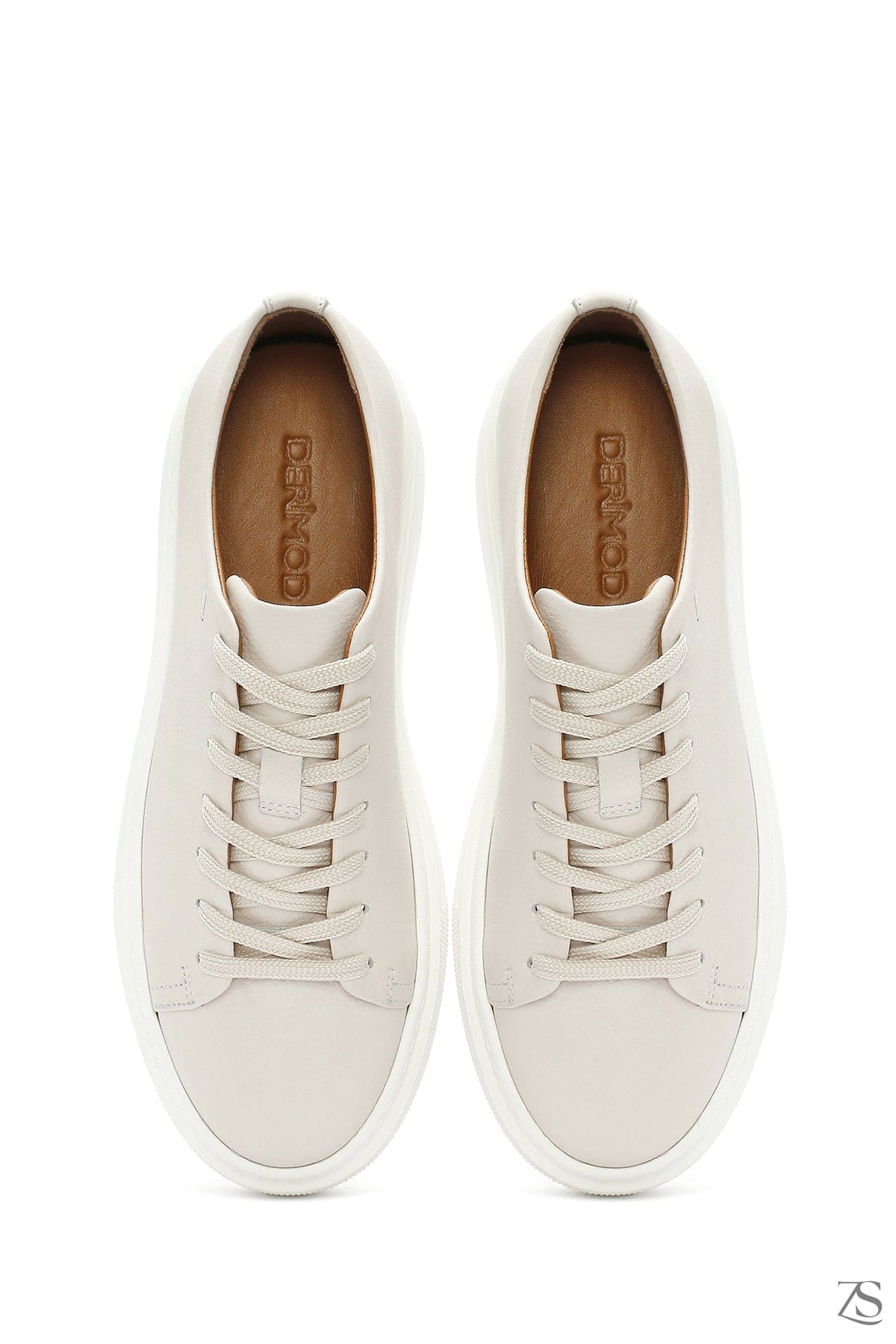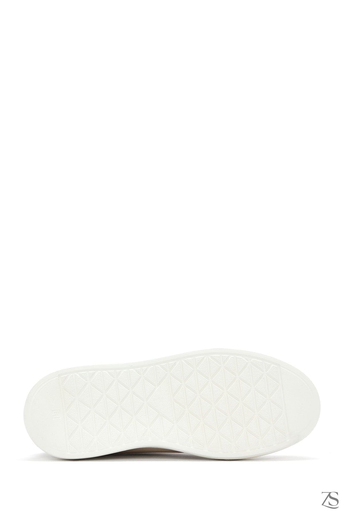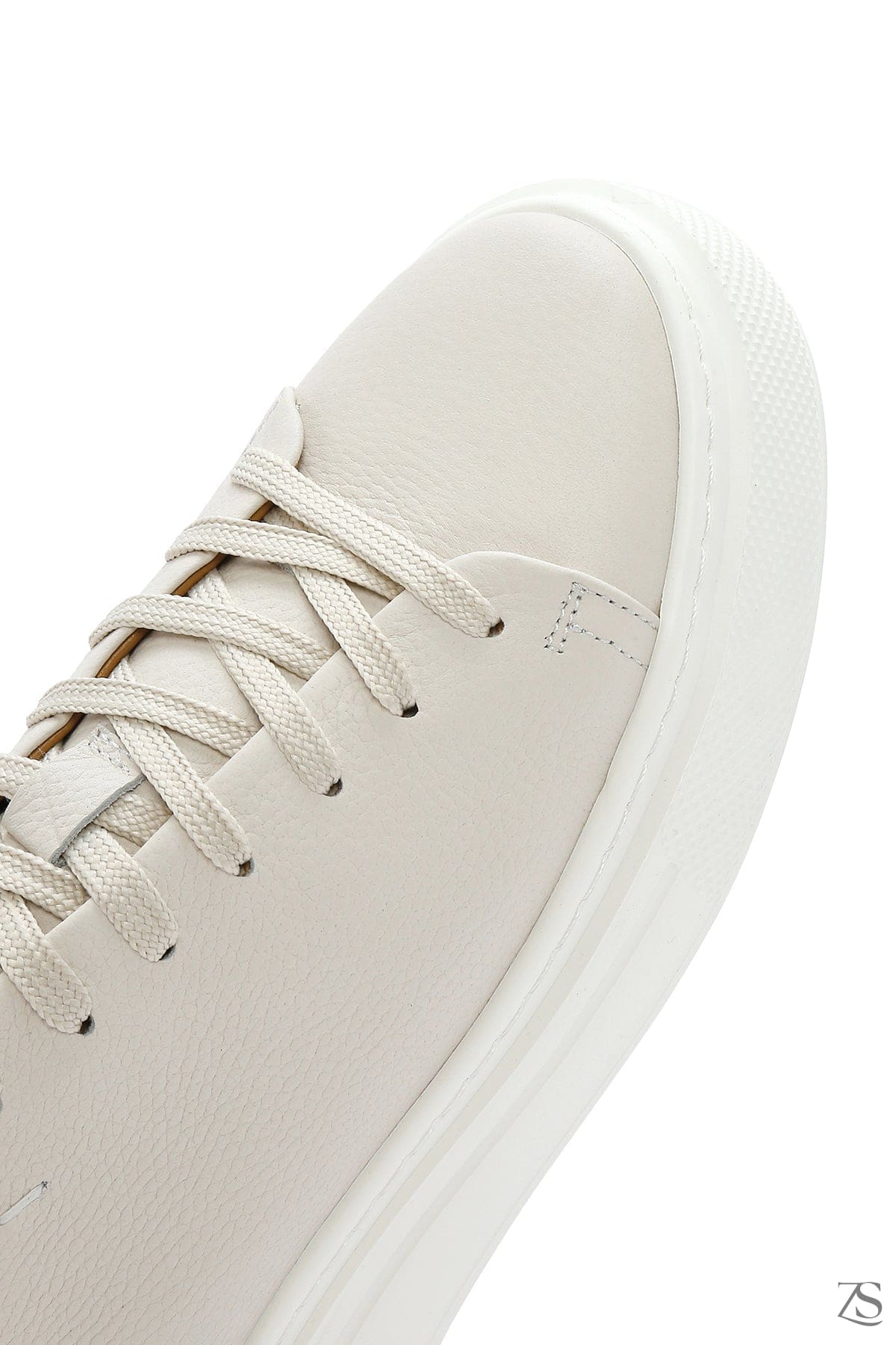 کتونی مردانه چرم سفید بنددار زیره ضخیم دری مد