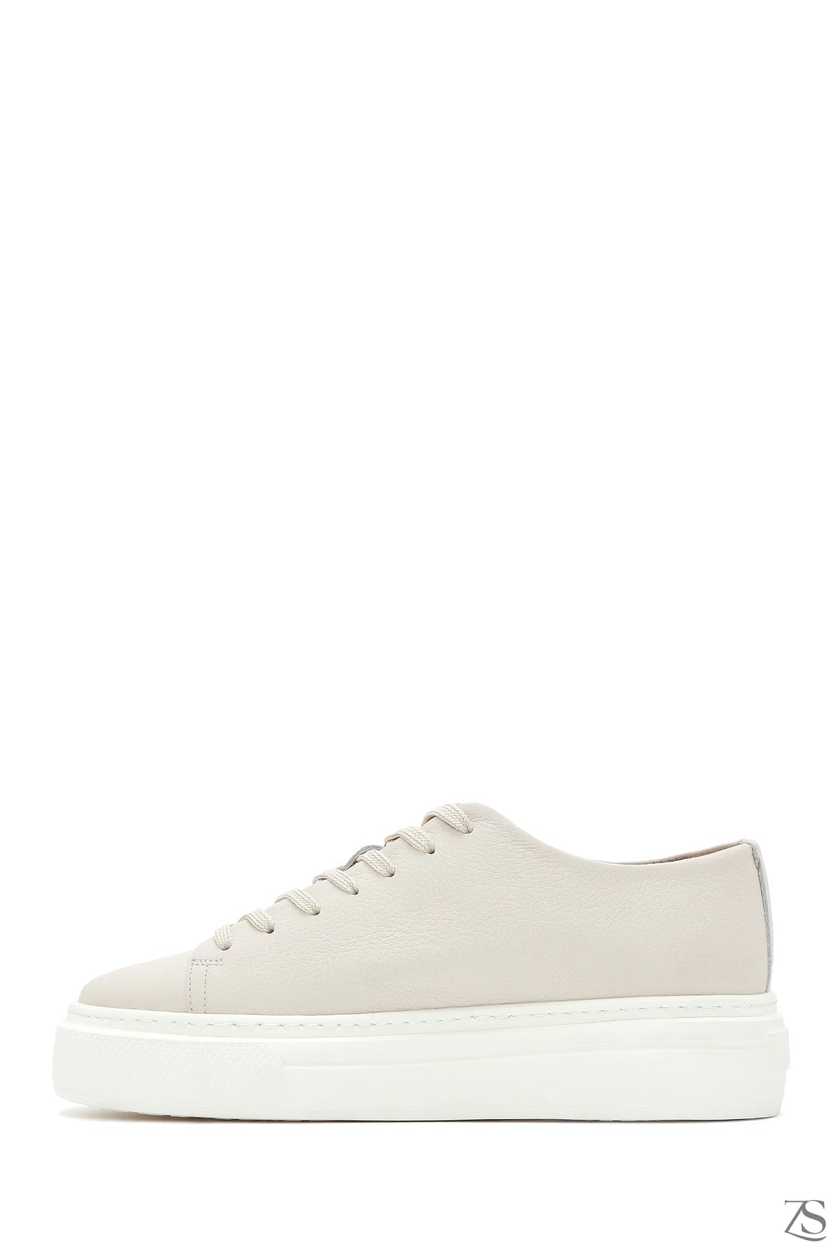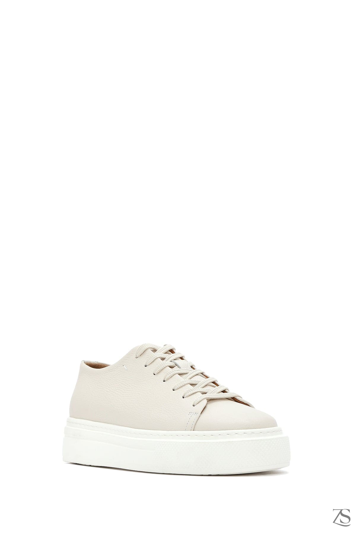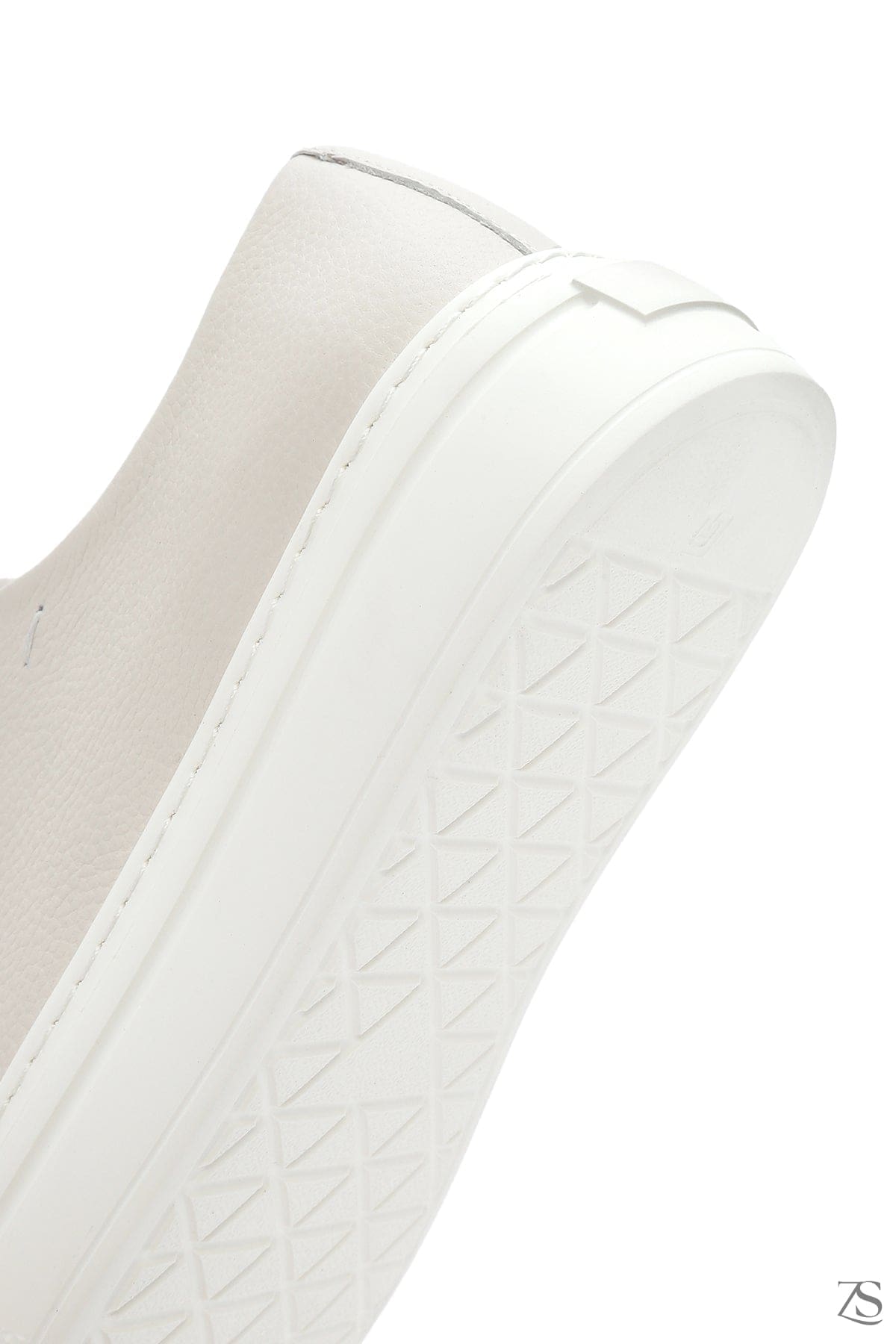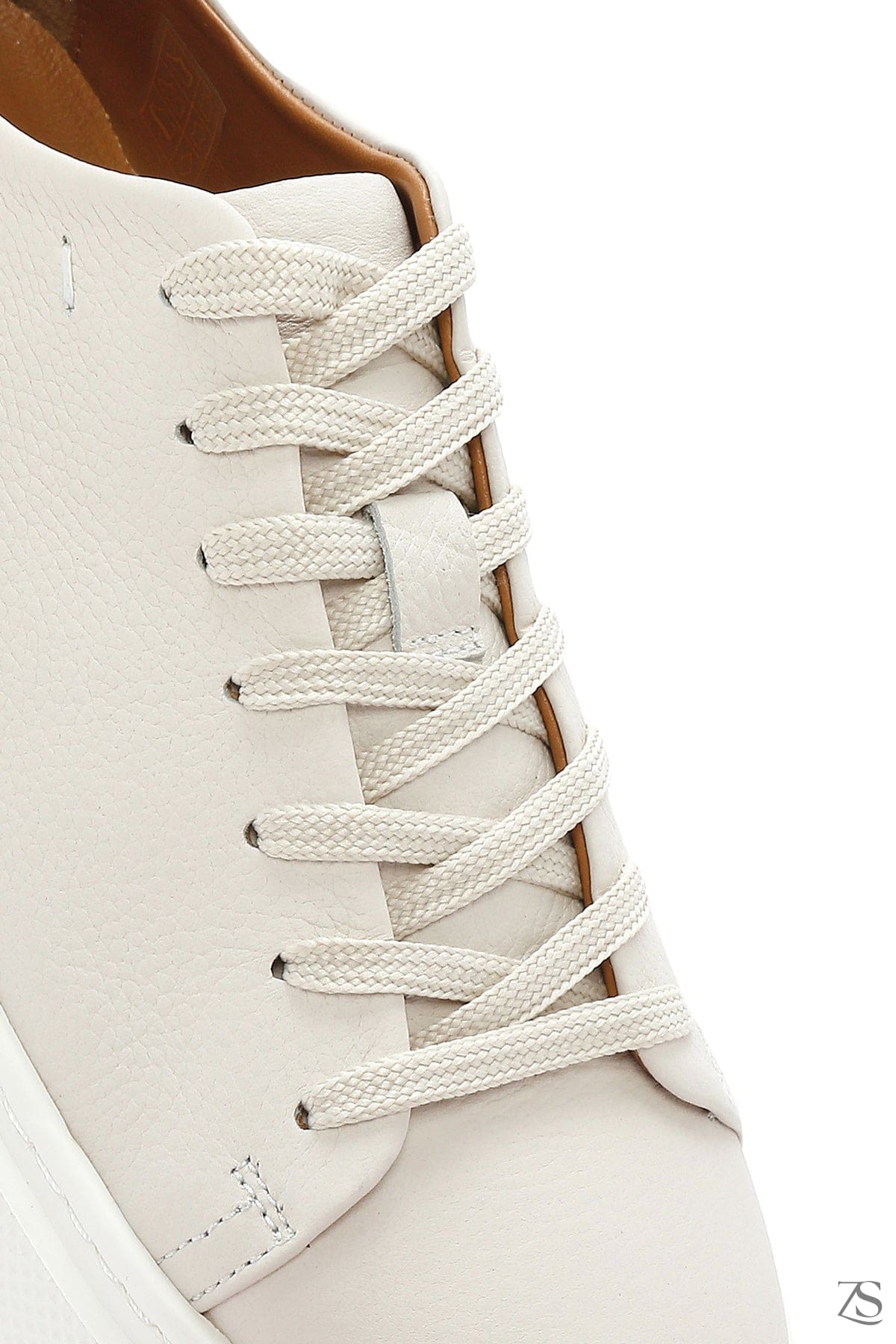 کتونی مردانه چرم سفید بنددار زیره ضخیم دری مد