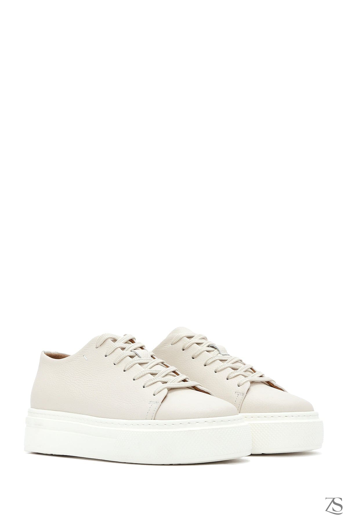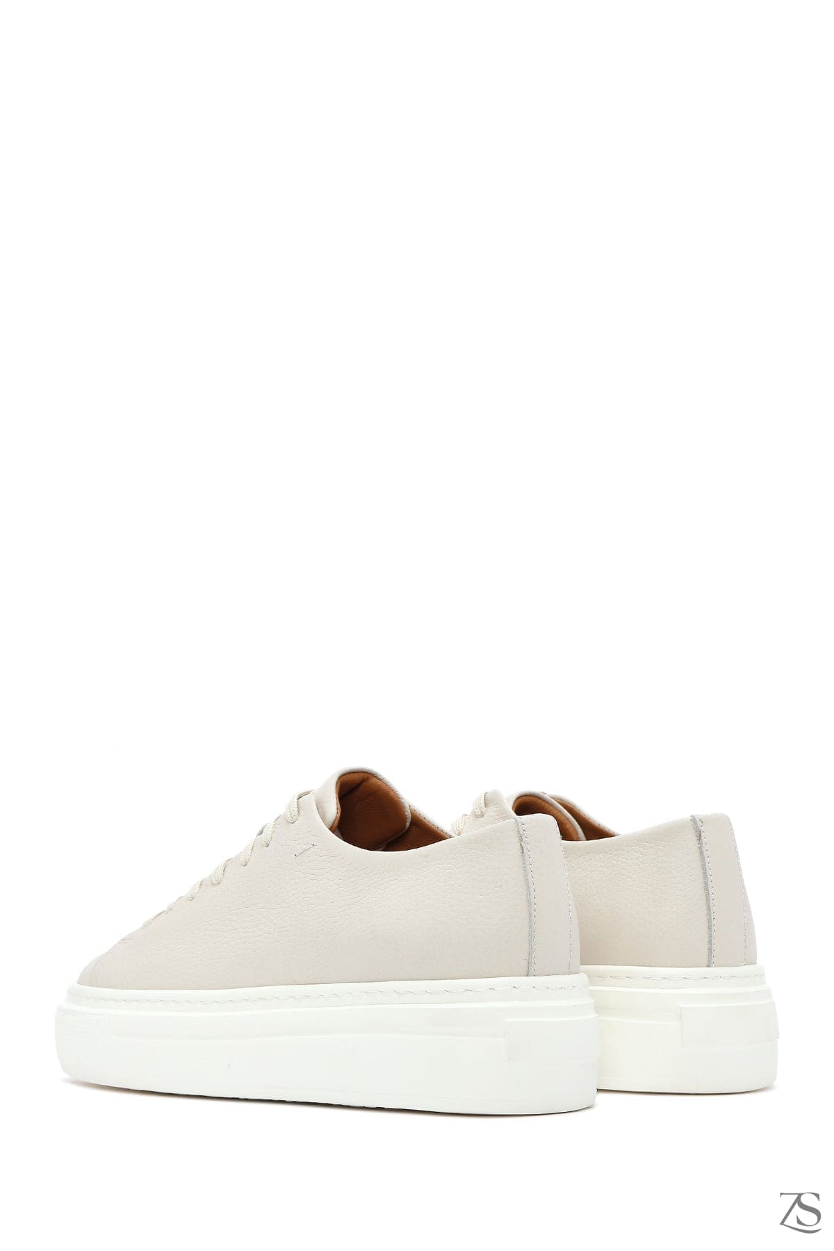 Erkek Beyaz Bağcıklı Kalın Tabanlı Deri Sneaker