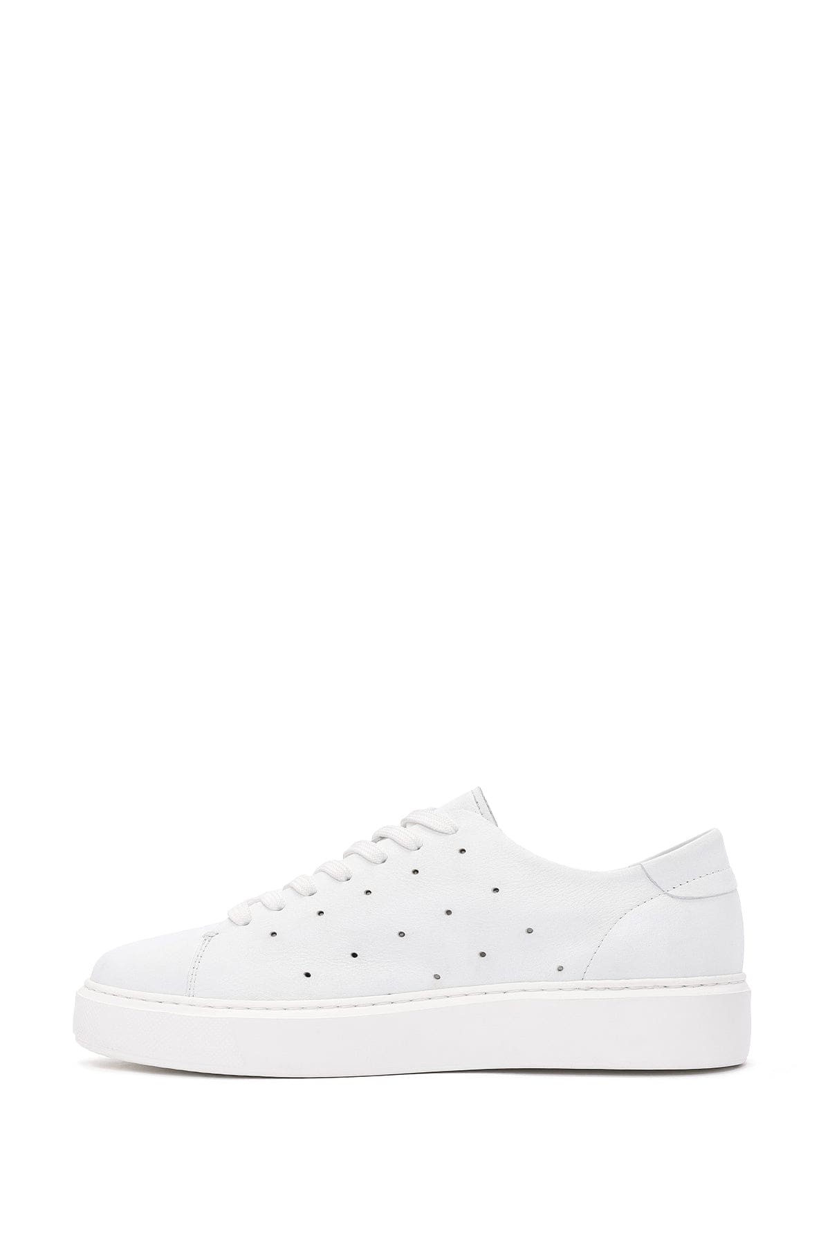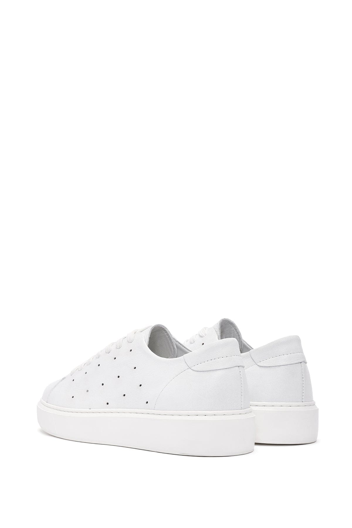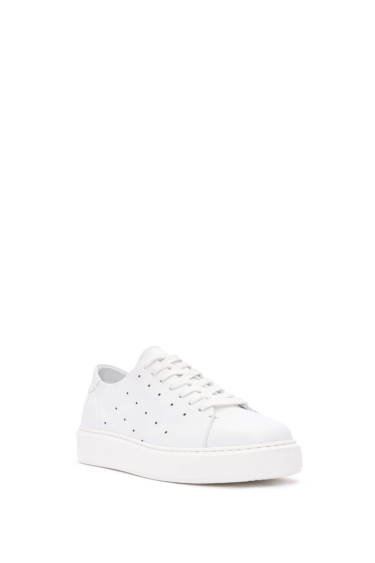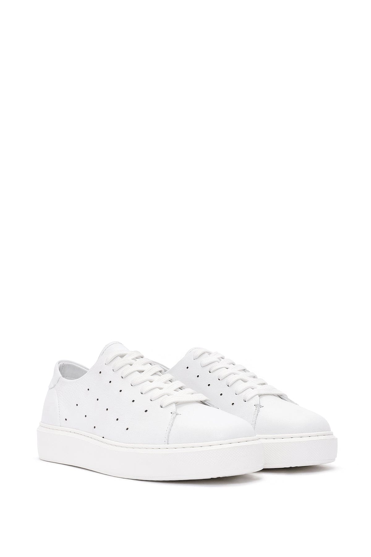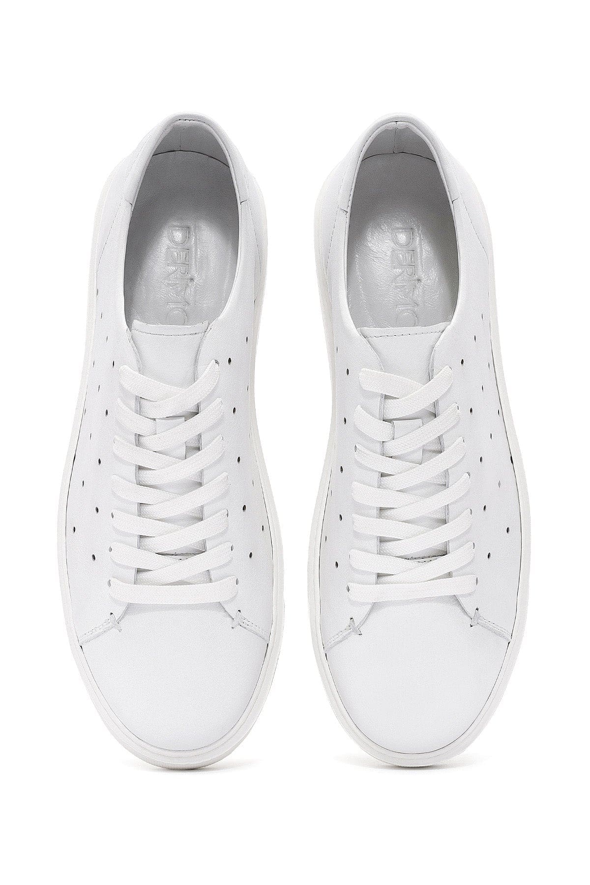 Erkek Beyaz Bağcıklı Kalın Tabanlı Deri Sneaker