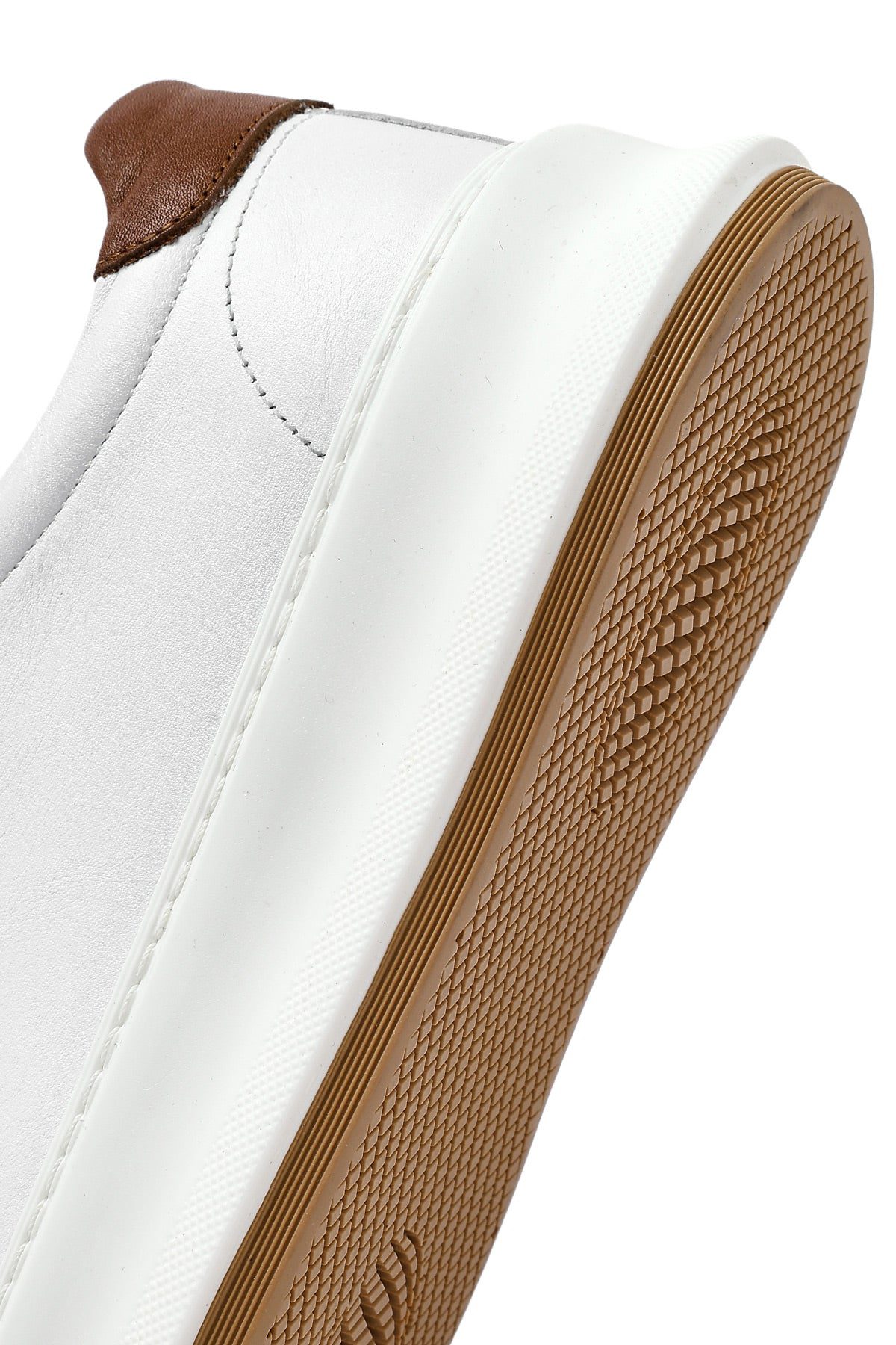 Erkek Beyaz Bağcıklı Kalın Tabanlı Deri Sneaker