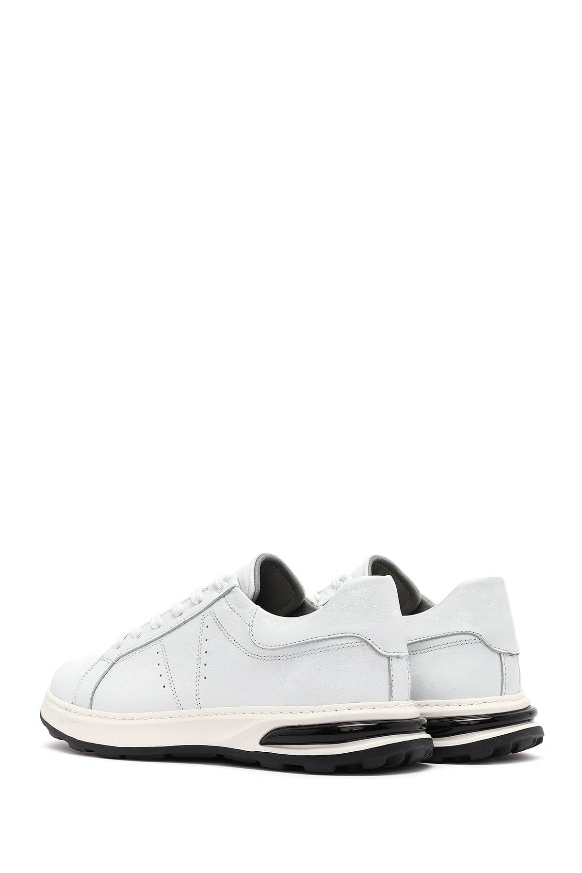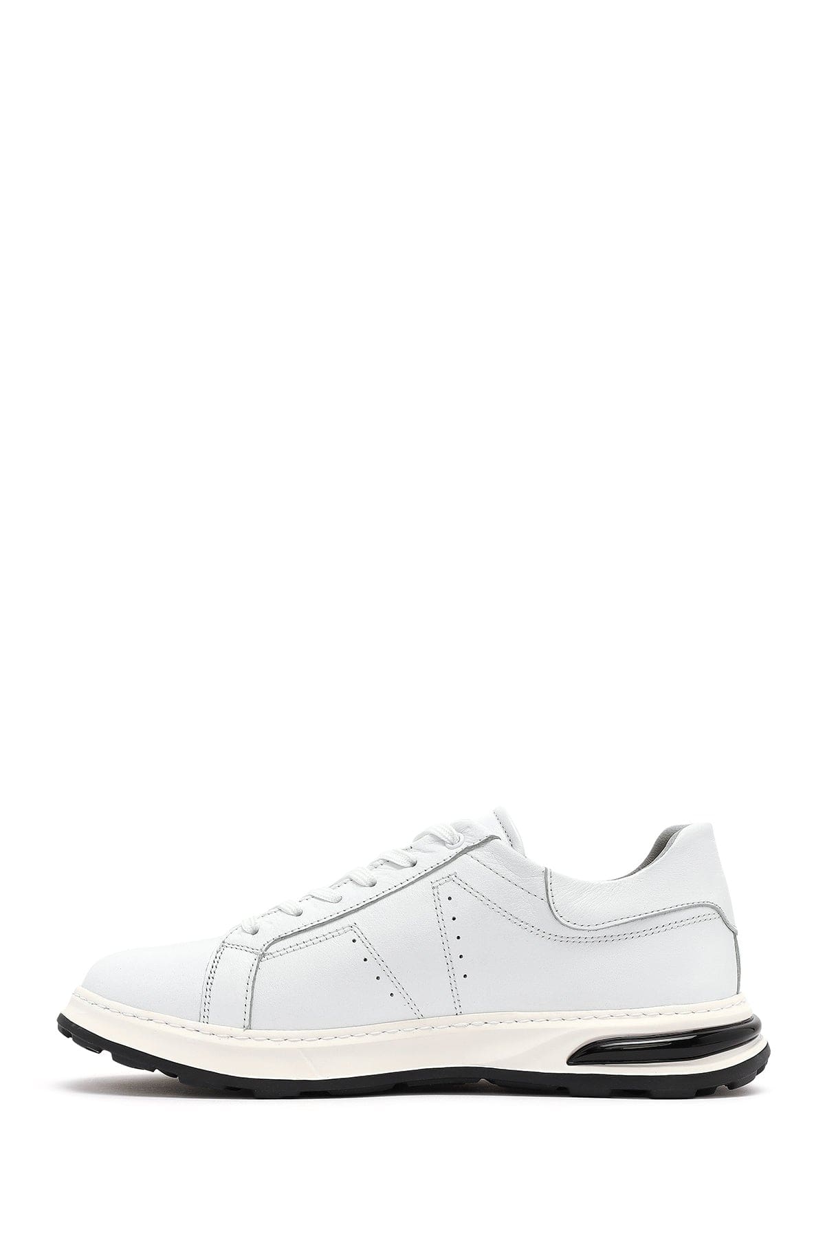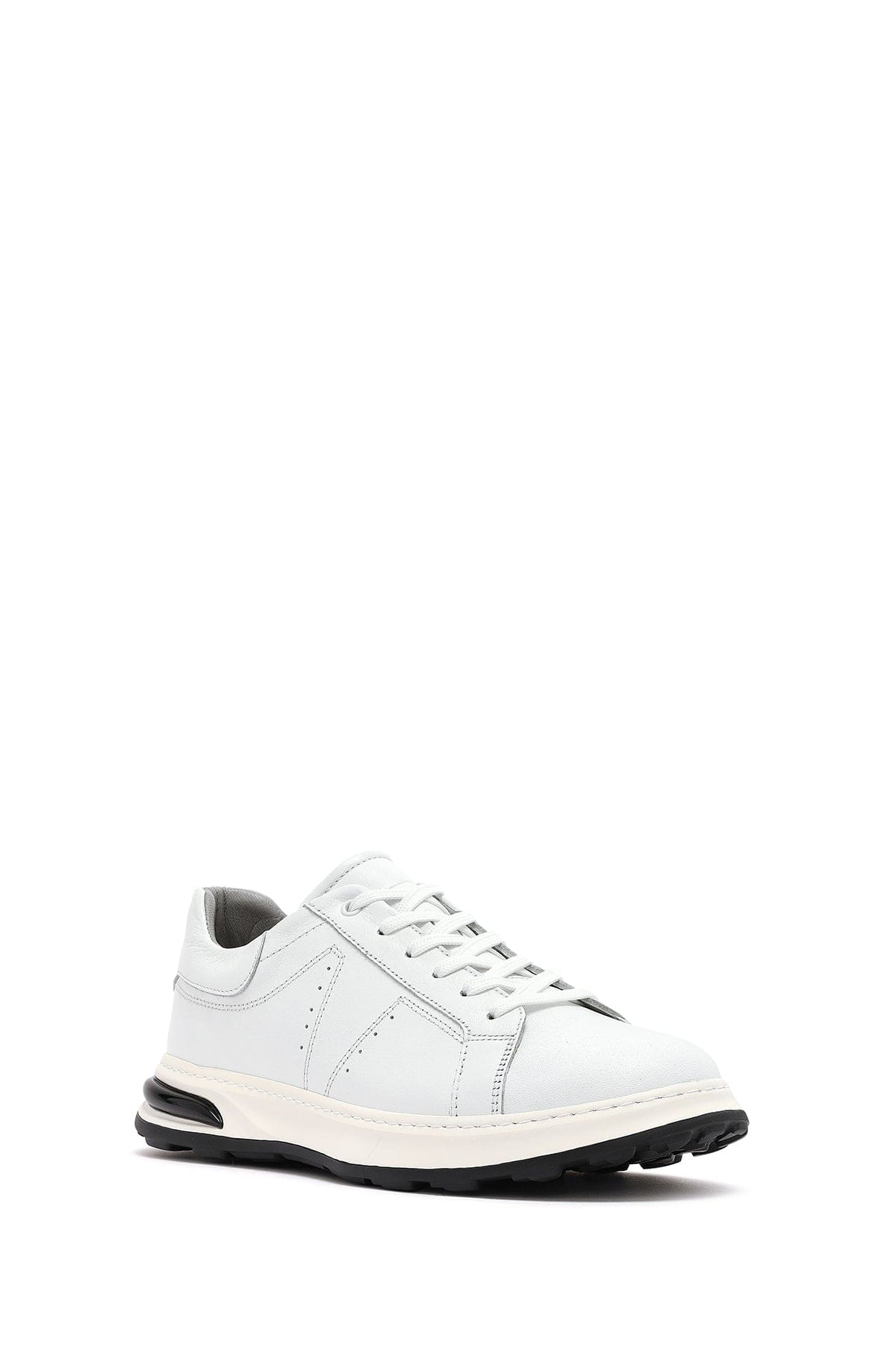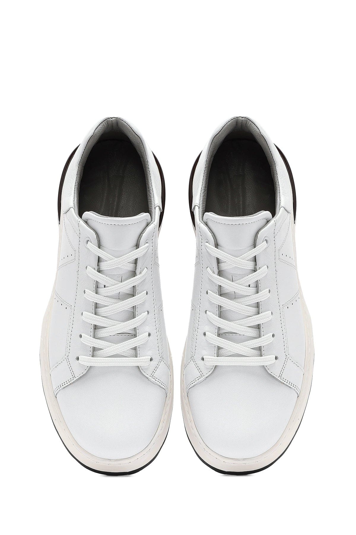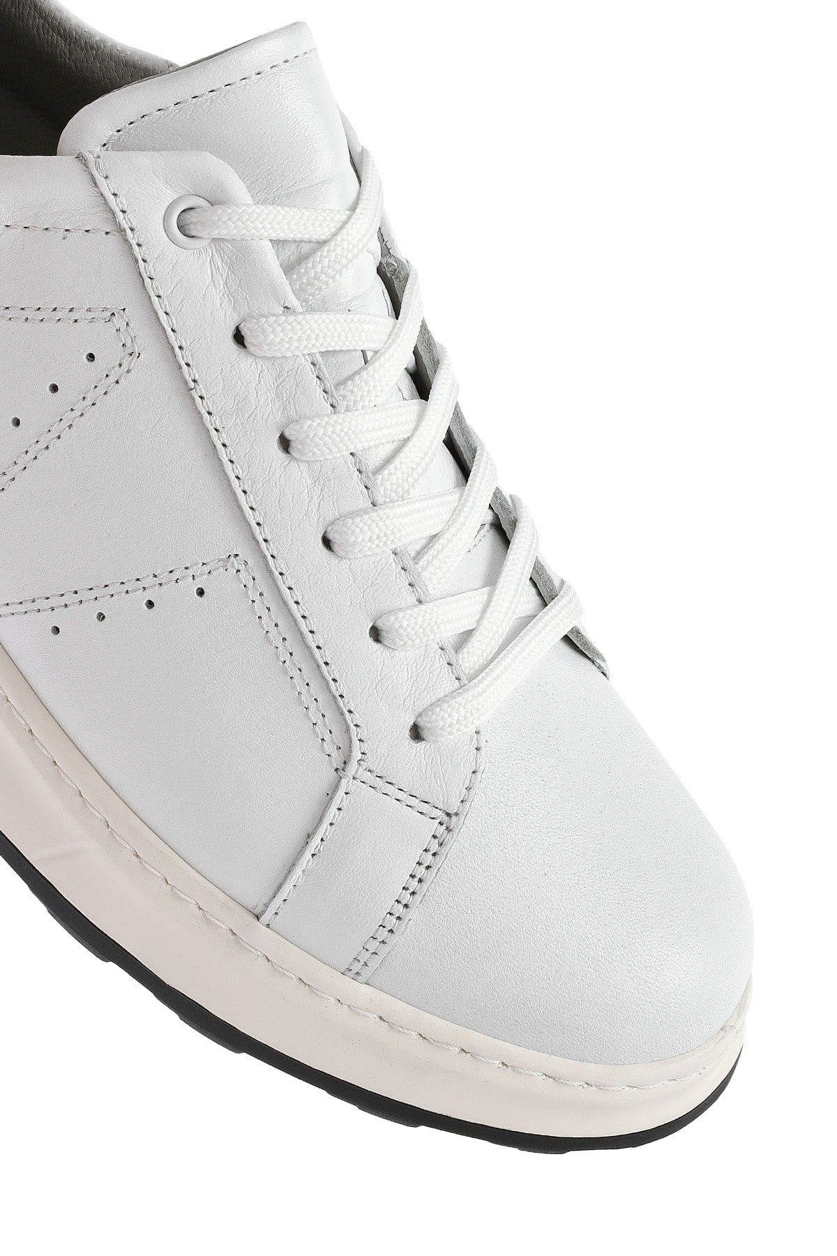 Erkek Beyaz Bağcıklı Kalın Tabanlı Deri Sneaker