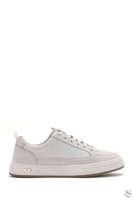 کتونی مردانه چرم سفید بنددار زیره ضخیم دری مد