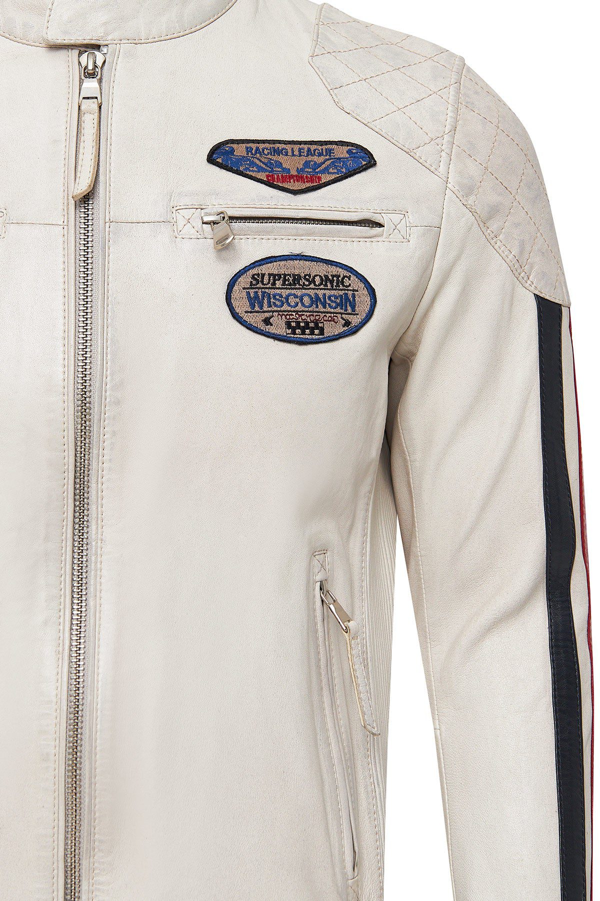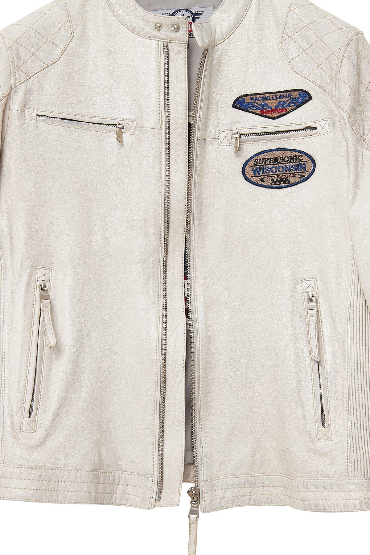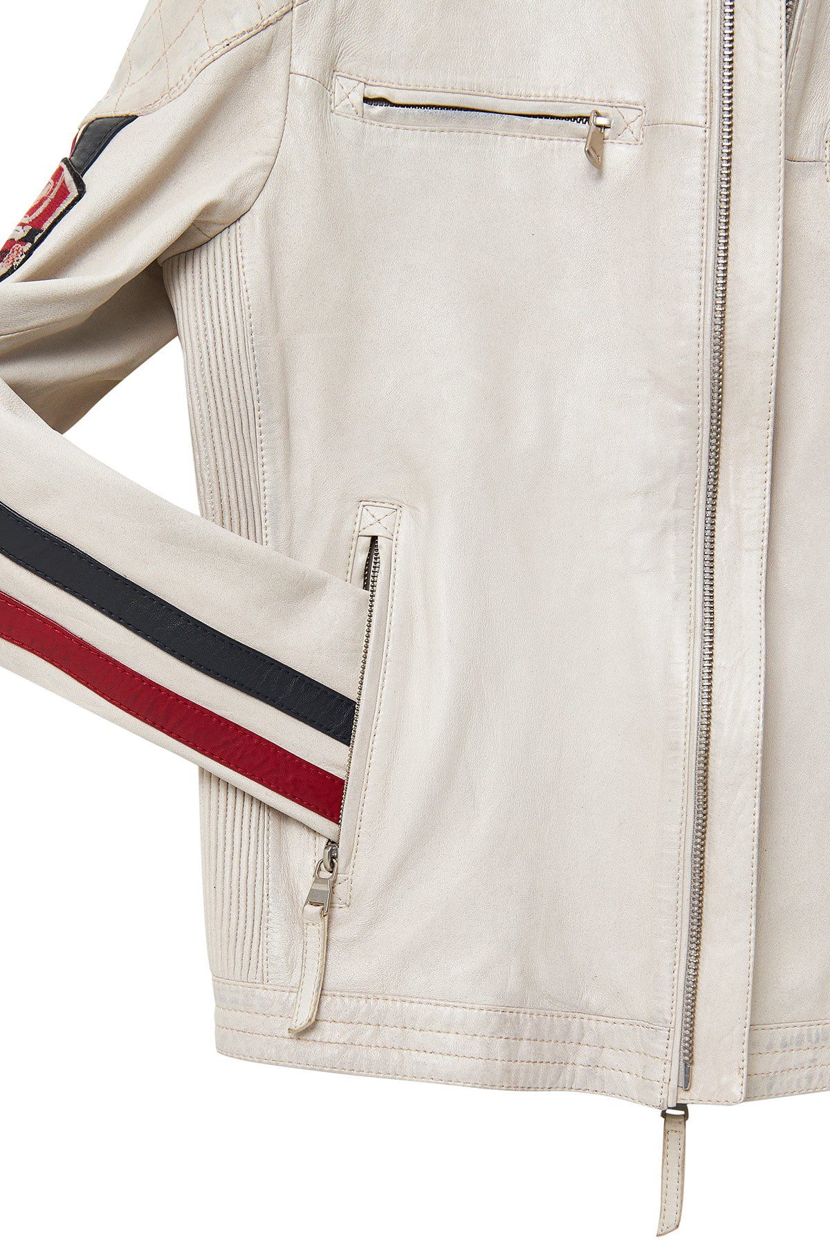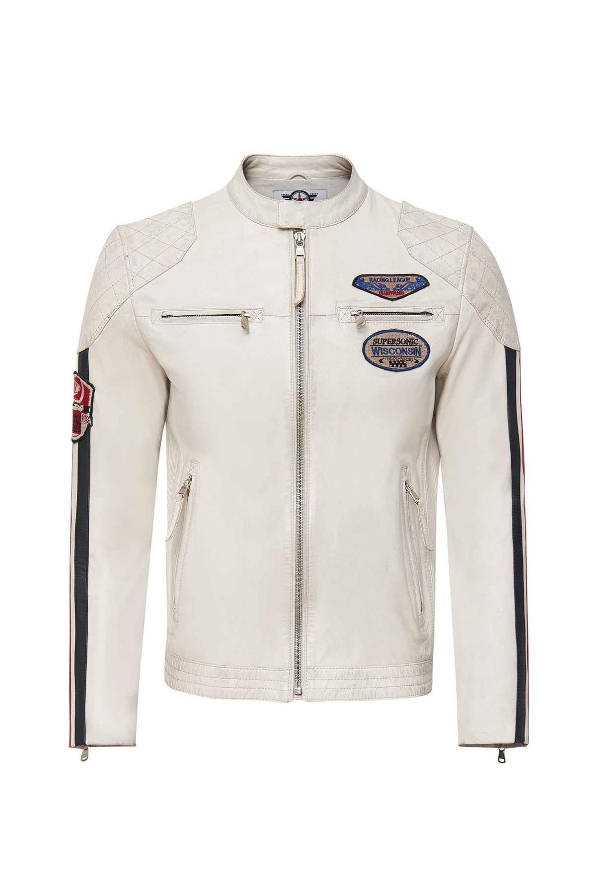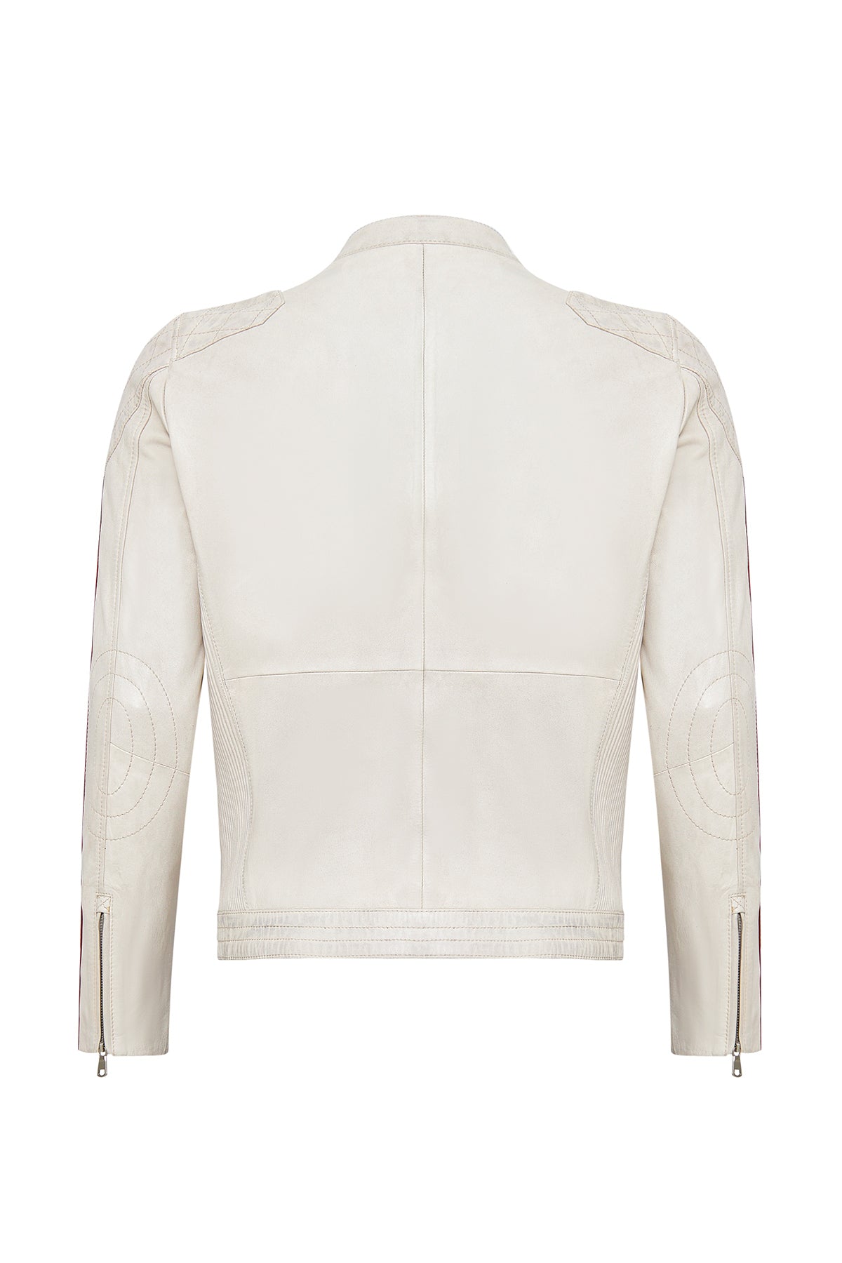 Storm Erkek Beyaz Slim-Fit Armalı Deri Mont