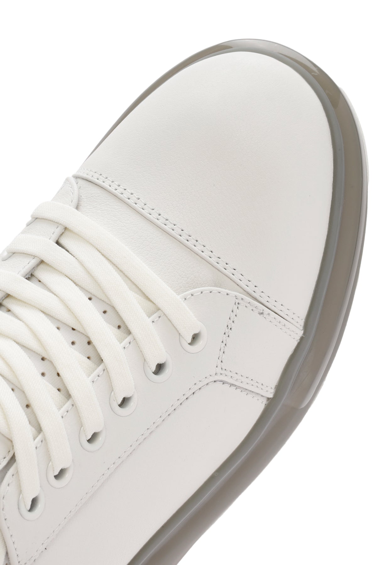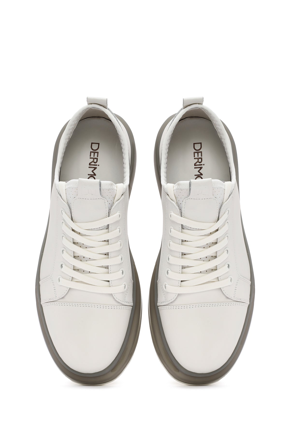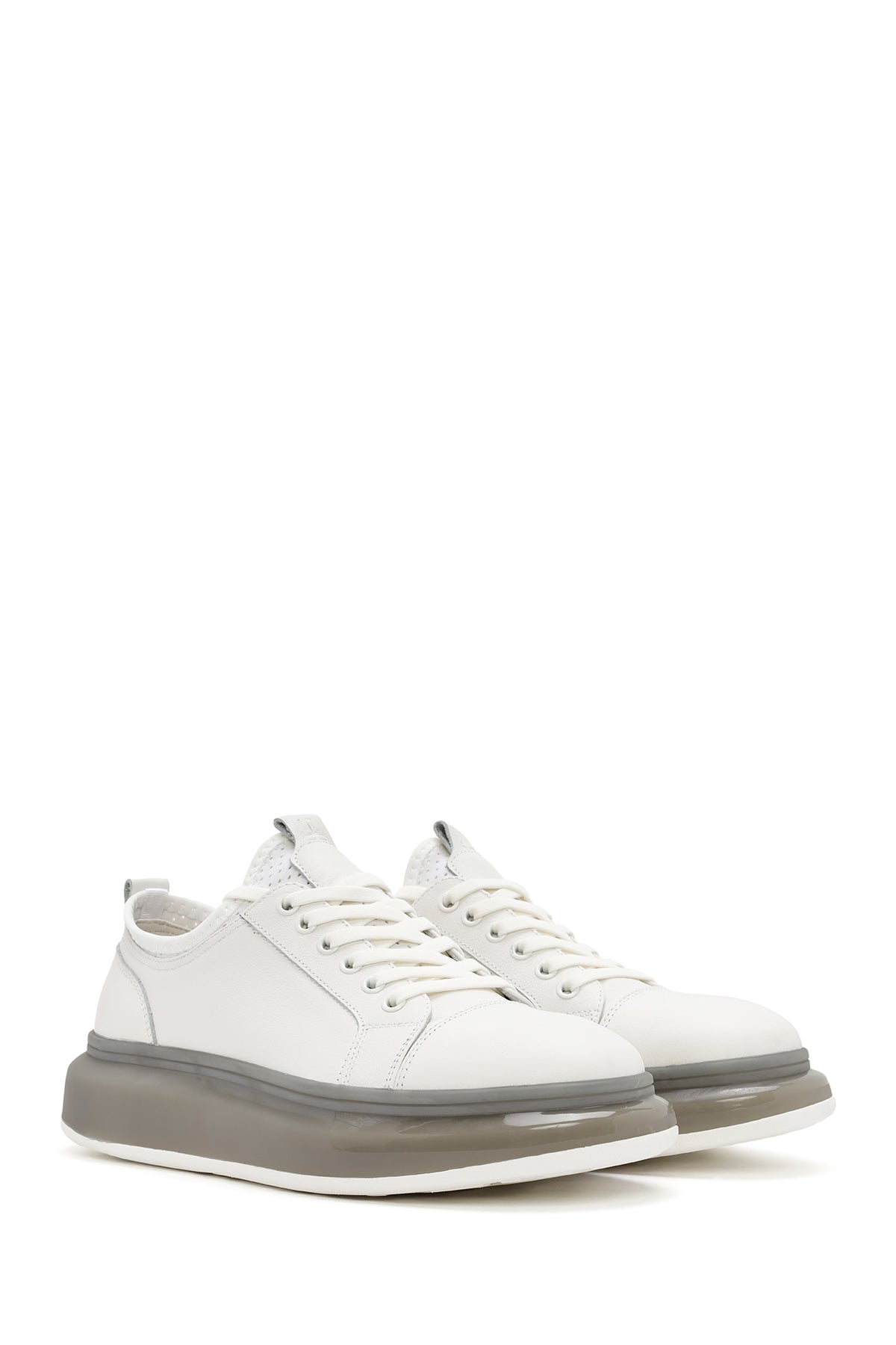 Erkek Beyaz Kalın Tabanlı Bağcıklı Deri Sneaker