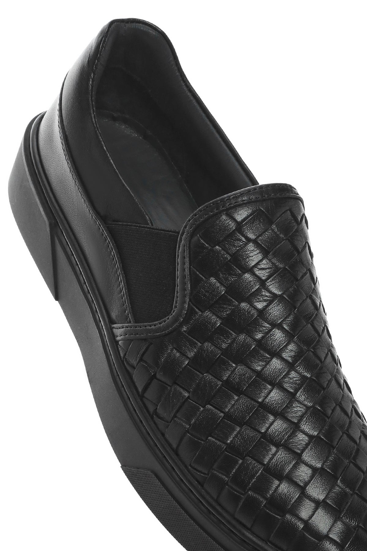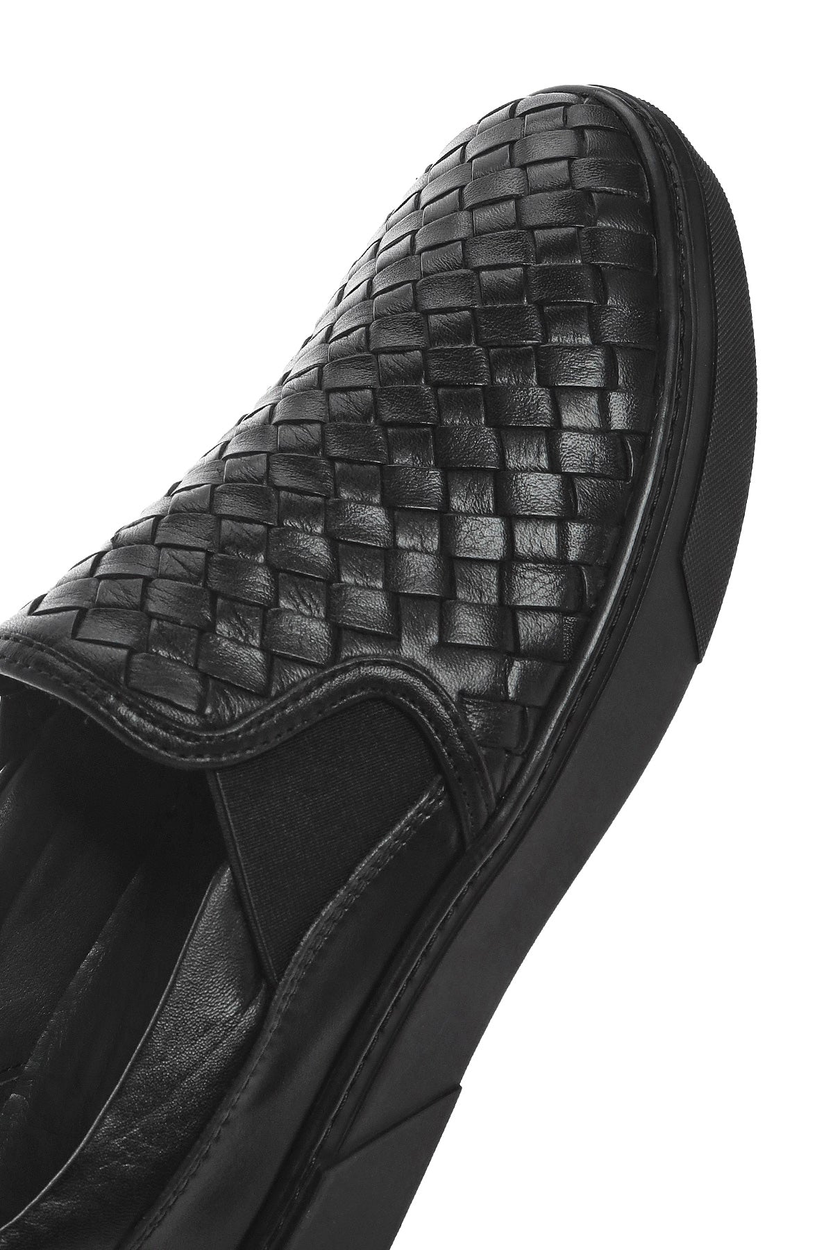 Erkek Siyah Örgü Deri Loafer