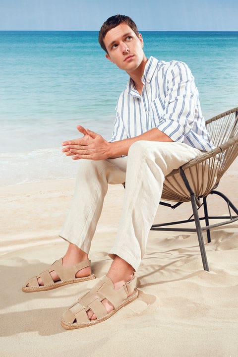 Erkek Bej Süet Deri Sandalet