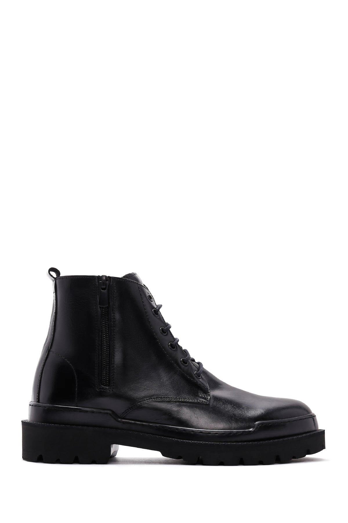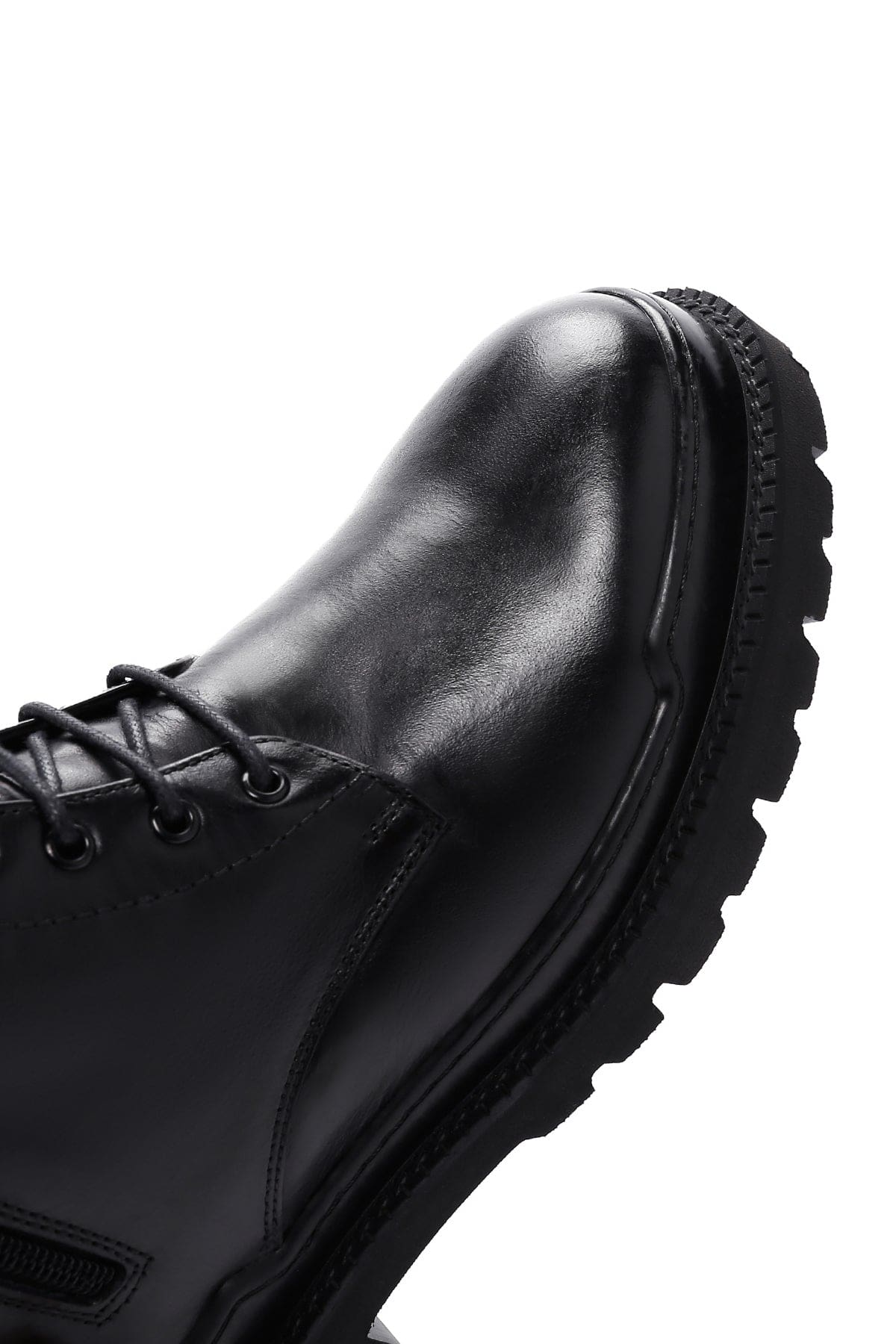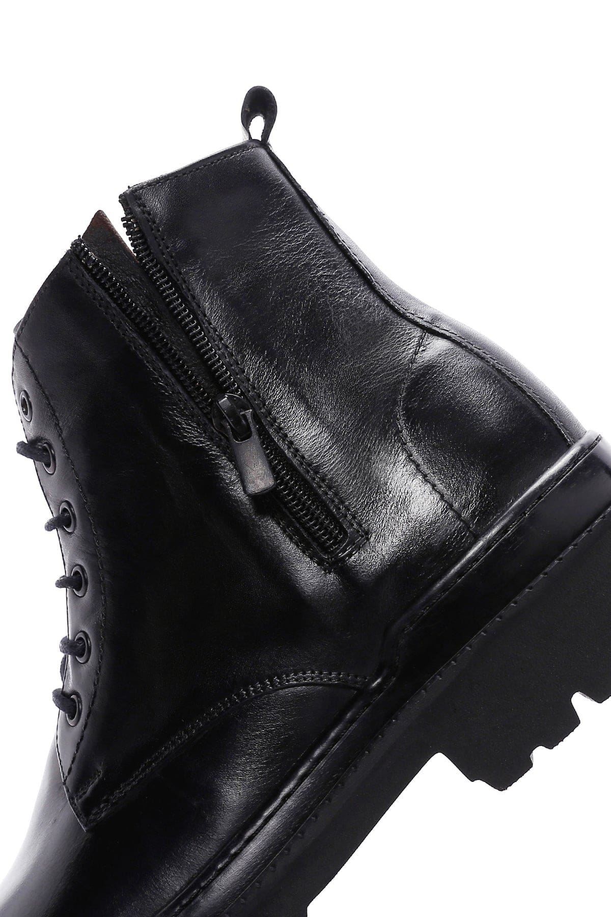 Erkek Siyah Bağcıklı Deri Fermuarlı Casual Bot