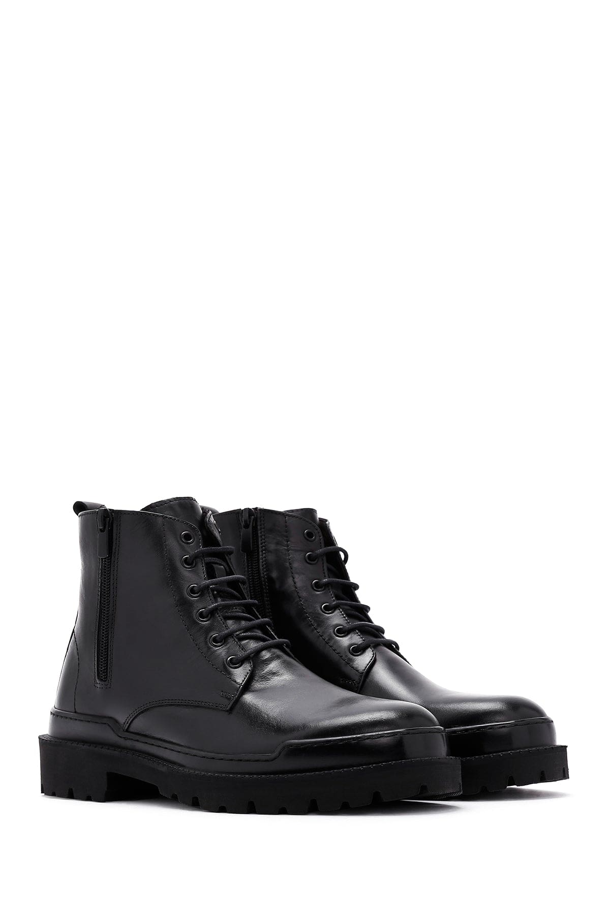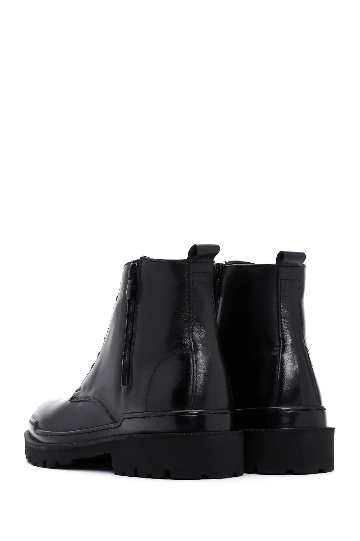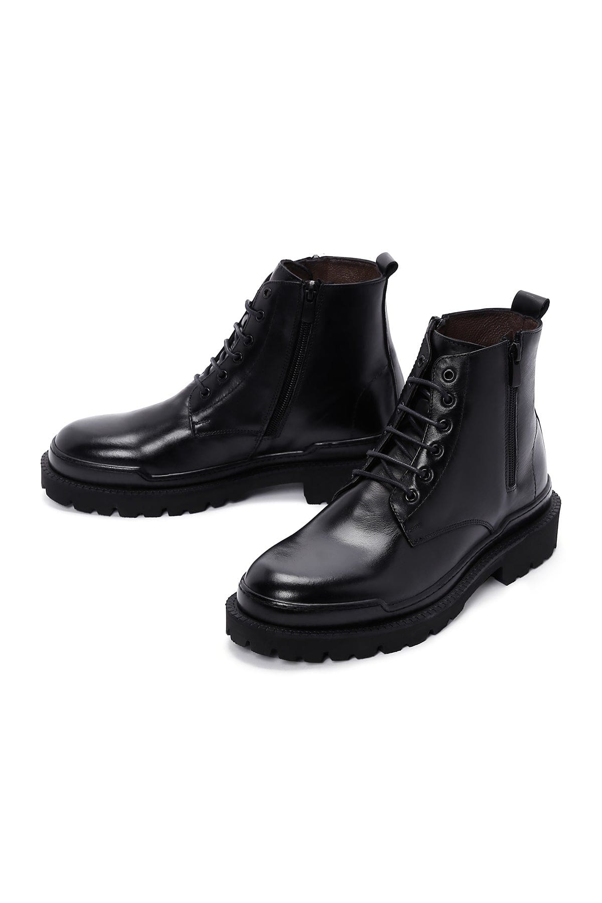Erkek Siyah Bağcıklı Deri Fermuarlı Casual Bot