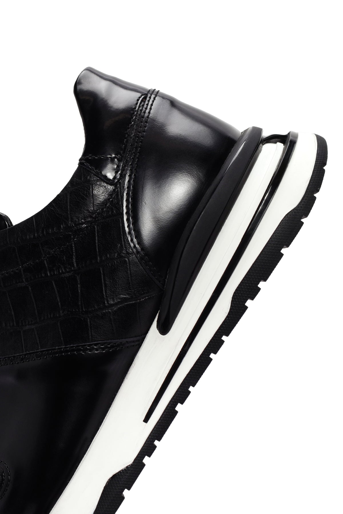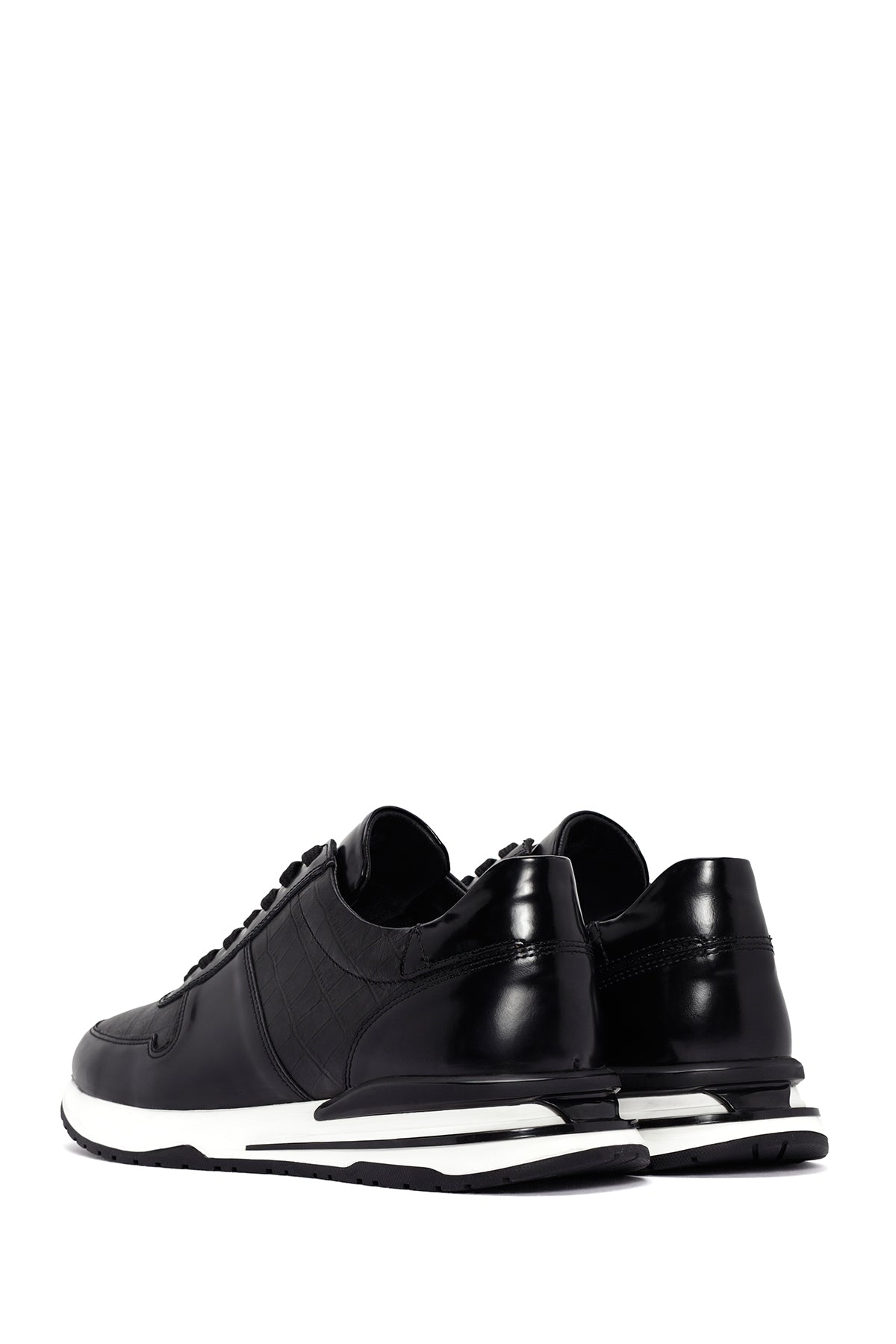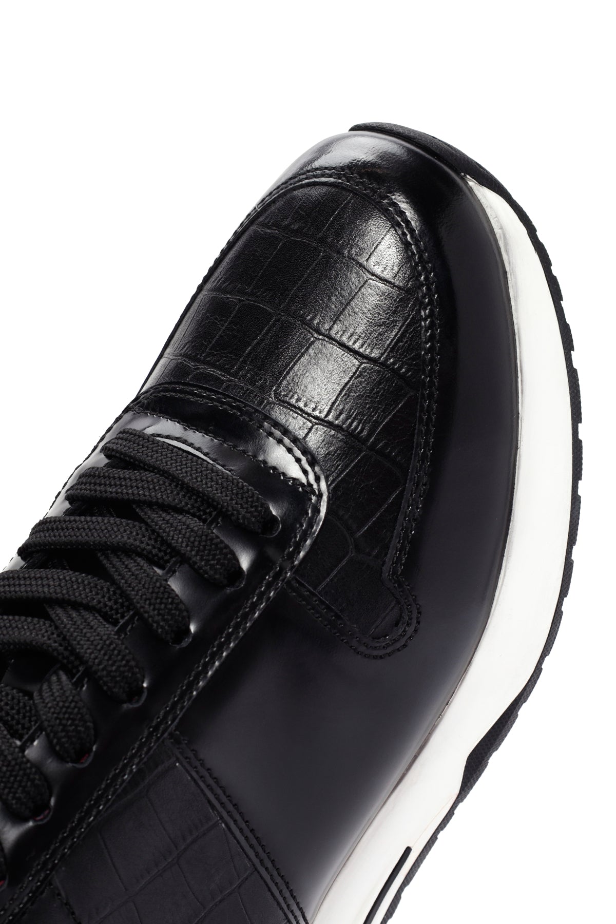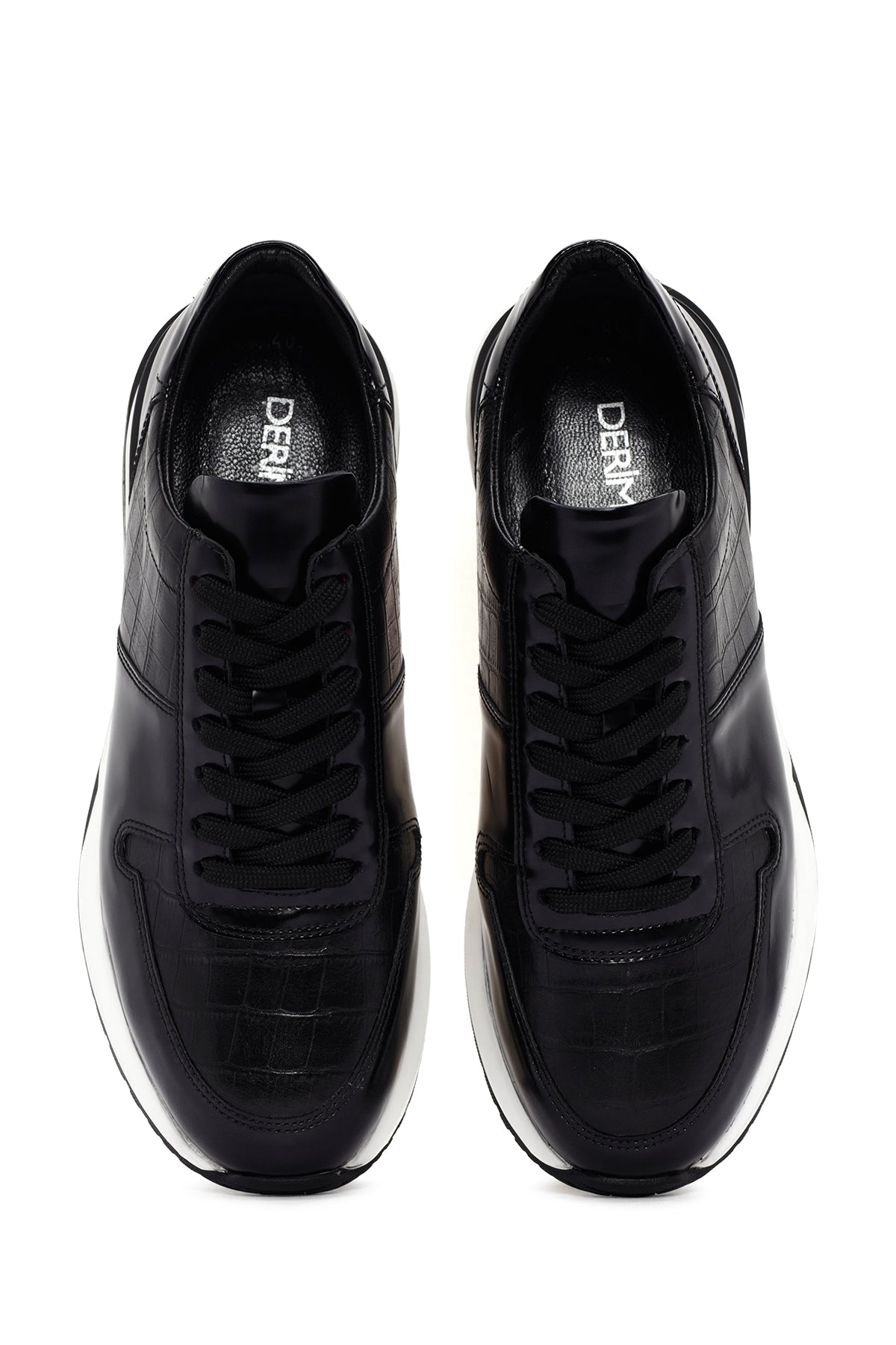 Erkek Siyah Kroko Desenli Bağcıklı Kalın Tabanlı Deri Sneaker